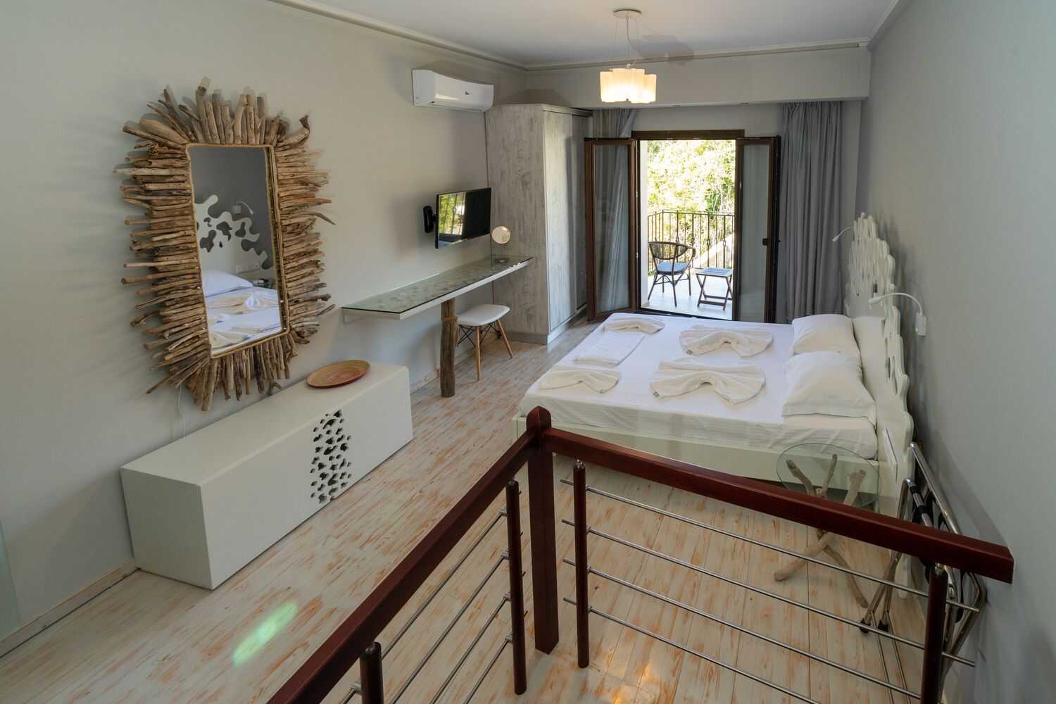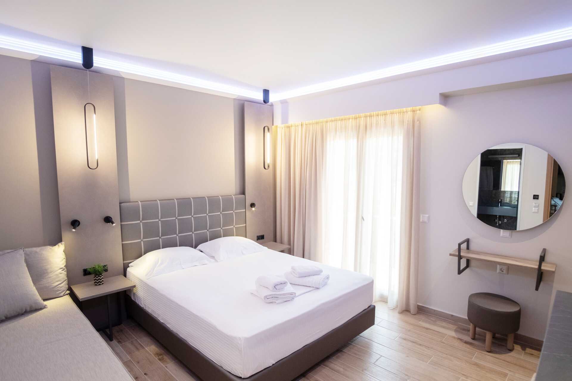Gerenoveerde tweepersoonskamer met balkon. Een tweepersoonsbed. Mogelijkheid voor een extra bed op de slaapbank/bedbank. Wifi en airconditioning inbegrepen. Koelkast, waterkoker, koffiezetapparaat en tosti-ijzer. Tv met lokale zenders. Föhn. Badkamer met douche en toilet. Schoonmaak 7 keer/week.