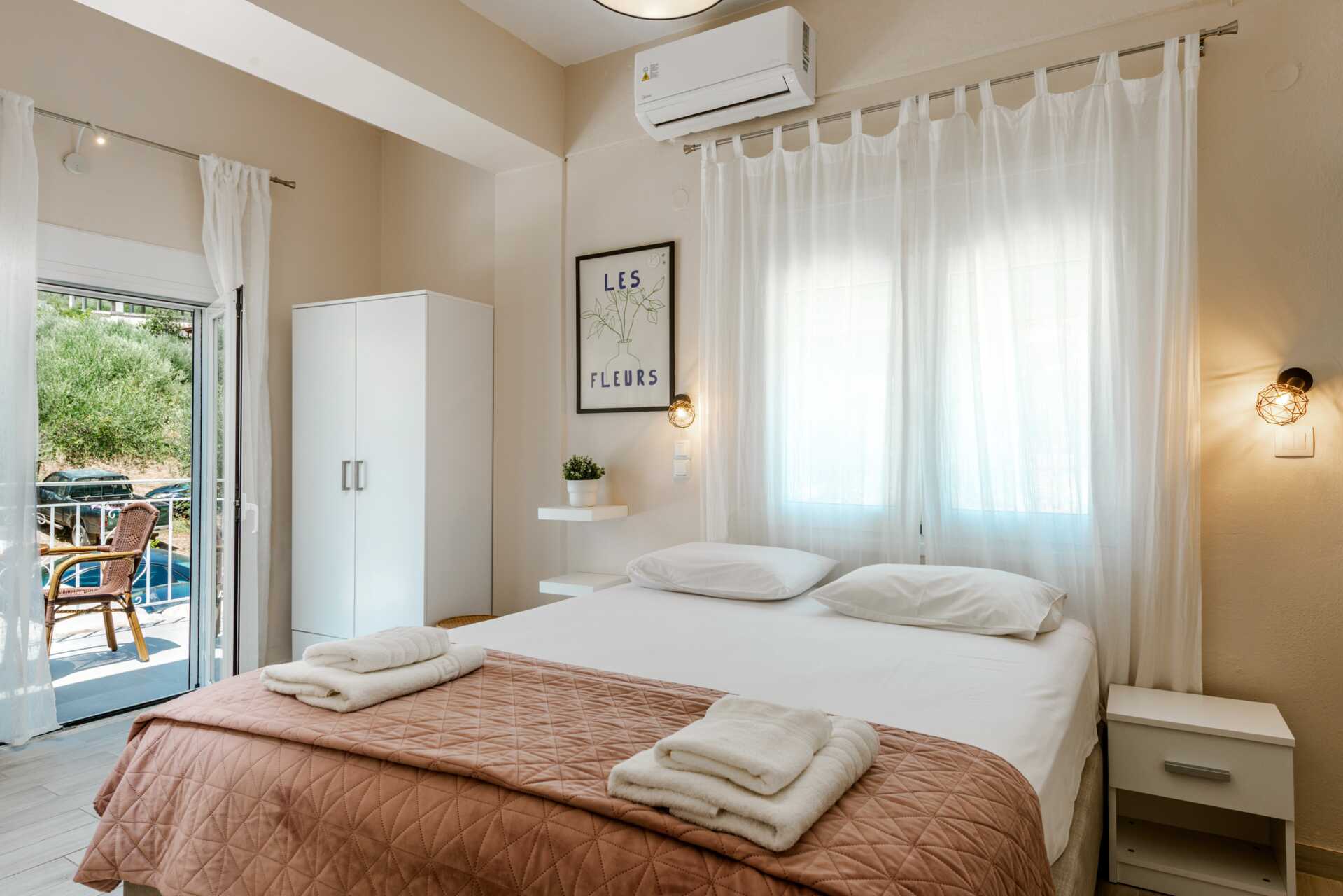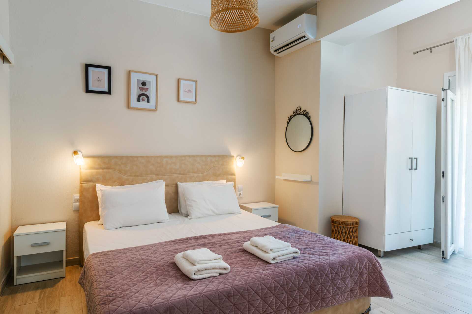Tweepersoonskamer met balkon, een tweepersoonsbed of twee eenpersoonsbedden. Wifi, airconditioning en kluisje inbegrepen. Tv met internationale zenders. Föhn. Badkamer met douche en toilet. Schoonmaak 6 keer / week.
