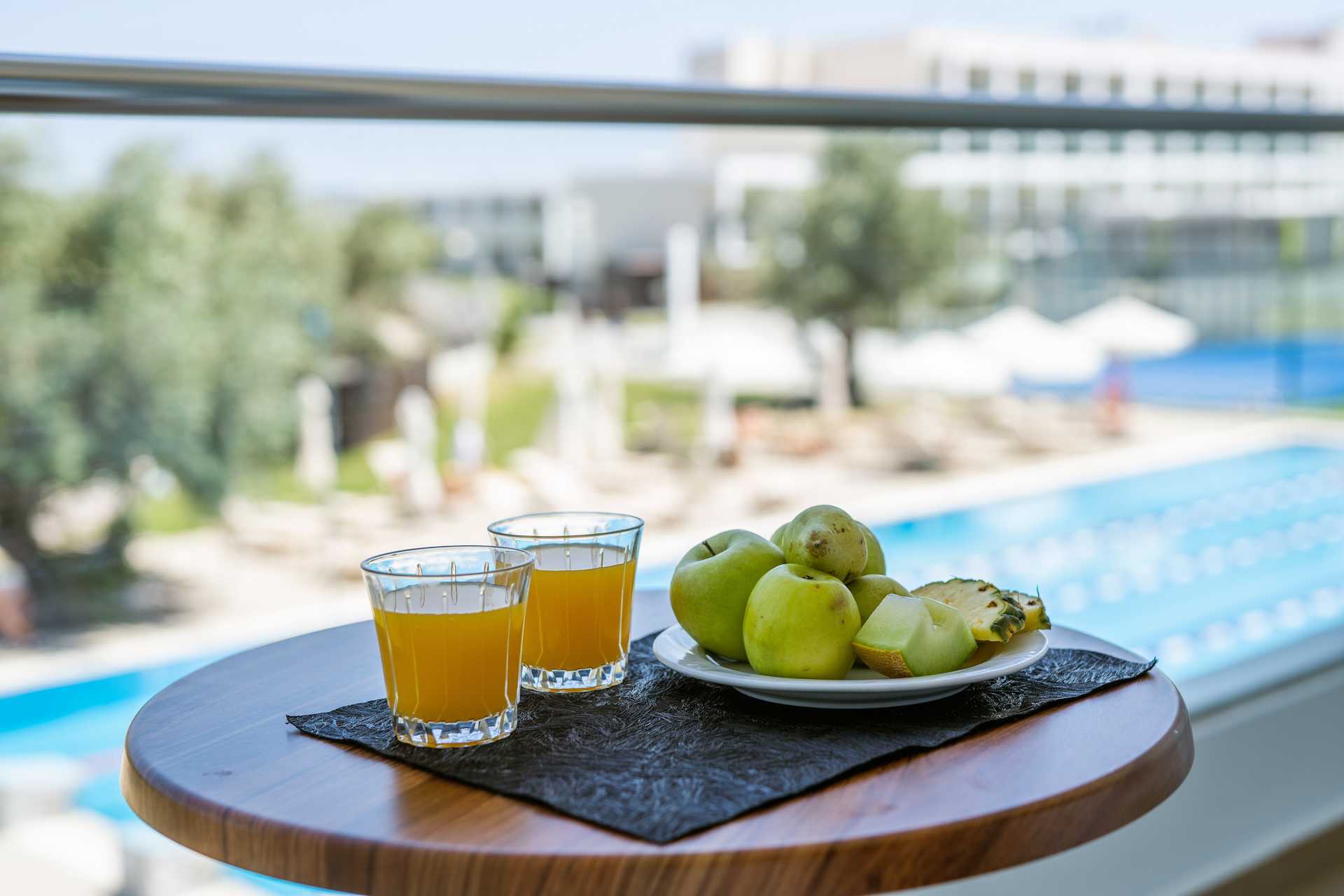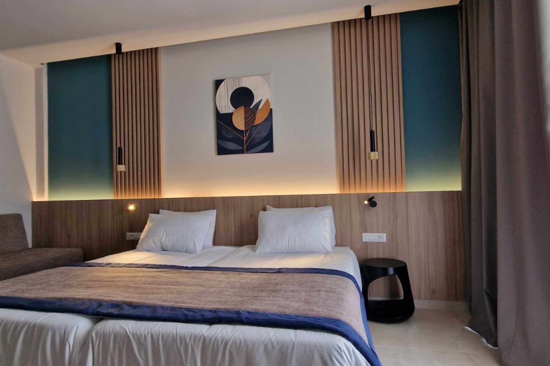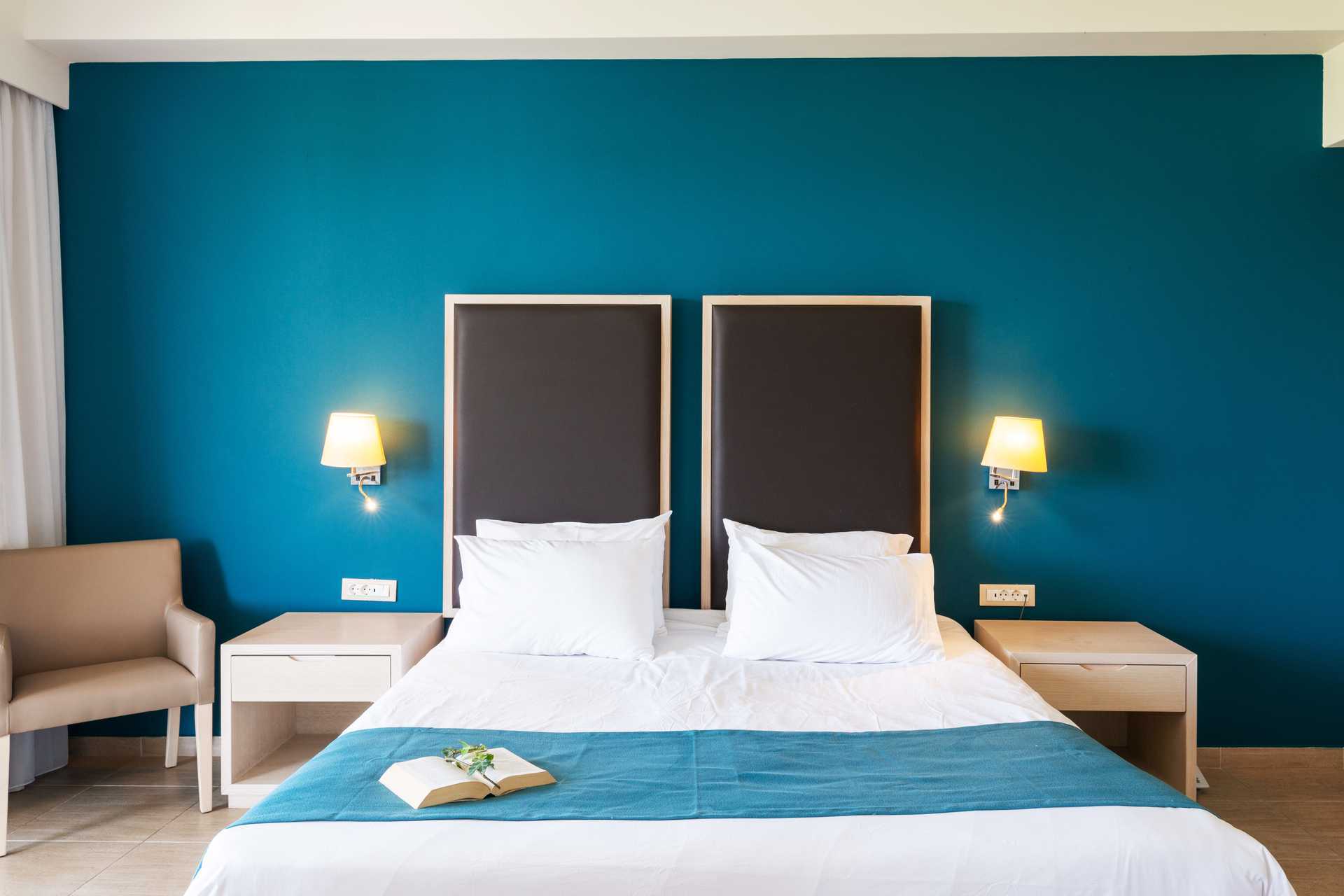 Tweepersoonskamers met balkon of terras. Sommige balkons hebben uitzicht op het zwembad, zeezicht of beperkt zeezicht. Twee eenpersoonsbedden, of één tweepersoonsbed. Slaapbank voor extra slaapplaats. Gratis wifi, airconditioning en kluisje. Kleine koelkast en een waterkoker. TV met internationale zenders. Föhn. Badkamer met bad of douche en met toilet. Schoonmaak 7 keer/week.