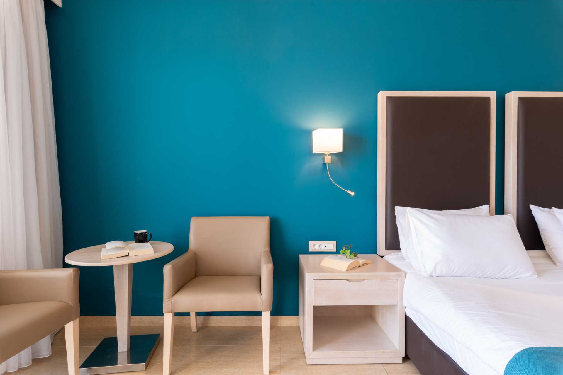 De kamers bevinden zich in een zijgebouw, bij het 25-meterbad en sportcentrum van het hotel, op ongeveer 500 meter van het strand en ongeveer 150 meter van receptie/hoofdgebouw.