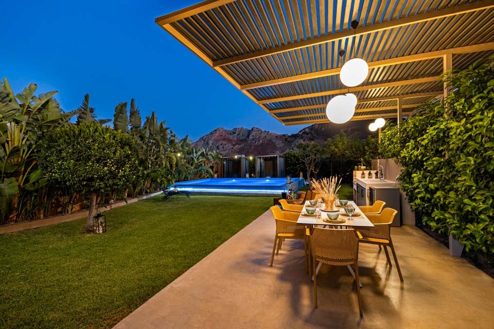 Buiten dineren, faciliteiten om buiten te dineren, eetgelegenheden, overdekt terras, open terras, ligstoelen, barbecue, tuinmeubilair, douche bij het zwembad, douche