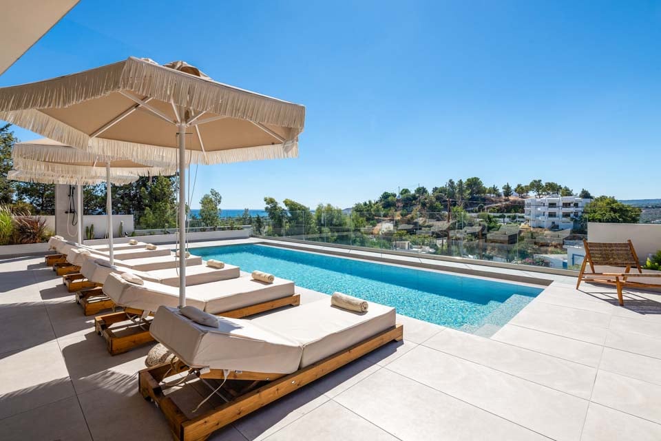 Handdoeken voor bij het zwembad, Outdoor Pool, Zwembad, Loungestoelen, Parasol, Privé zwembad, Sun terrace