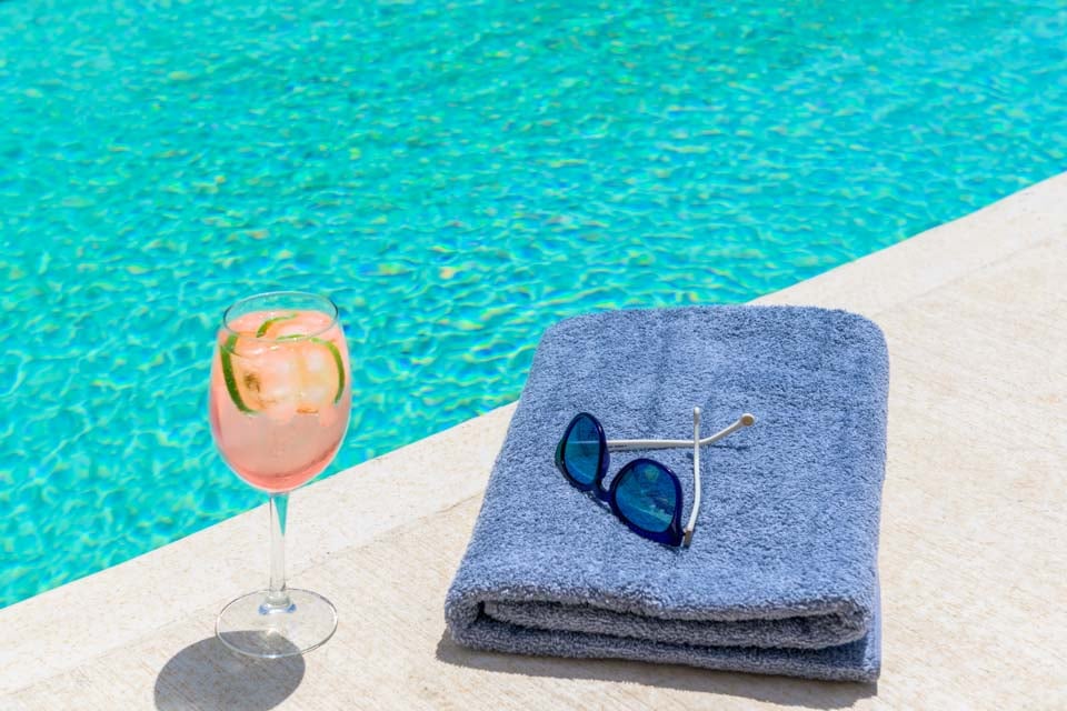 Handdoeken voor bij het zwembad, Outdoor Pool, Zwembad, Loungestoelen, Parasol, Privé zwembad, Sun terrace