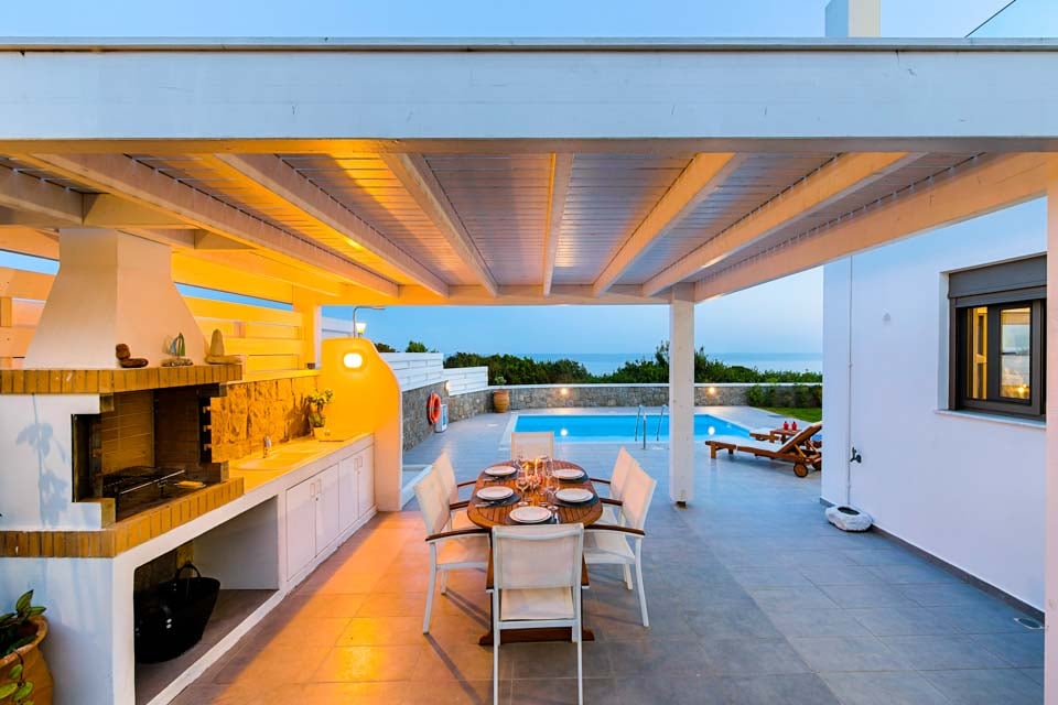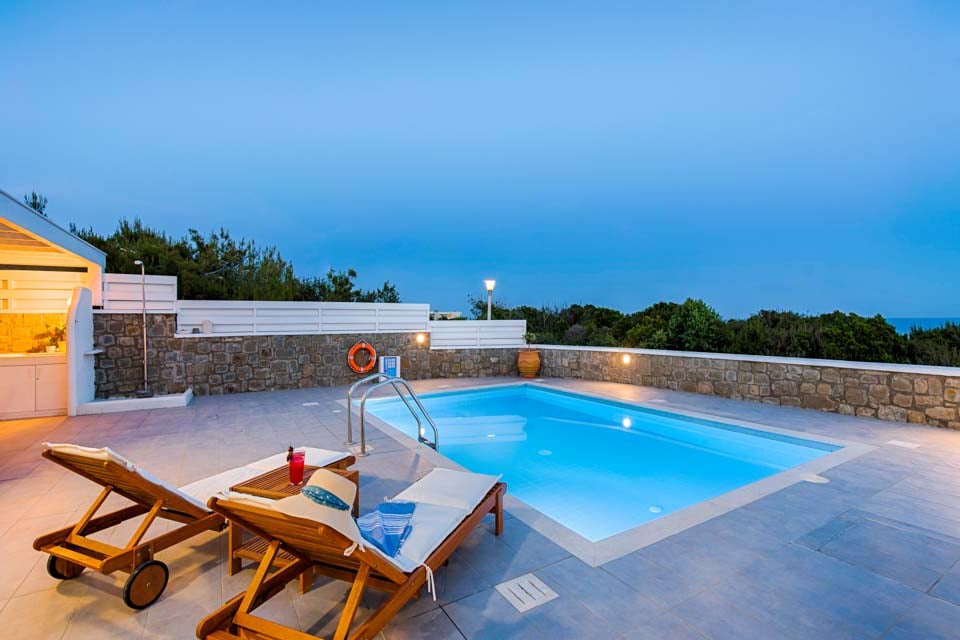 De stijlvolle villa biedt plaats aan maximaal zes personen en beschikt over drie tweepersoonsslaapkamers, elk met een flatscreen-tv. Eén slaapkamer heeft een eigen badkamer en twee slaapkamers hebben een balkon met uitzicht op de tuin en het zwembad. Er is ook een open woonkamer met een zithoek, een eethoek, een flatscreen-tv en een volledig uitgeruste keuken. Villa Sea La Vie beschikt over een omheinde tuin voor extra privacy, evenals barbecuefaciliteiten en zitjes buiten om heerlijk in de buitenlucht te vertoeven. Het privéterras met uitzicht op de Middellandse Zee is de ideale plek om te ontspannen in de Griekse zon en te genieten van het prachtige uitzicht. Je hebt verschillende mogelijkheden om te zonnebaden: ontspan bij het sprankelende turquoise zwembad of maak een korte wandeling over het pad naar een ongerept strand.