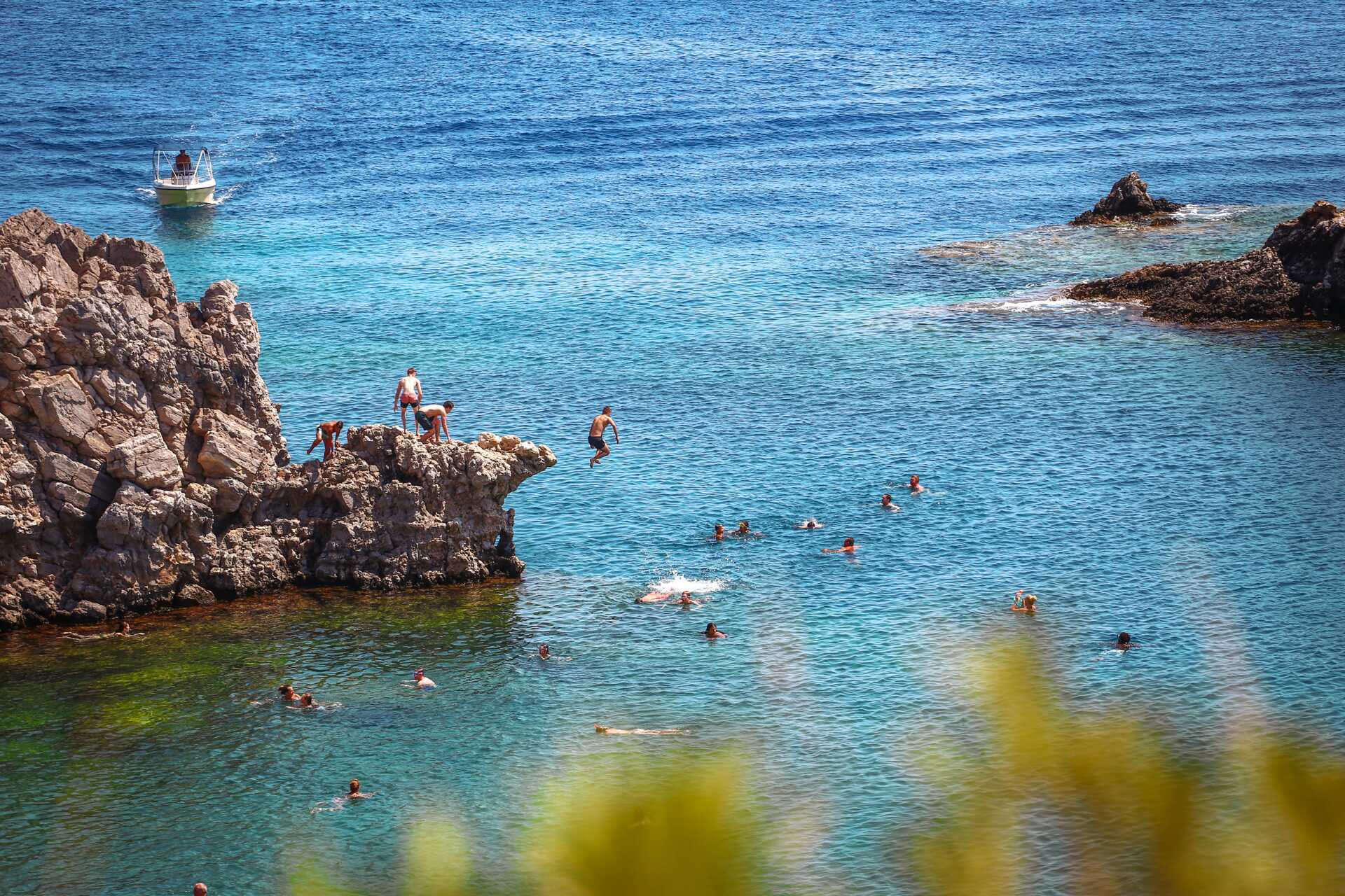 In en rond Lindos zijn er verschillende aangename zwembaaien.