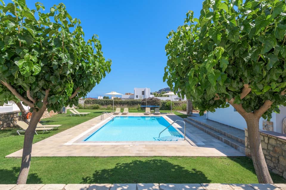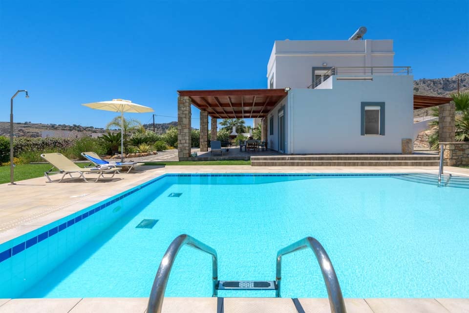 Buiten wacht uw eigen eilandparadijs, met een sprankelend zwembad omgeven door weelderige gazons en exotische bomen. Met een rij comfortabele ligbedden kunt u de hele middag ontspannen en genieten van het prachtige berglandschap. Zoek de schaduw op onder de houten pergola, of speel een potje tafeltennis met de familie. De locatie is werkelijk uniek, met het witte zand van Navarone Bay Beach op loopafstand en een panoramisch uitzicht op de bergen om van te genieten tijdens de afdaling. Voor een voorproefje van het eiland zijn de populaire stadjes Lindos en Pefkos slechts een korte autorit verwijderd en bruisen ze van de lokale restaurants, bars en winkels. Een aantal van de mooiste uitzichten over de baai van Lindos zijn te bewonderen vanaf de Akropolis. Dompel je onder in de geschiedenis terwijl je van het uitzicht geniet.