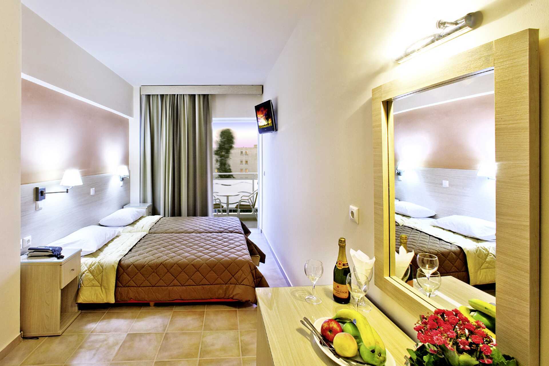 Tweepersoonskamer met balkon Twee brede eenpersoonsbedden. Wifi inbegrepen. Airconditioning en kluisje tegen betaling. Koelkast. Tv met internationale zenders. Föhn. Badkamer met douche en toilet. Schoonmaak 7 keer/week.