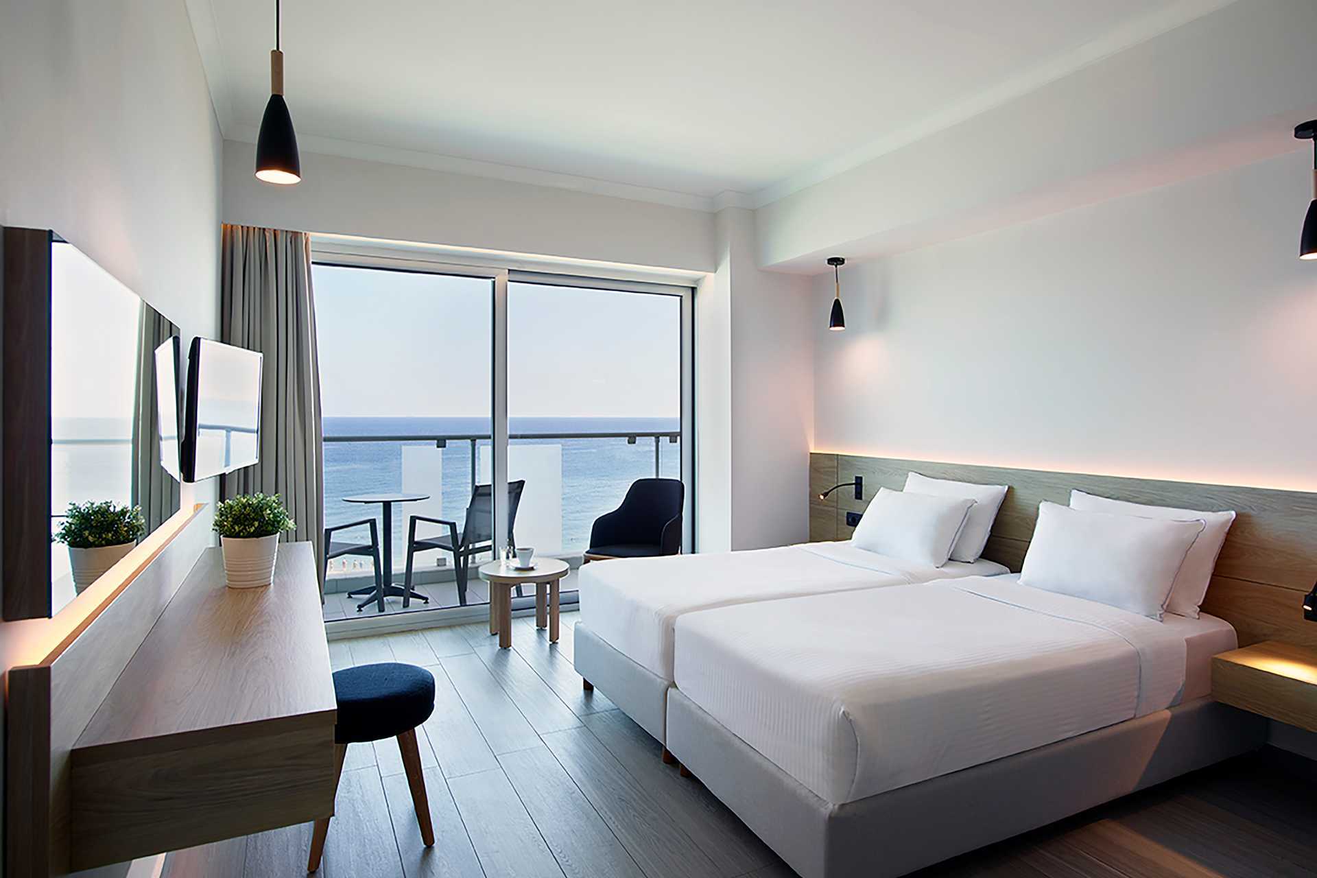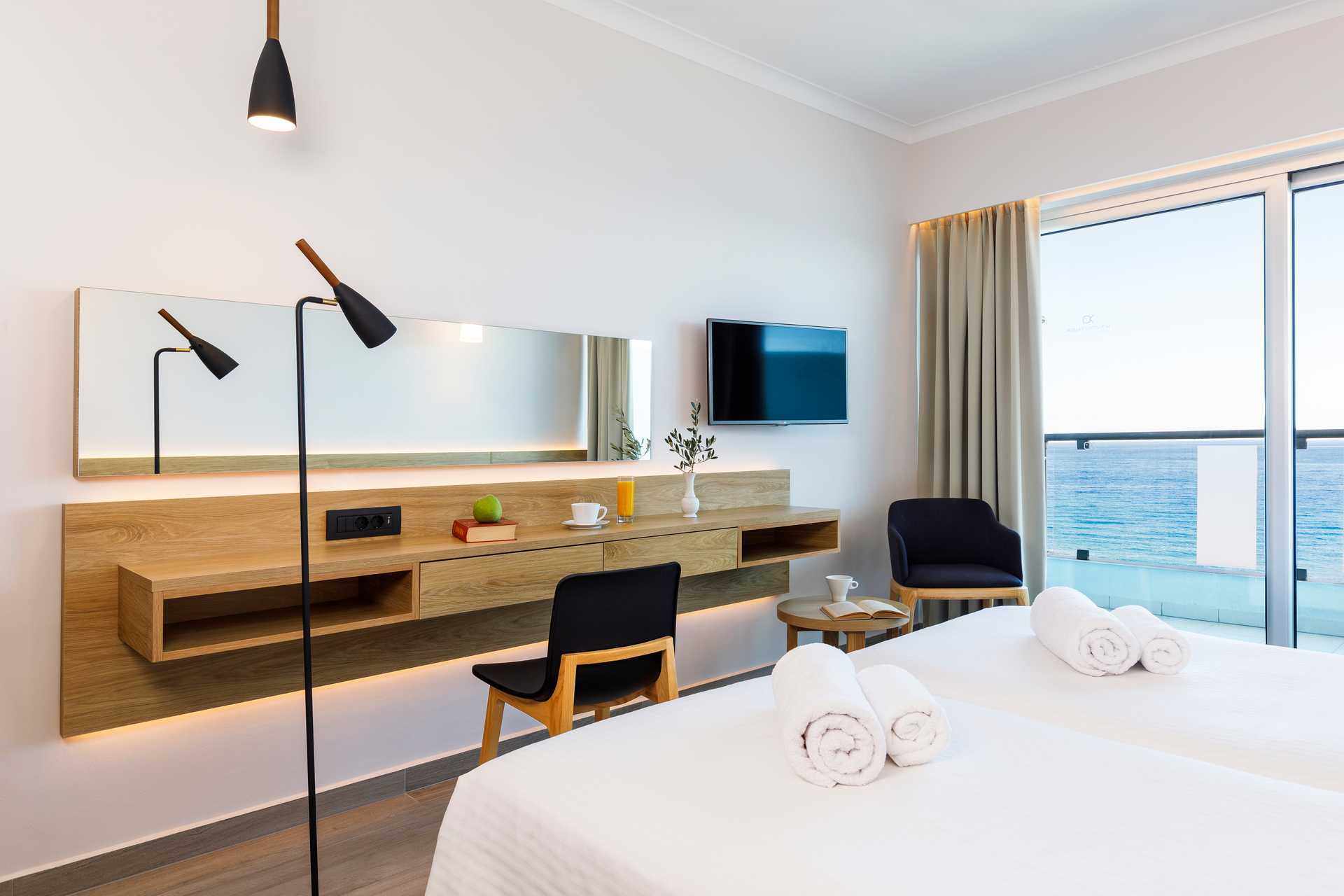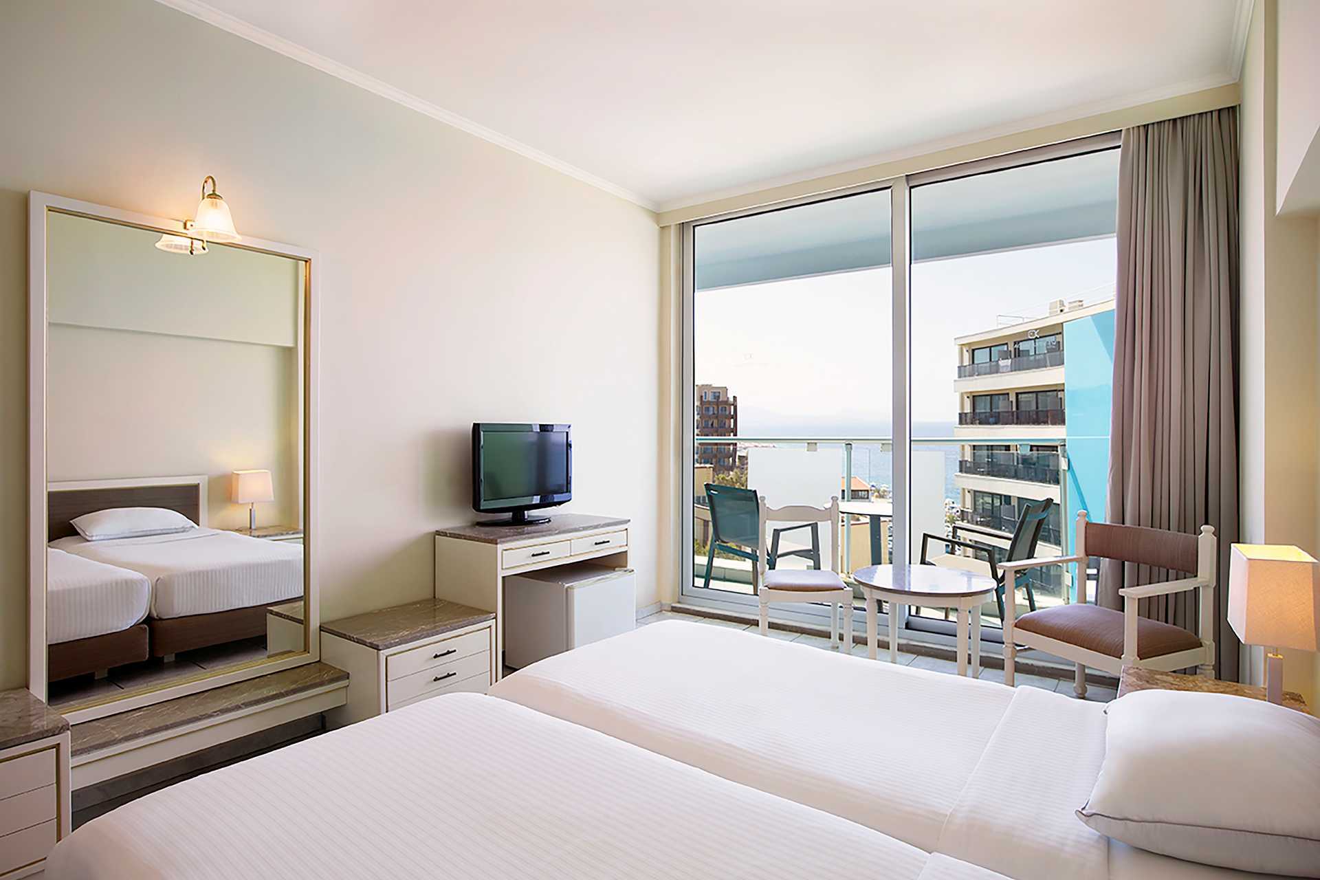 Superior kamers met balkon, sommige met zeezicht of beperkt zeezicht. De gerenoveerde kamers bevinden zich op de vijfde en zesde verdieping. Twee eenpersoonsbedden. Wifi, airconditioning in de periode 20/5 tot 15/10 en borg inbegrepen. Koelkast en waterkoker. Tv met internationale zenders. Föhn. Badkamer met douche en toilet. Schoonmaak 7 keer/week.