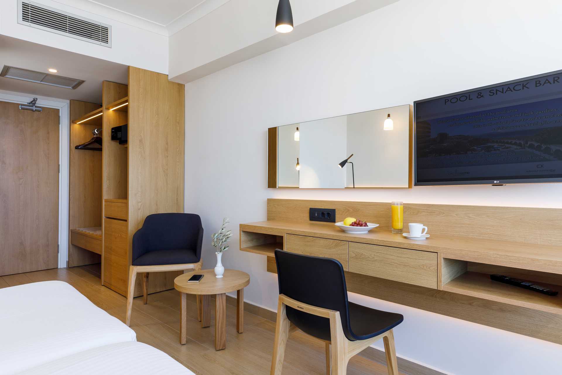 Superior kamers in verschillende uitvoeringen met balkon, sommige met zeezicht. De superior kamers bevinden zich op de vijfde en zesde verdieping. Twee eenpersoonsbedden. Wifi, airconditioning (in de periode 20/5–15/10) en kluisje inbegrepen. Koelkast. Waterkoker. Tv met internationale zenders. Föhn. Badkamer met bad of douche en toilet. Schoonmaak 7 keer/week.