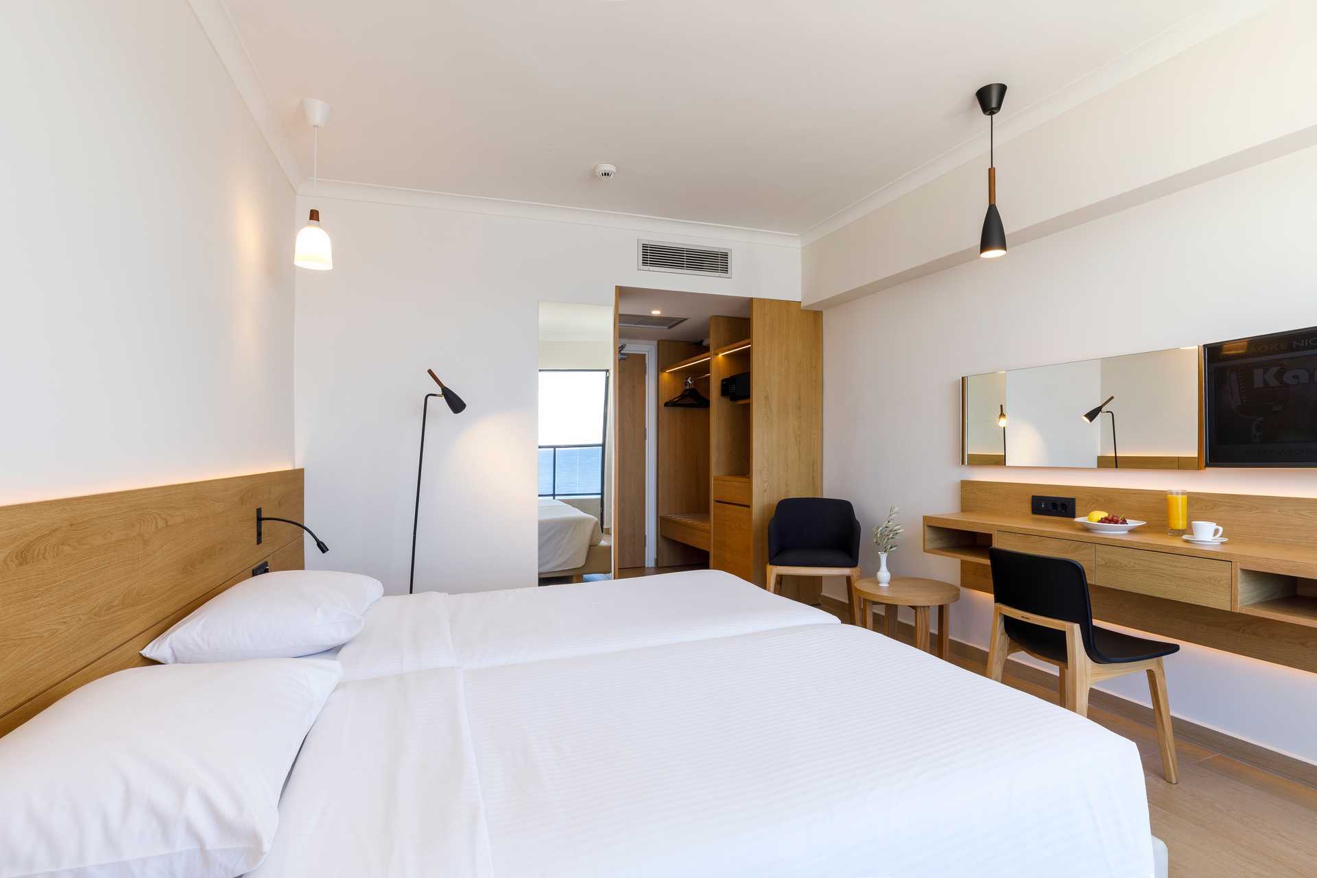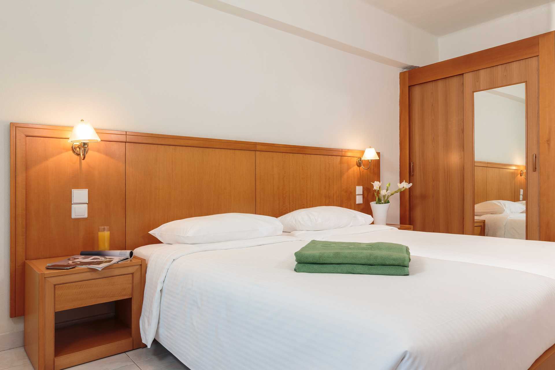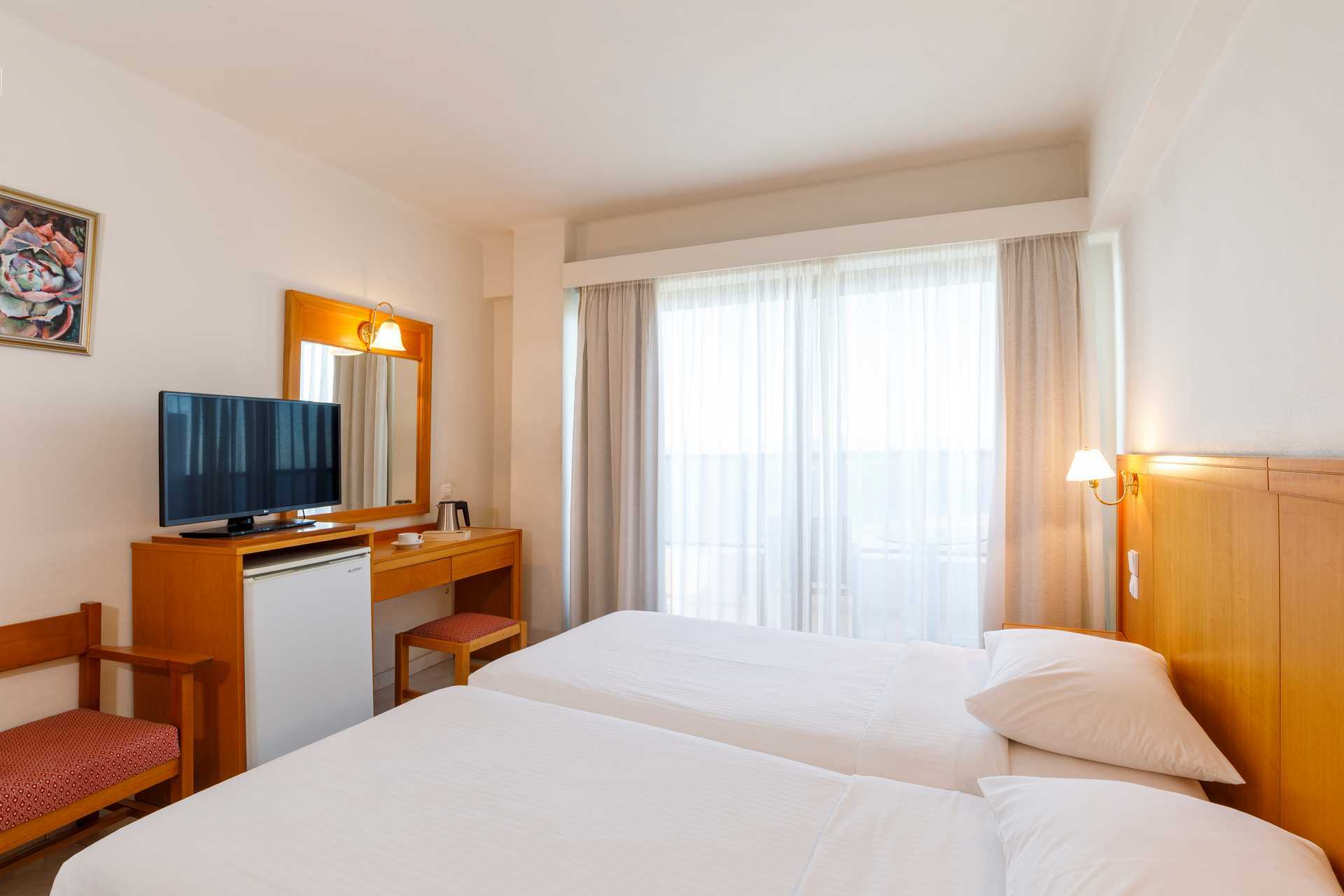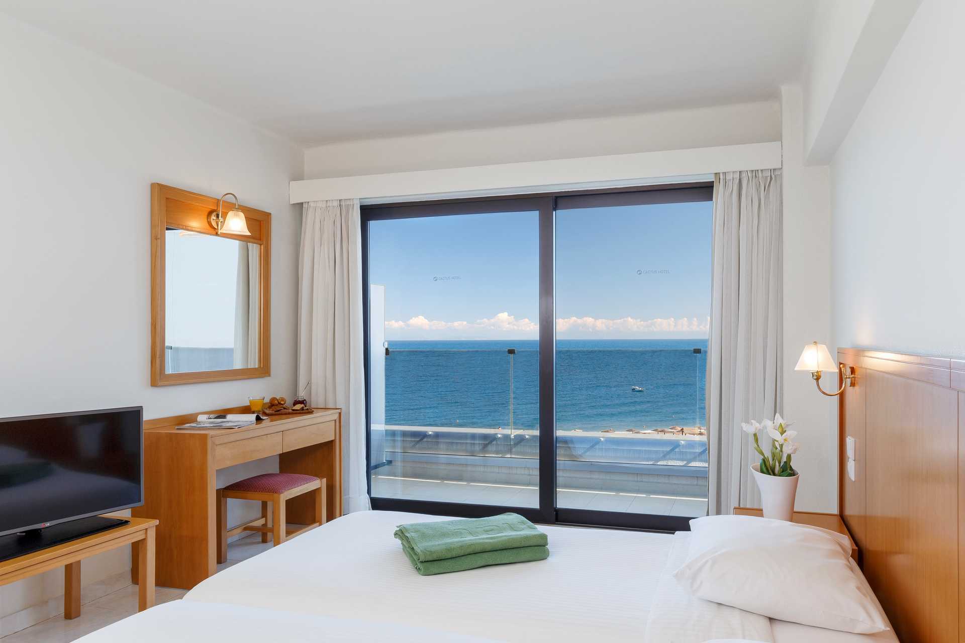 Tweepersoonskamer met balkon en uitzicht op zee. Een tweepersoonsbed of twee eenpersoonsbedden. Wifi en airconditioning (20/5-15/10) inbegrepen. Koelkast. Waterkoker. Tv met internationale zenders. Föhn. Badkamer met bad of douche en toilet. Schoonmaak 7 keer/week.