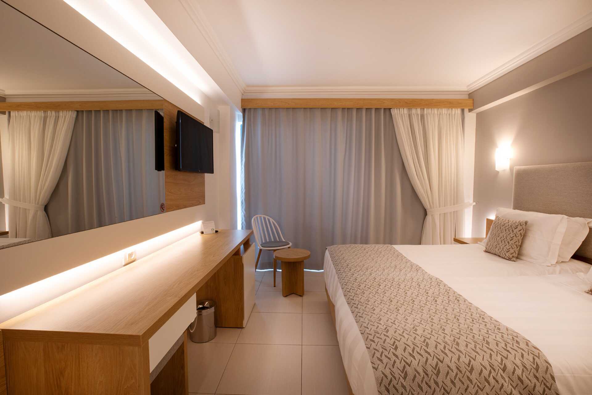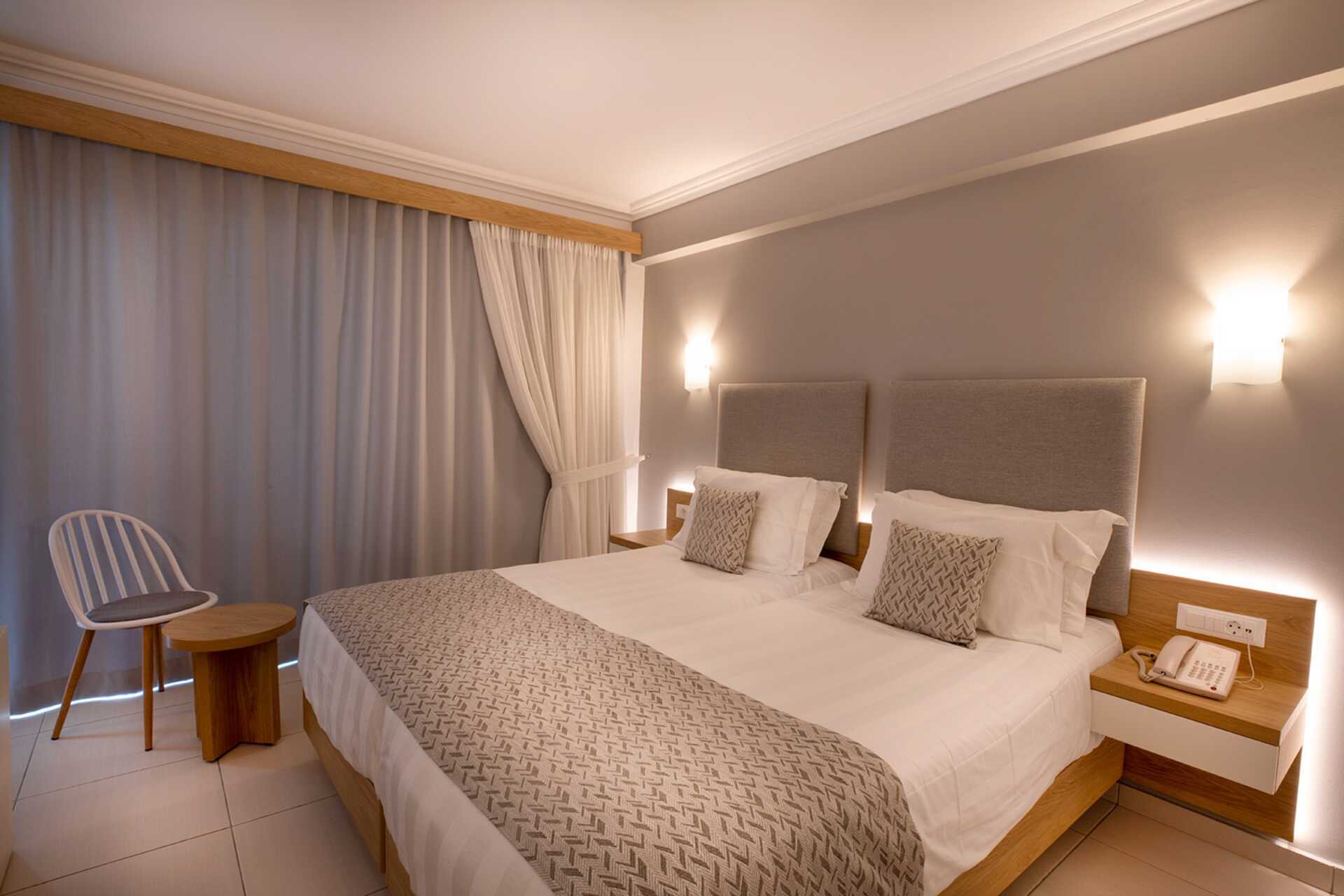 Tweepersoonskamers met balkon, sommige met zeezicht of met beperkt. Eén tweepersoonsbed of twee eenpersoonsbedden. Wifi, airconditioning en kluisje inbegrepen. Minibar. Tv met internationale zenders. Haardroger. Badkamer met douche en toilet. Schoonmaak 6 keer/week.