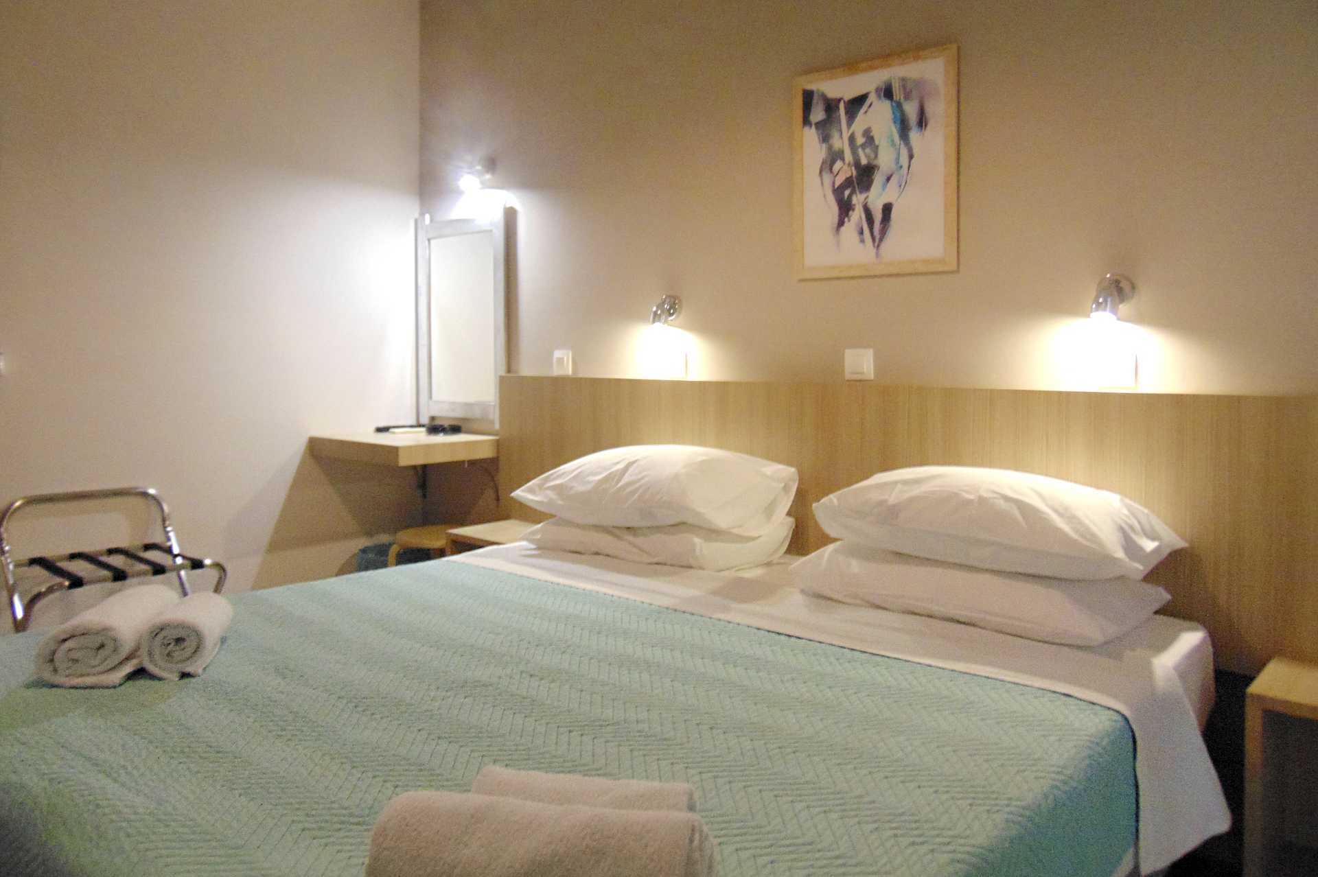 Gerenoveerde tweepersoonskamers met balkon of terras, sommige met uitzicht op een nabijgelegen gebouw. Een tweepersoonsbed of twee eenpersoonsbedden. Wifi, airconditioning en kluisje inbegrepen. Koelkast. Tv met lokale zenders. Föhn. Badkamer met douche en toilet. Schoonmaak 6 keer/week.