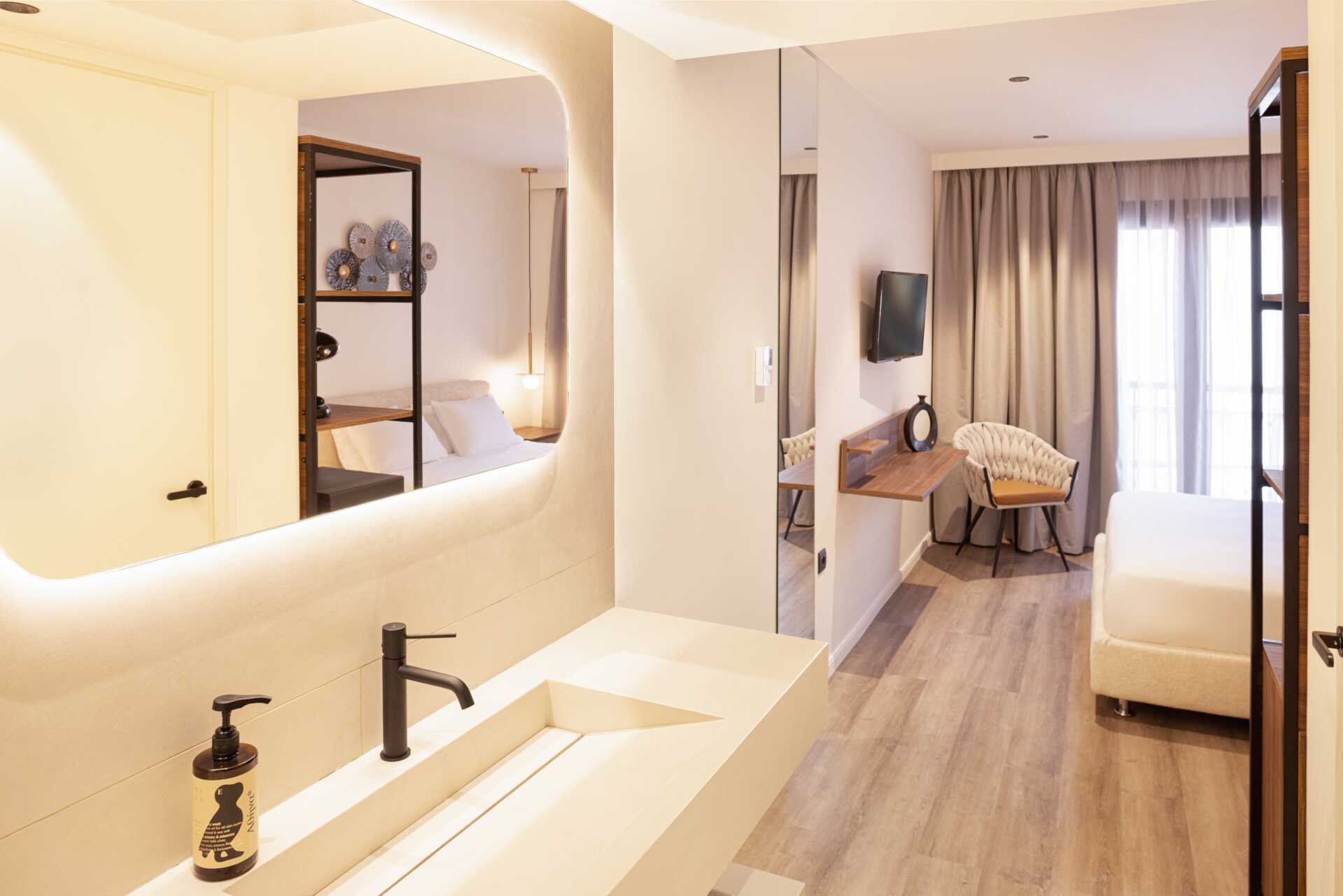 Onlangs gerenoveerde kamers met balkon. Een bed. Koelkast en koffiezetapparaat. Wifi, kluisje en airconditioning inbegrepen. Tv met internationale zenders. Badjassen en hotelslippers. Föhn. Badkamer met douche en toilet. Schoonmaak 7 keer/week.