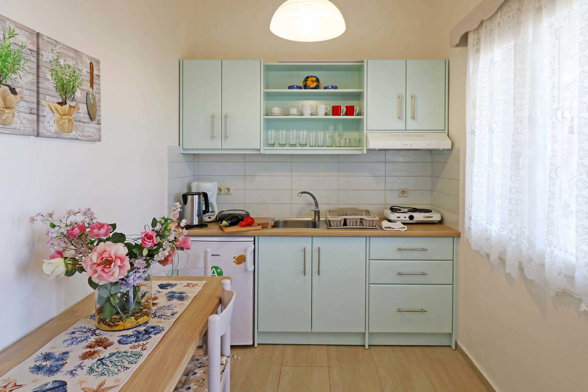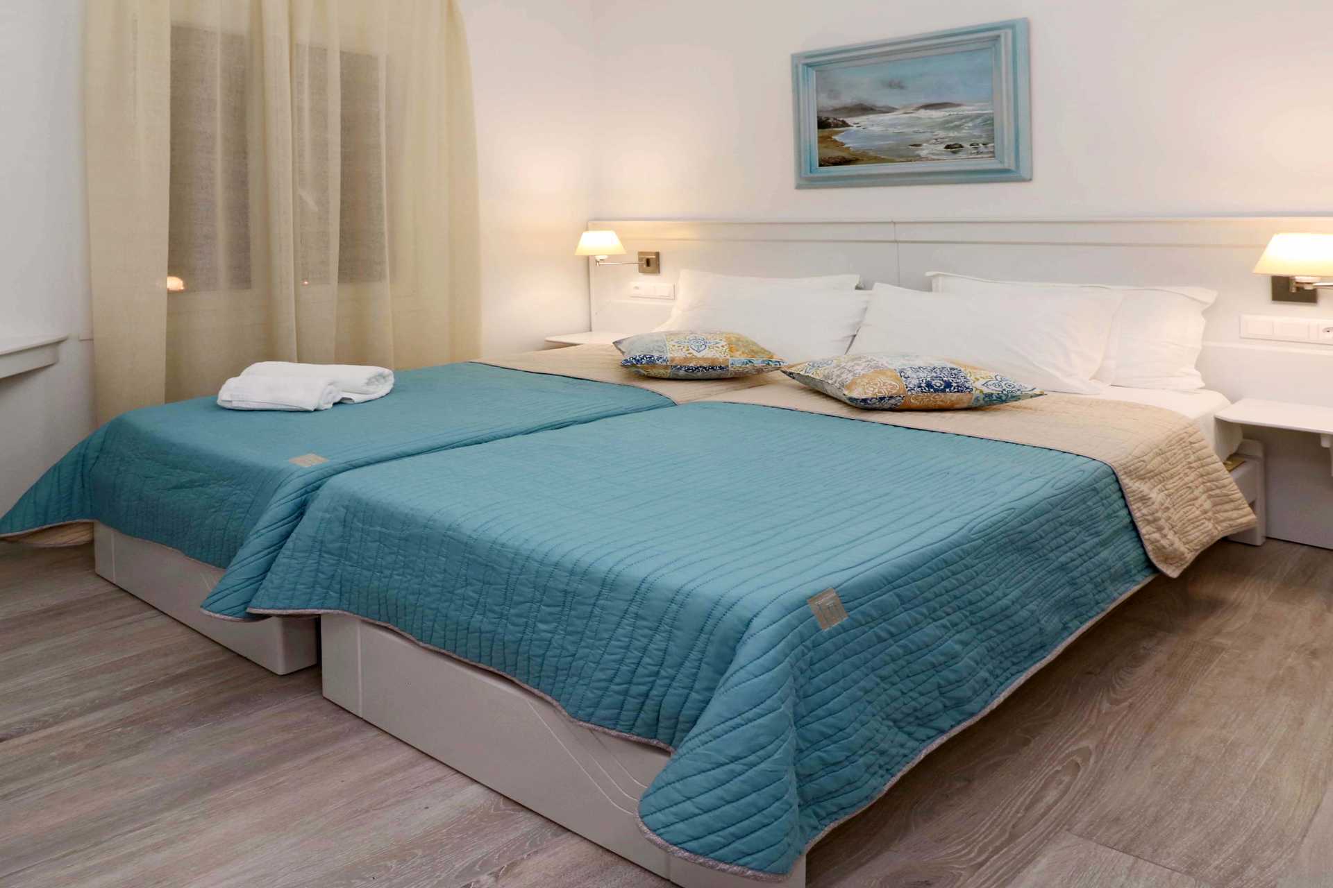 Tweekamerappartement met Gedeelde buitemruimte met Zeezicht of Terras met Beperkt zeezicht. Sommige appartementen hebben één slaapkamer en een gecombineerde woonkamer met een minikeuken, terwijl andere appartementen één slaapkamer en een aparte keuken met eethoek hebben. Een tweepersoonsbed of twee eenpersoonsbedden. Minikeuken met kookplaten, waterkoker, koffiezetapparaat, broodrooster, koelkast en eenvoudige keukenapparatuur. Wifi, kluisje en airconditioning inbegrepen. Föhn. Badkamer met bad of douche en toilet. Schoonmaak 6 keer/week.