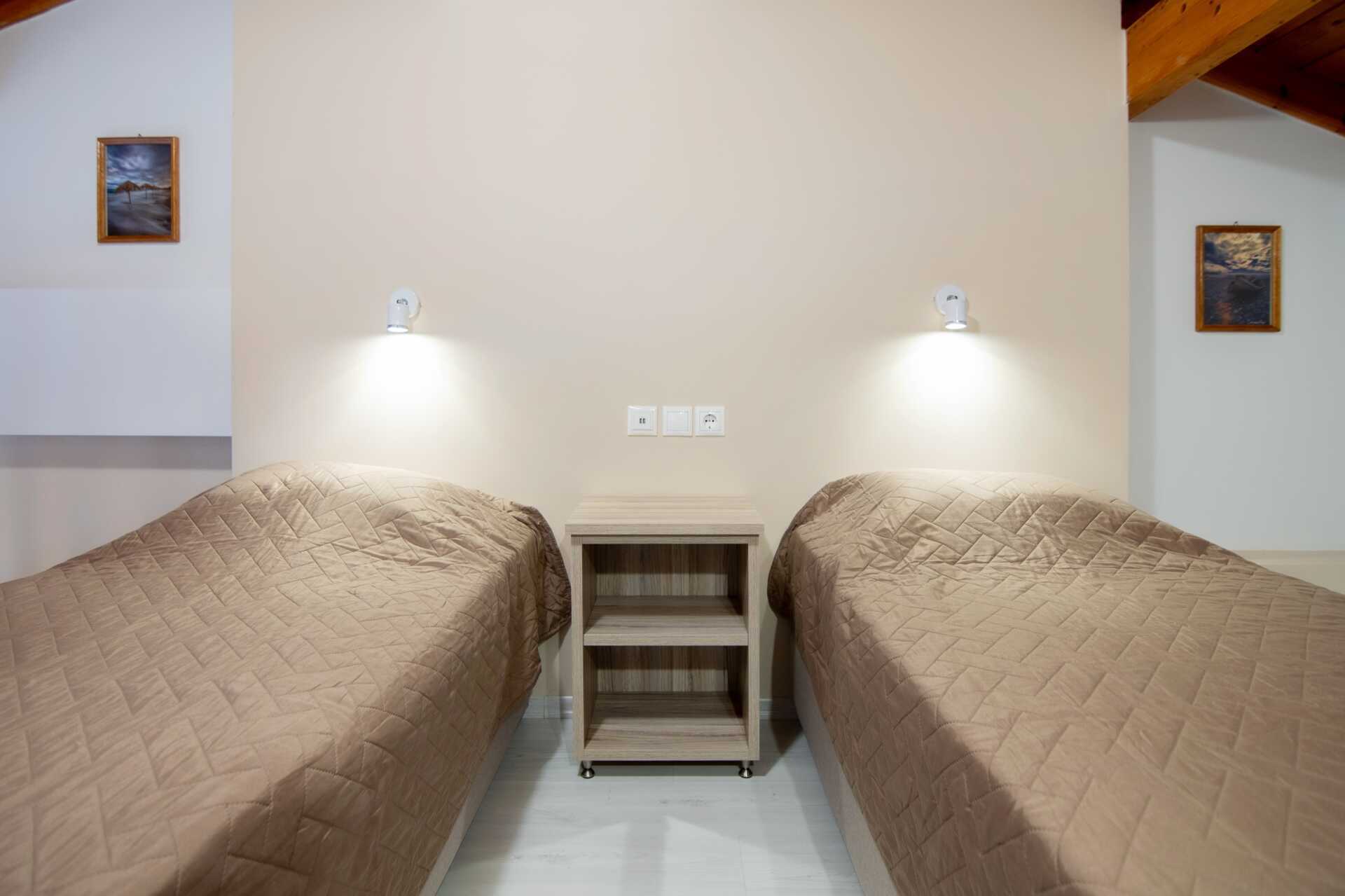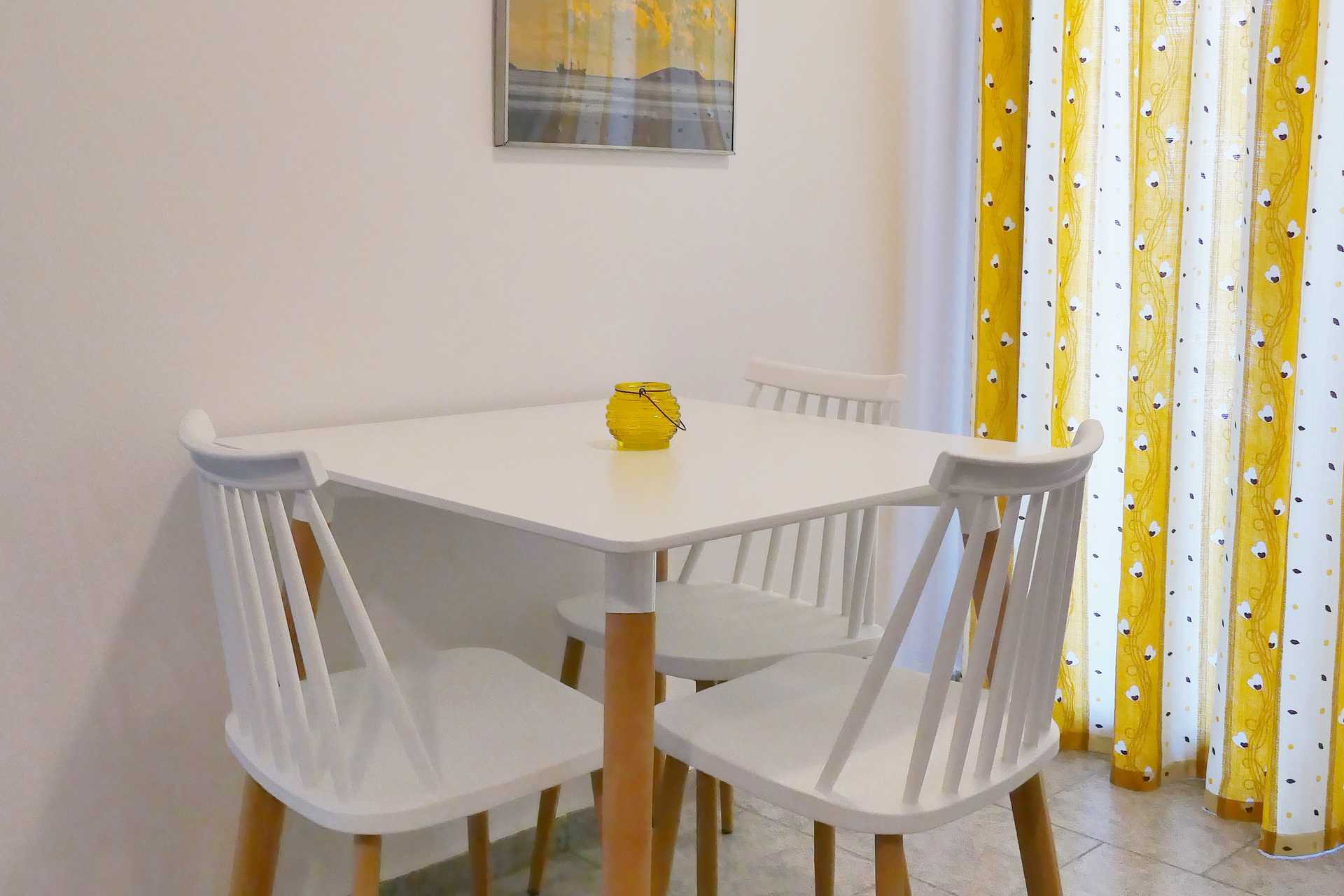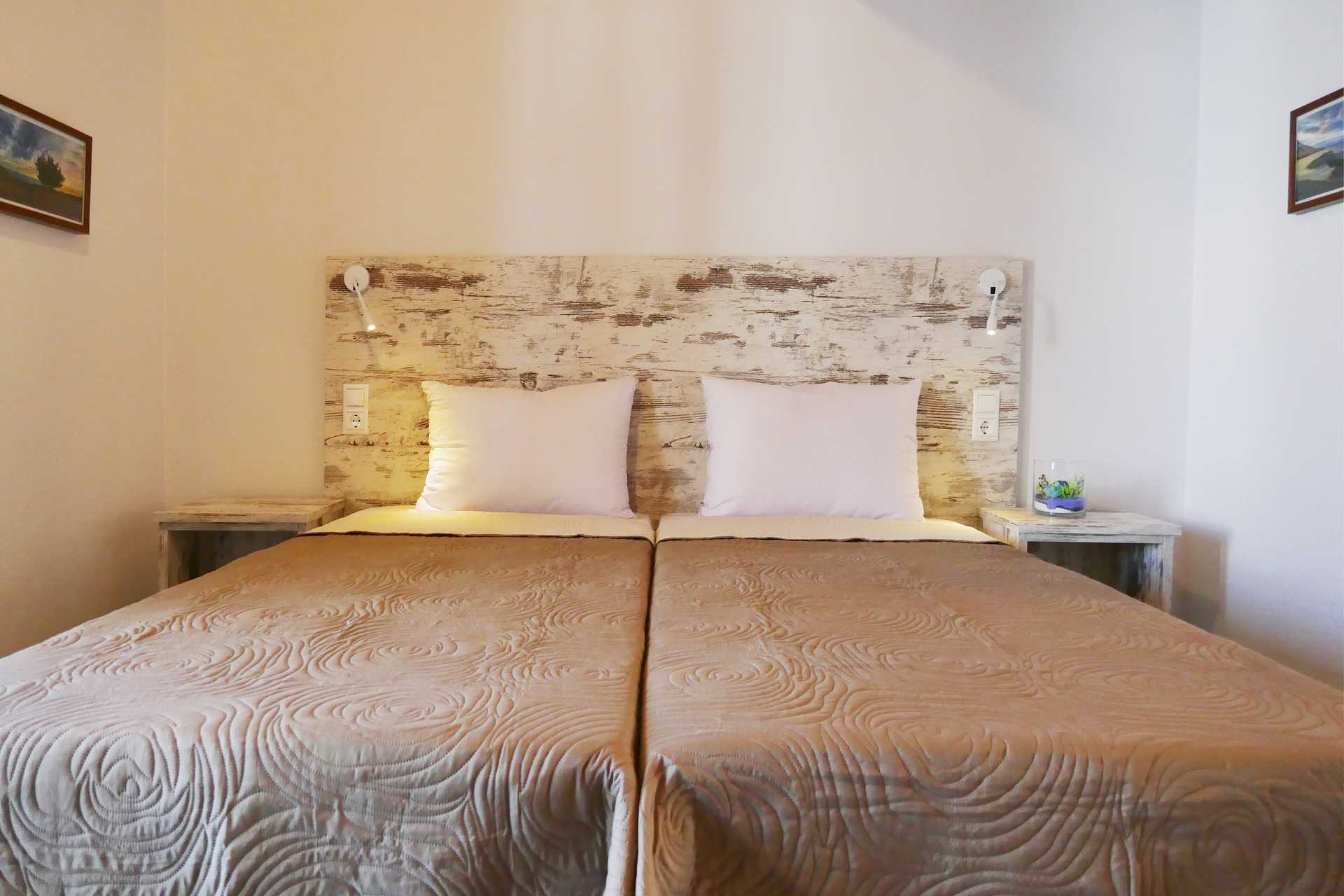 Tweekamerappartement met balkon en uitzicht op zee. Een slaapkamer en een woonkamer gecombineerd met een minikeuken. Een tweepersoonsbed of twee eenpersoonsbedden. Mogelijkheid voor extra bedden in de slaapbank. Minikeuken met kookplaten, koelkast, koffiezetapparaat en basis keukenfaciliteiten. TV met lokale zenders. Wifi, airconditioning en kluisje inbegrepen. Badkamer met douche en toilet. Schoonmaak 6 keer/week.