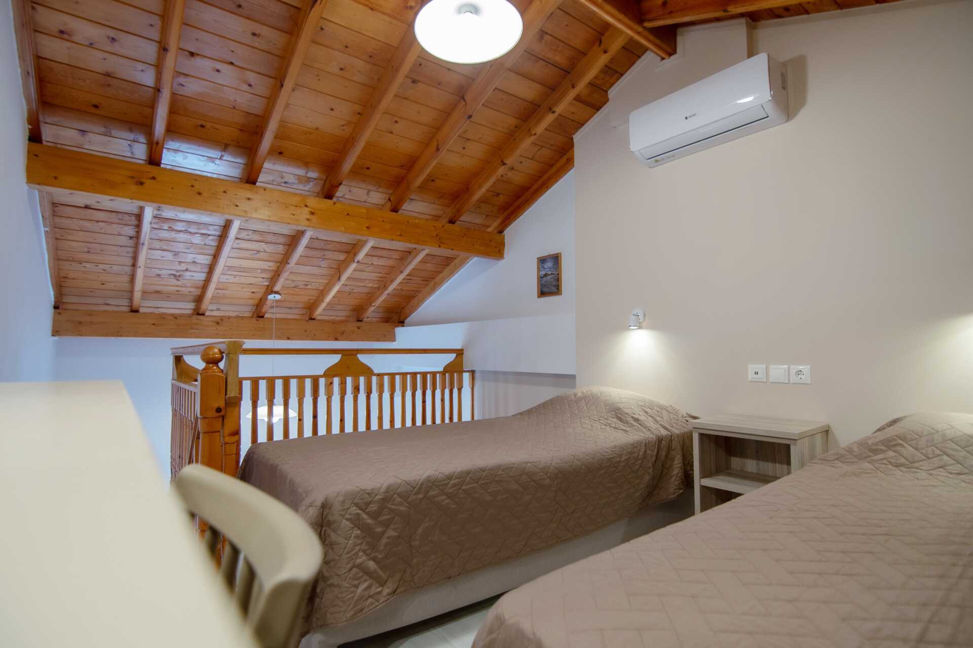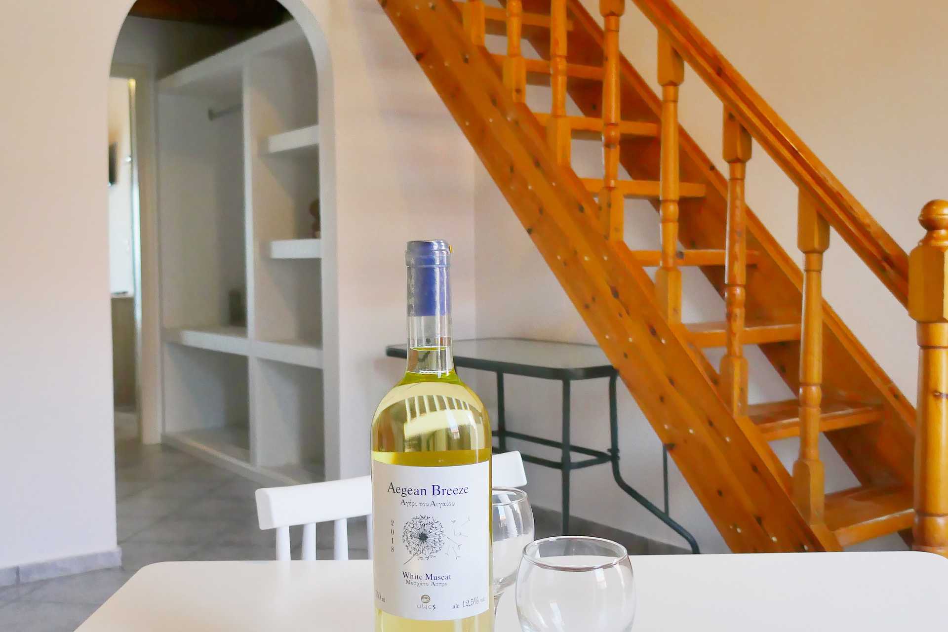 Studio op verdieping met balkon, Ongespecificeerd uitzicht, Zeezicht of Beperkt zeezicht. Eén tweepersoonsbed of twee eenpersoonsbedden op een vide. Mogelijkheid tot extra bedden in de vorm van een slaapbank. Open plattegrond tussen verdiepingen. Minikeuken met kookplaten, koelkast, koffiezetapparaat en basis keukenuitrusting op de begane grond. Wifi, airconditioning en kluisje inbegrepen. Tv met lokale zenders. Badkamer met douche en toilet. Schoonmaak 6 keer/week.