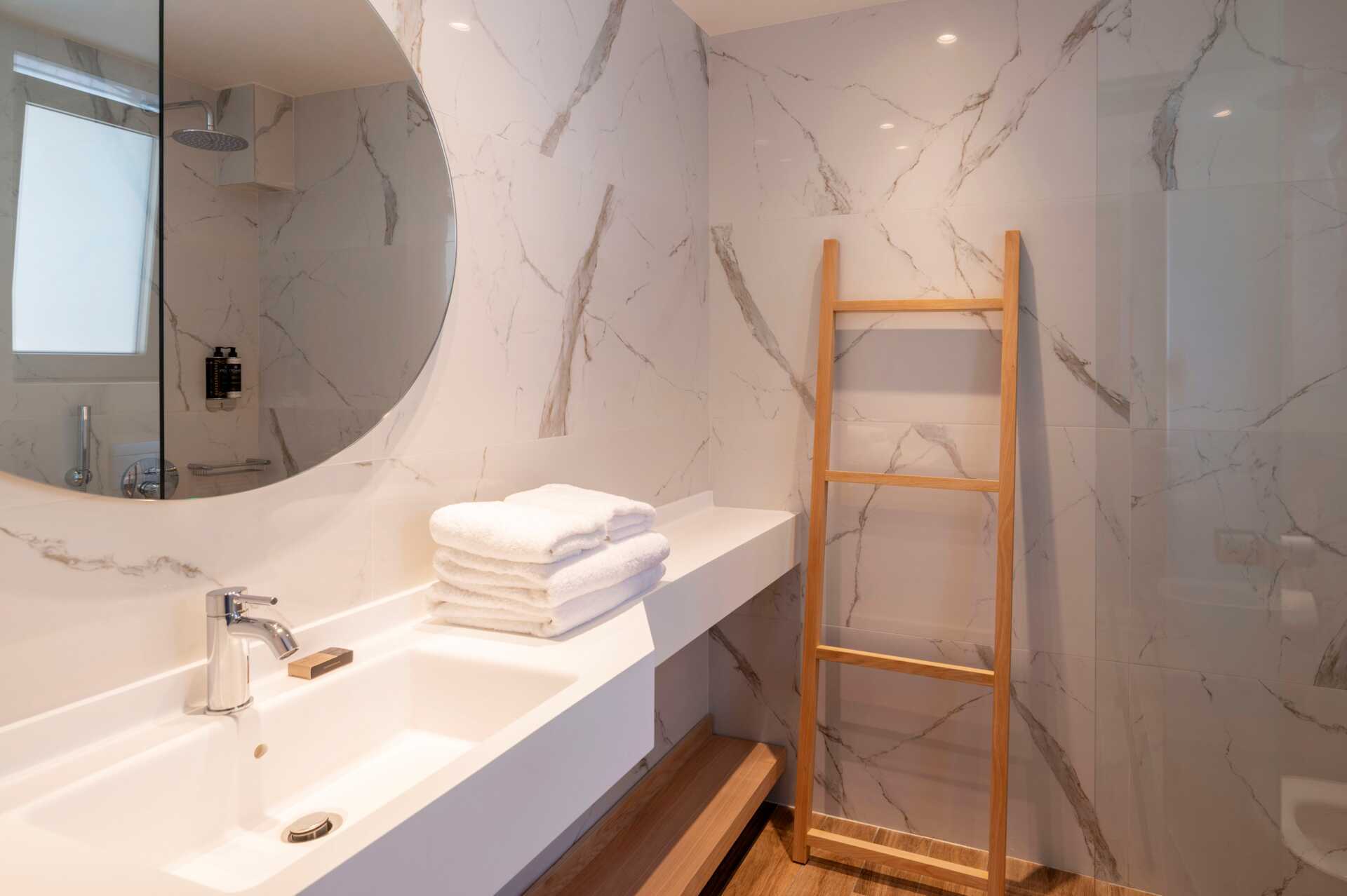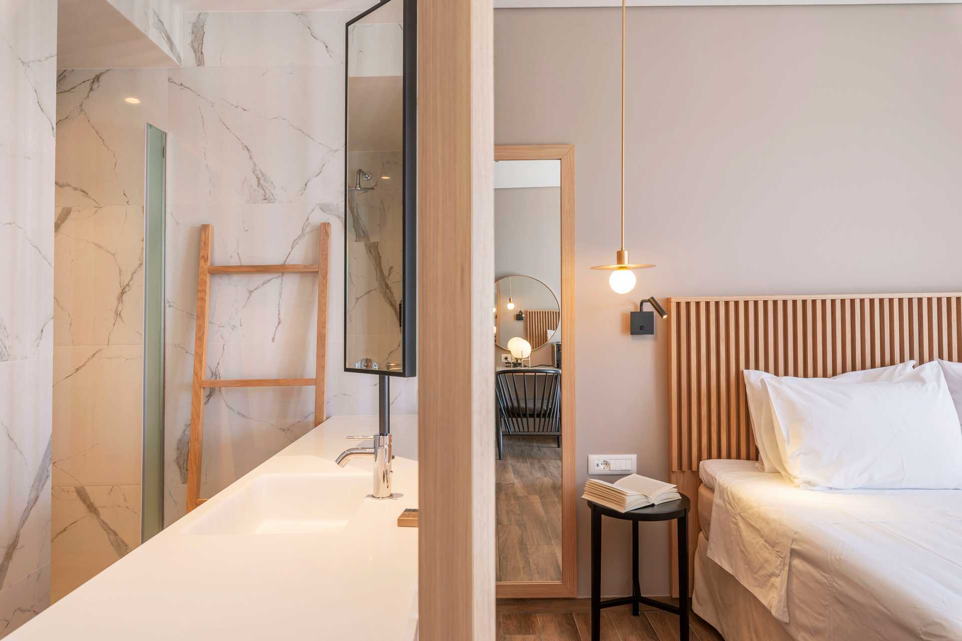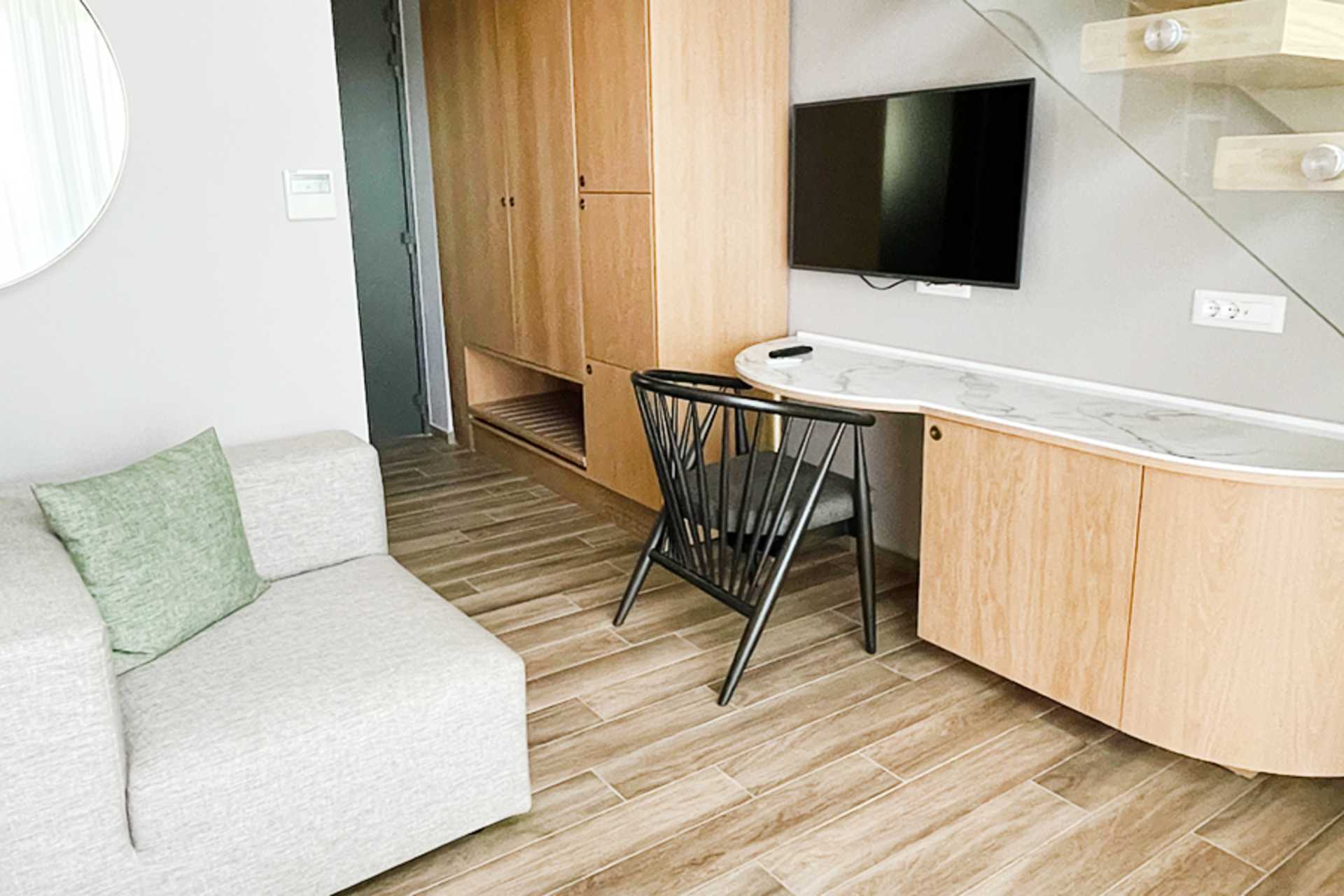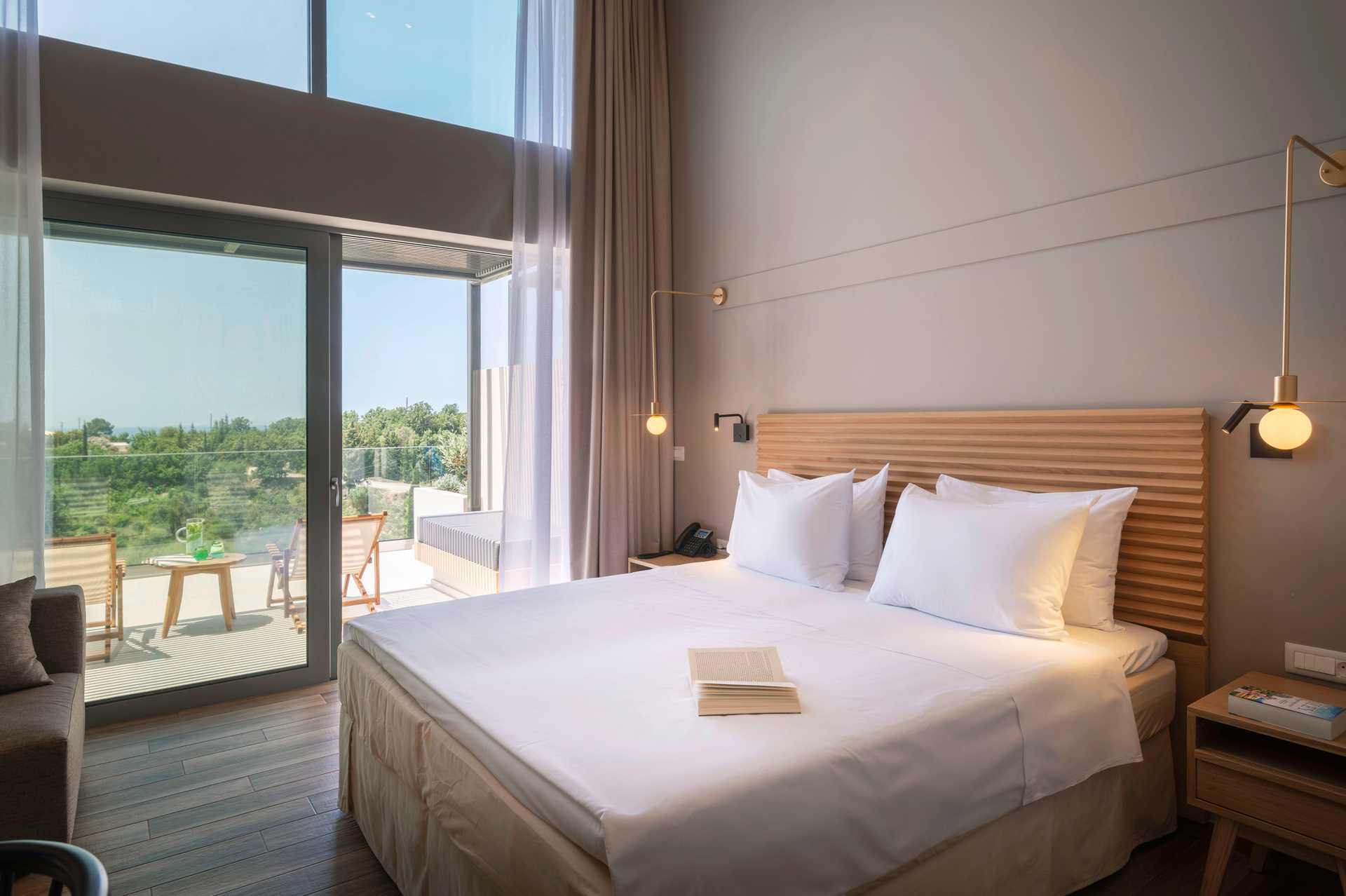 Tweepersoonskamer op de bovenste verdiepingen met een balkon aan zee. Het slaapcomfort is hoog met een comfortabel tweepersoonsbed en beddengoed van CocoMat. Wifi, kluis en airconditioning inbegrepen. Koffiezetapparaat, capsules bij aankomst daarna tegen betaling. Koelkast. Tv met internationale zenders. Bluetooth speakers zijn te leen bij de receptie tegen een borg. Föhn. Badkamer met douche en toilet. Schoonmaak 7 keer / week.