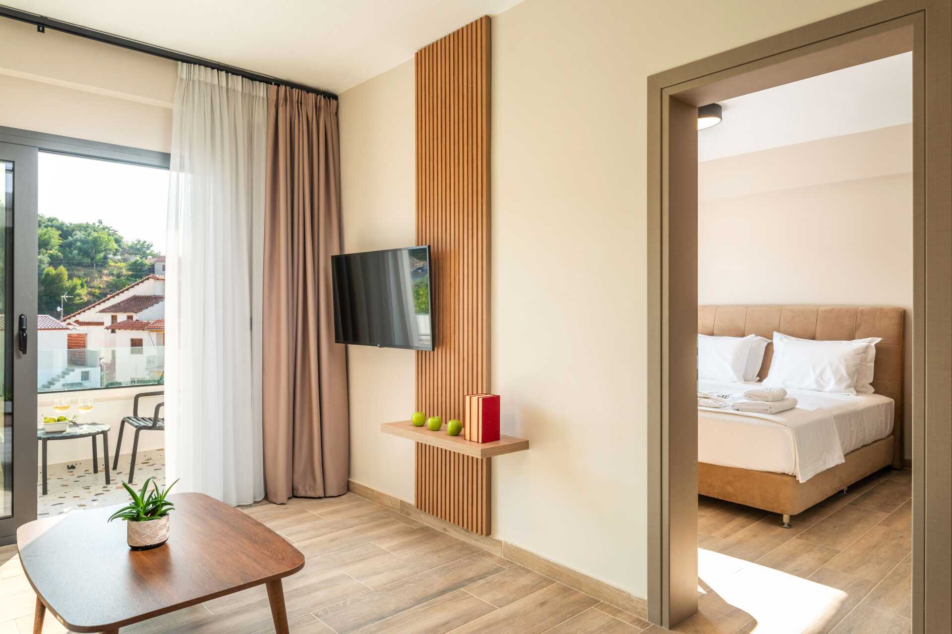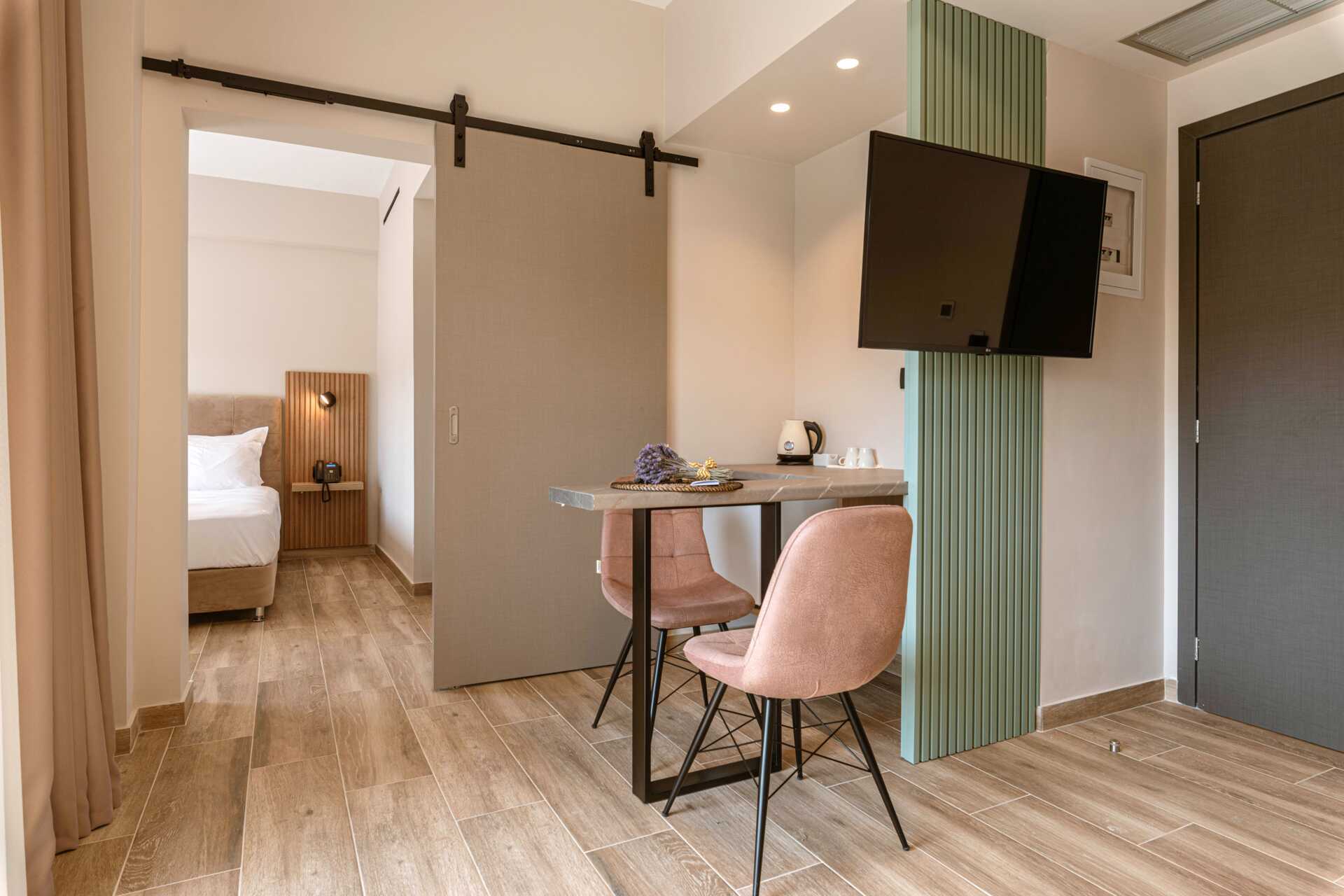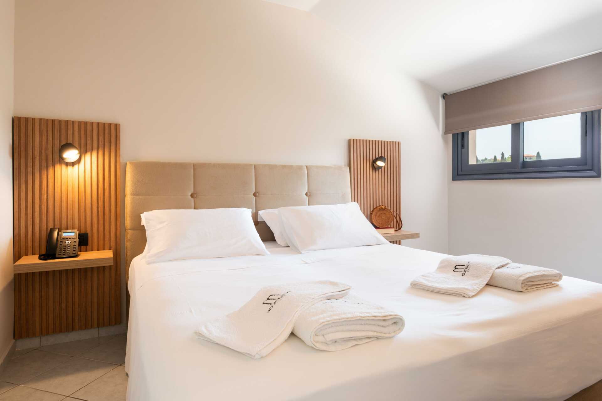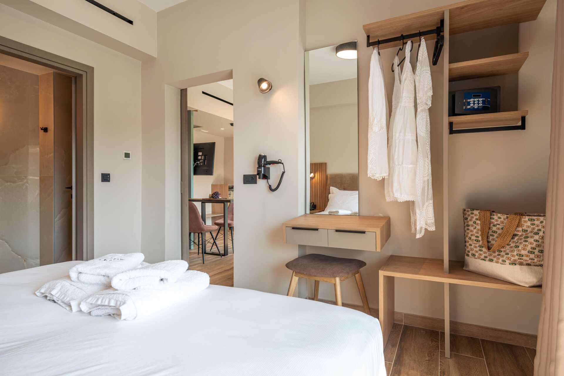 Familiekamer met balkon. Slaapkamer en woonkamer. Een tweepersoonsbed. Mogelijkheid voor extra bedden in slaapbank. Koelkast. Waterkoker. Wifi, airconditioning en kluisje inbegrepen. Tv met internationale zenders. Föhn. Badkamer met bad of douche en toilet. Schoonmaak 7 keer/week.