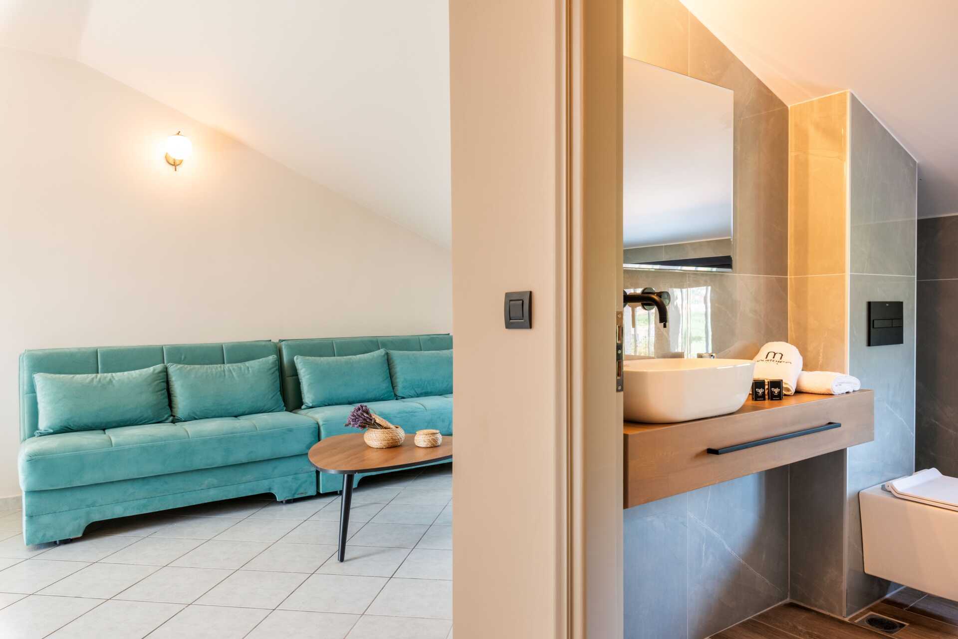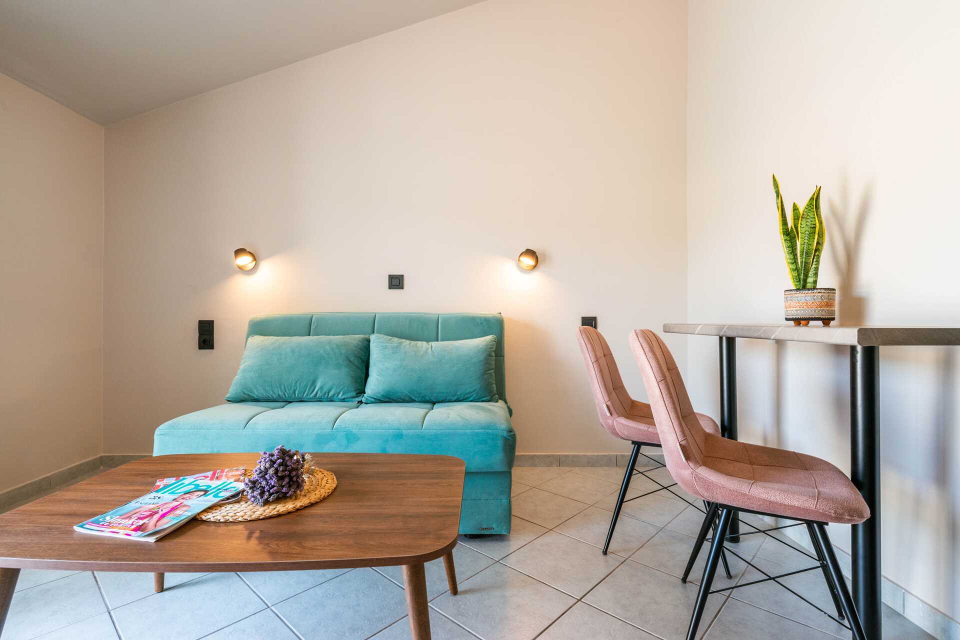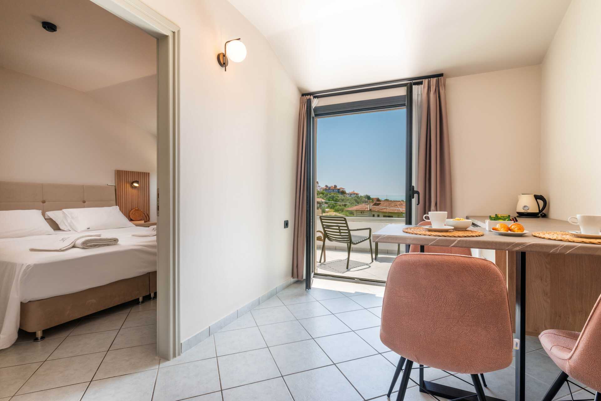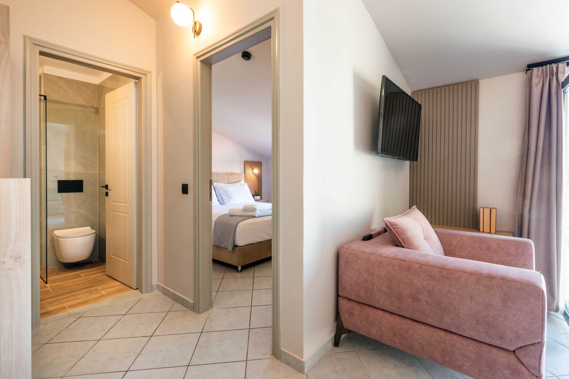 Familiekamer met balkon. Slaapkamer en woonkamer. Een tweepersoonsbed. Mogelijkheid voor extra bedden in slaapbank. Koelkast. Waterkoker. Wifi, airconditioning en kluisje inbegrepen. Tv met internationale zenders. Föhn. Badkamer met bad of douche en toilet. Schoonmaak 7 keer/week.