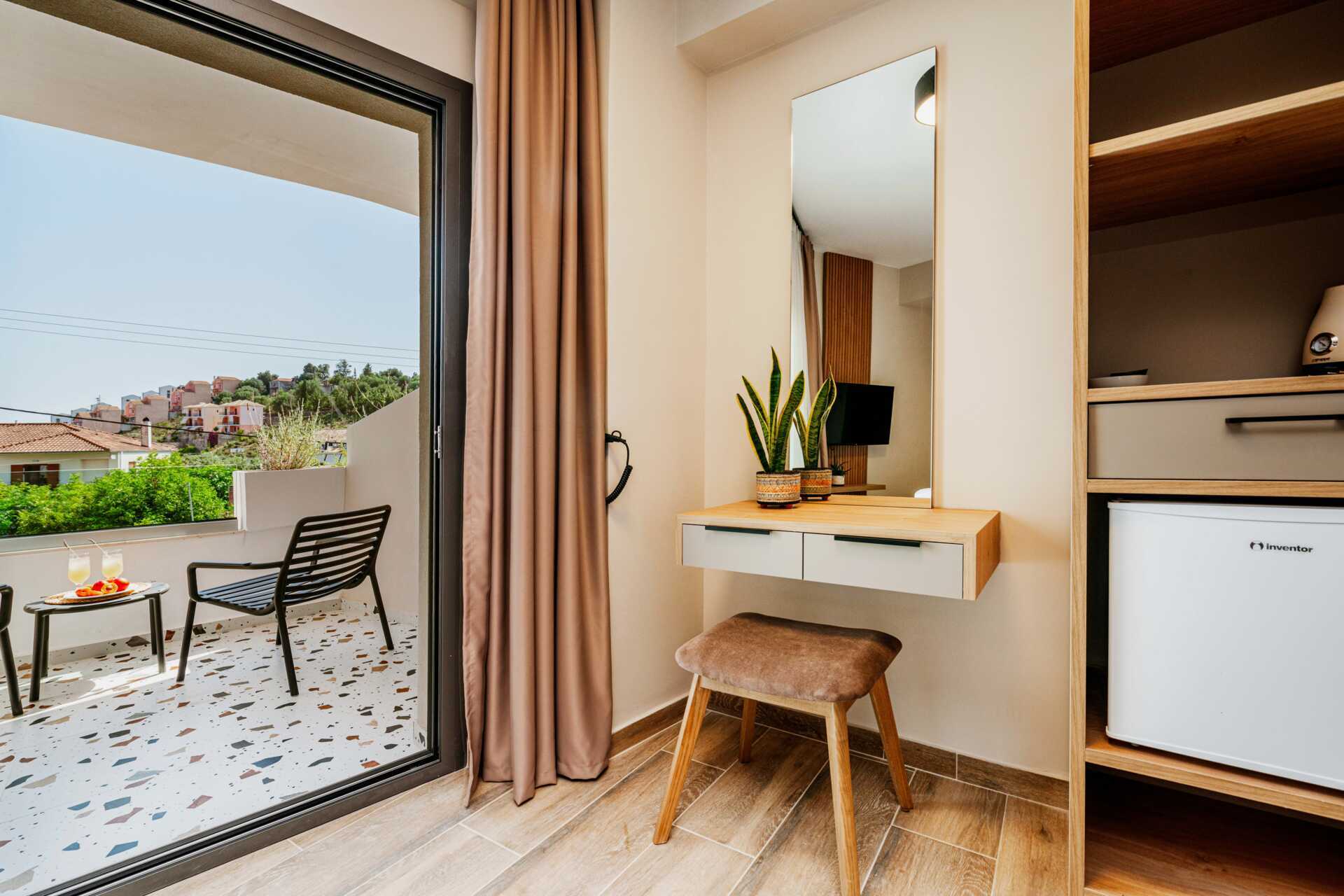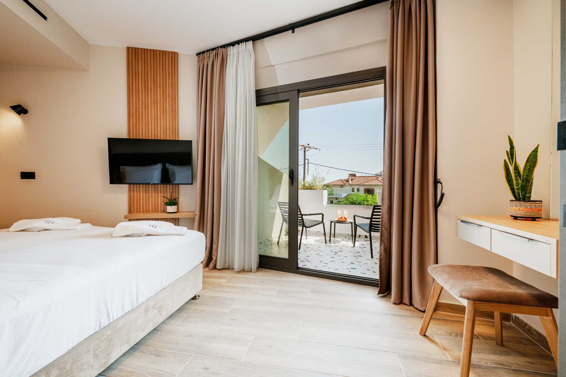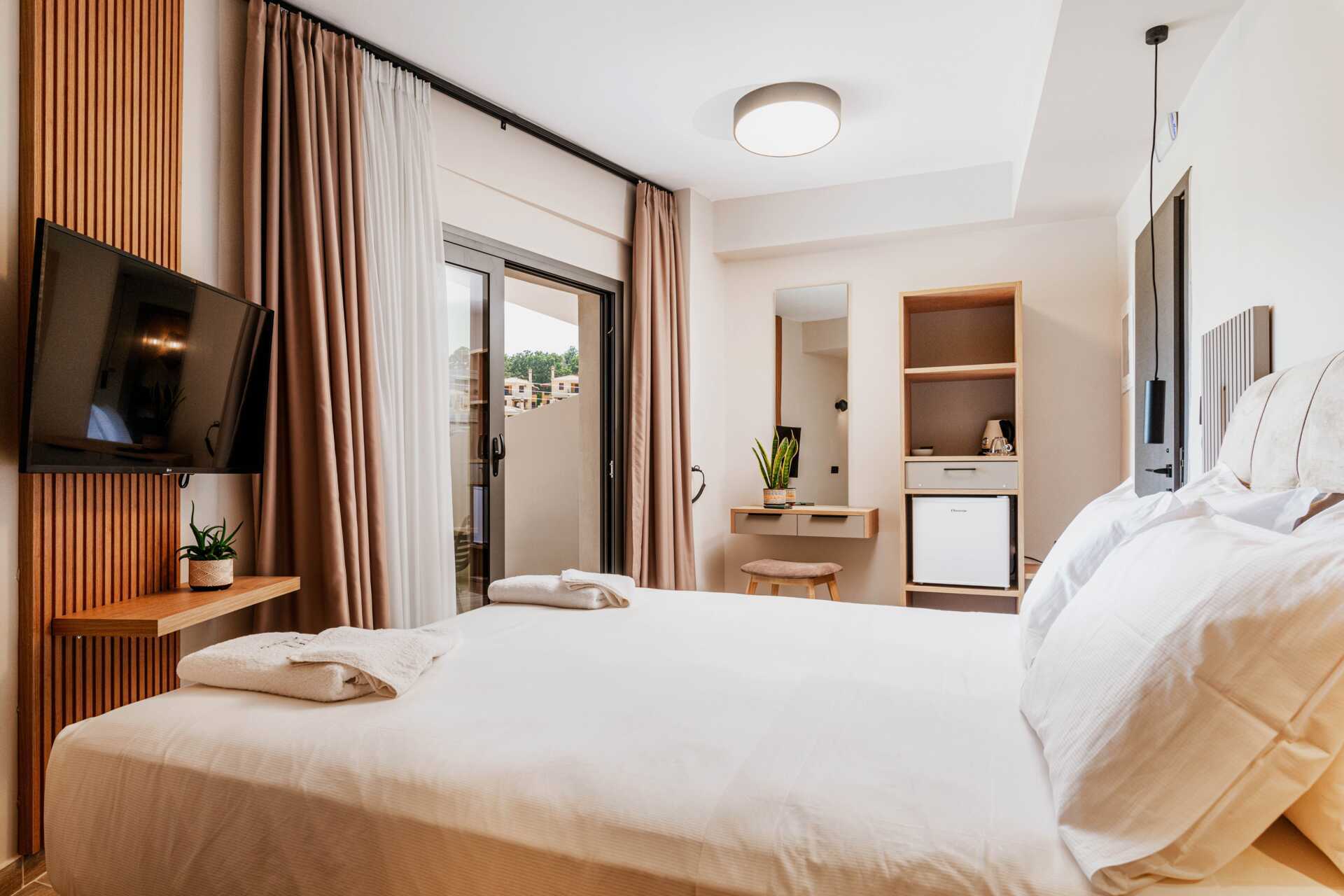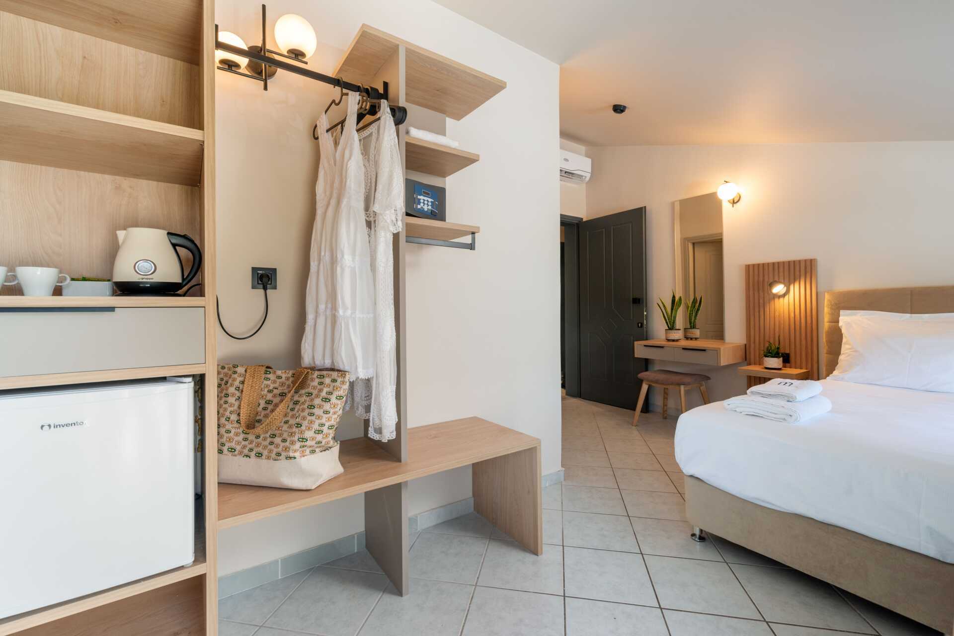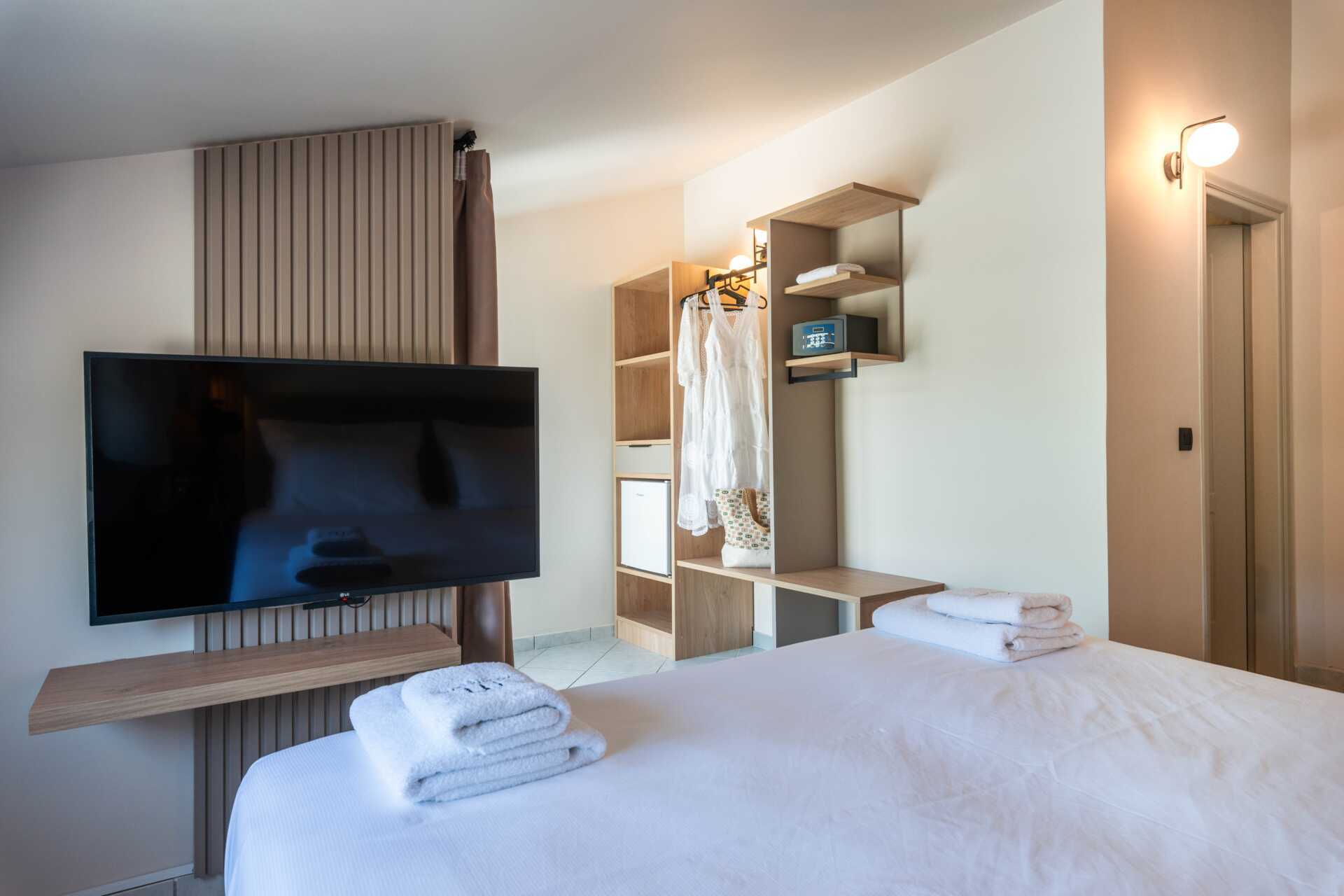 Tweepersoonskamer met balkon Een tweepersoonsbed. Mogelijkheid voor een extra bed in een eenpersoonsbed. Koelkast. Waterkoker. Wifi, airconditioning en kluisje inbegrepen. Tv met internationale zenders. Föhn. Badkamer met bad of douche en toilet. Schoonmaak 7 keer/week.