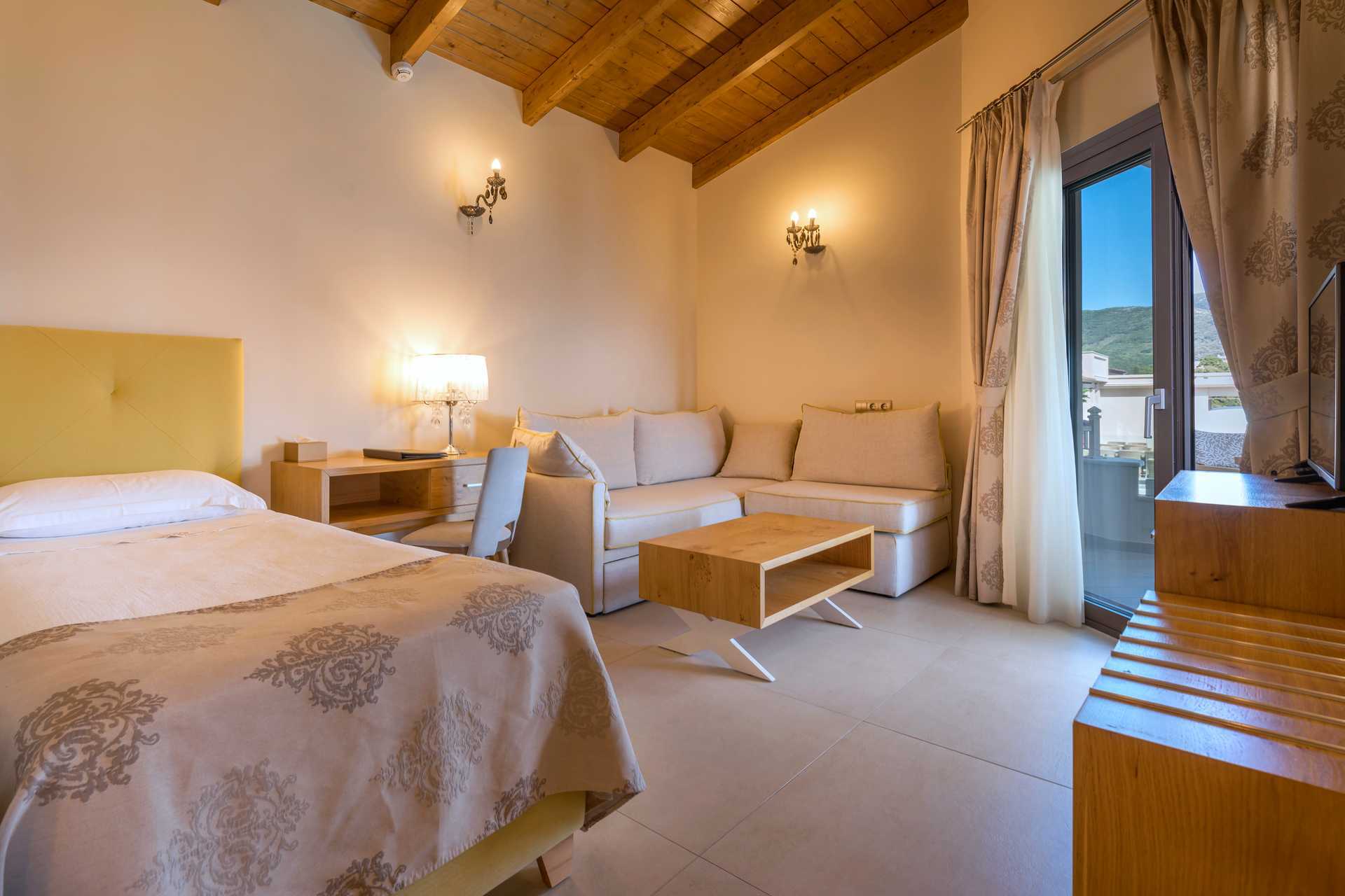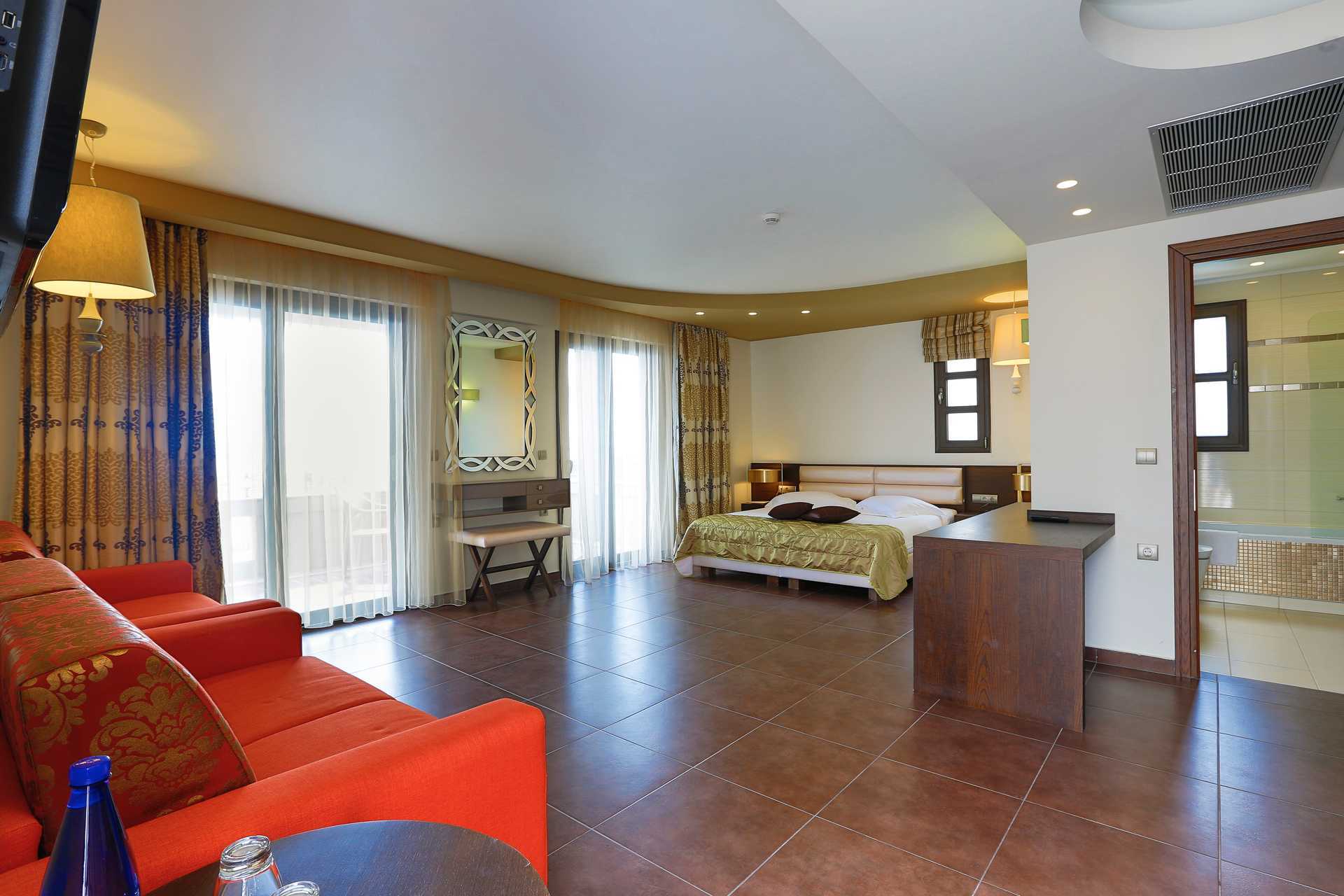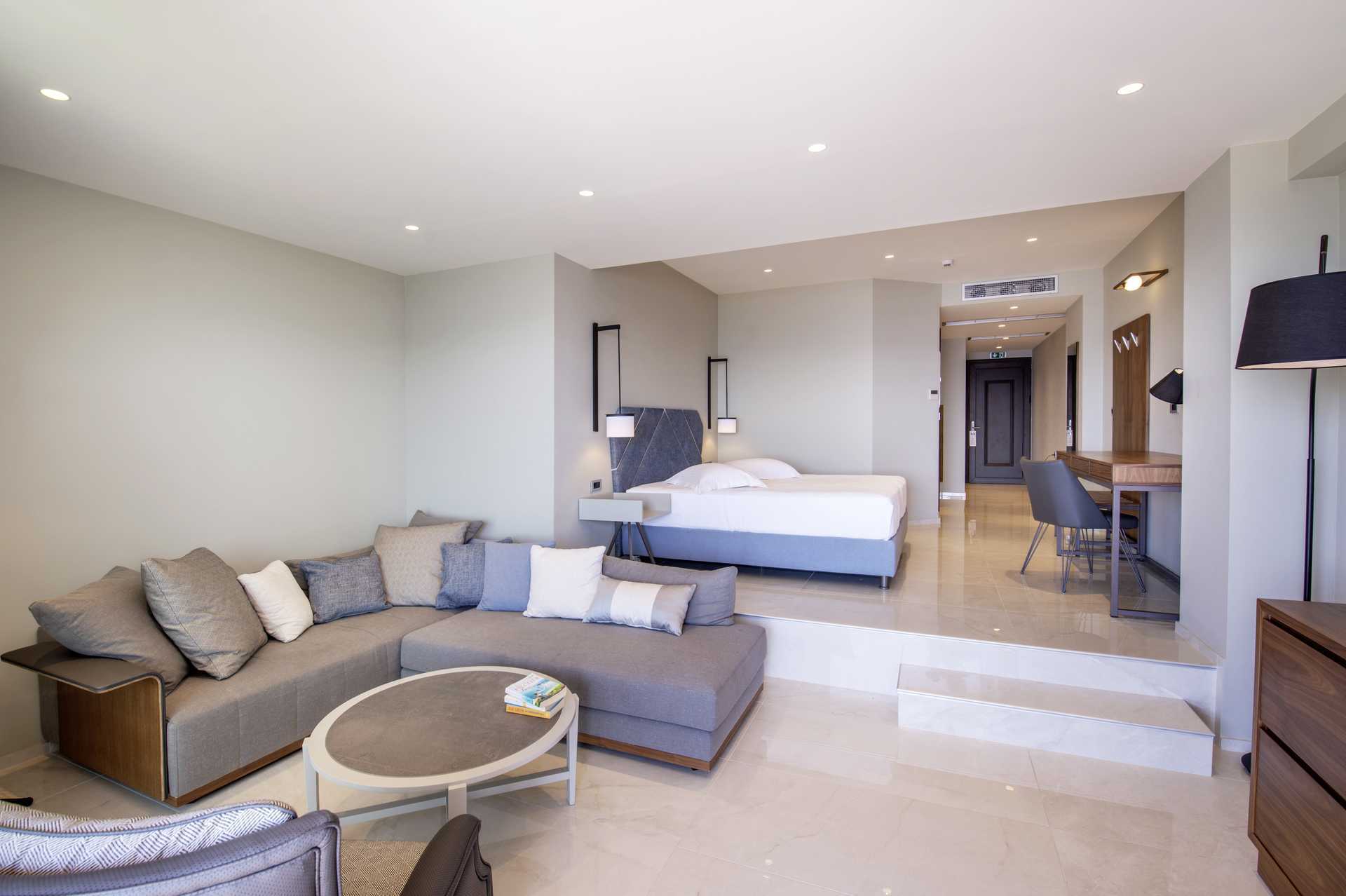 Suite met balkon met zeezicht of beperkt zeezicht. Eén tweepersoonsbed of twee éénpersoonsbedden. Mogelijkheid van extra bed in eenpersoonsbed. Wifi, airconditioning en kluisje inbegrepen. Minibar. TV met internationale zenders. Badjassen en pantoffels. Föhn. Badkamer met douche en toilet. Balkon met zeezicht of beperkt zeezicht. Schoonmaak 7 keer per week.