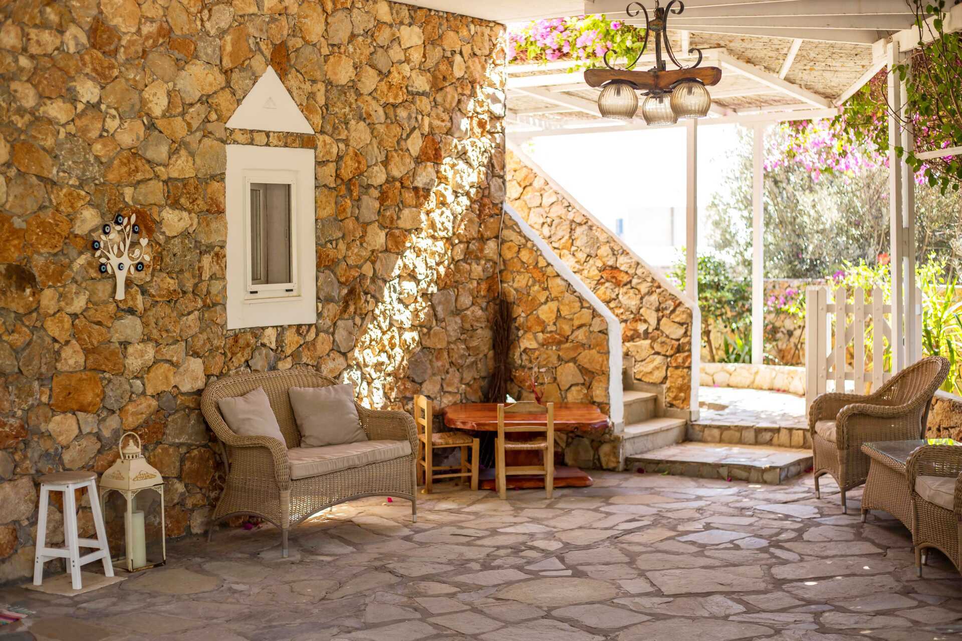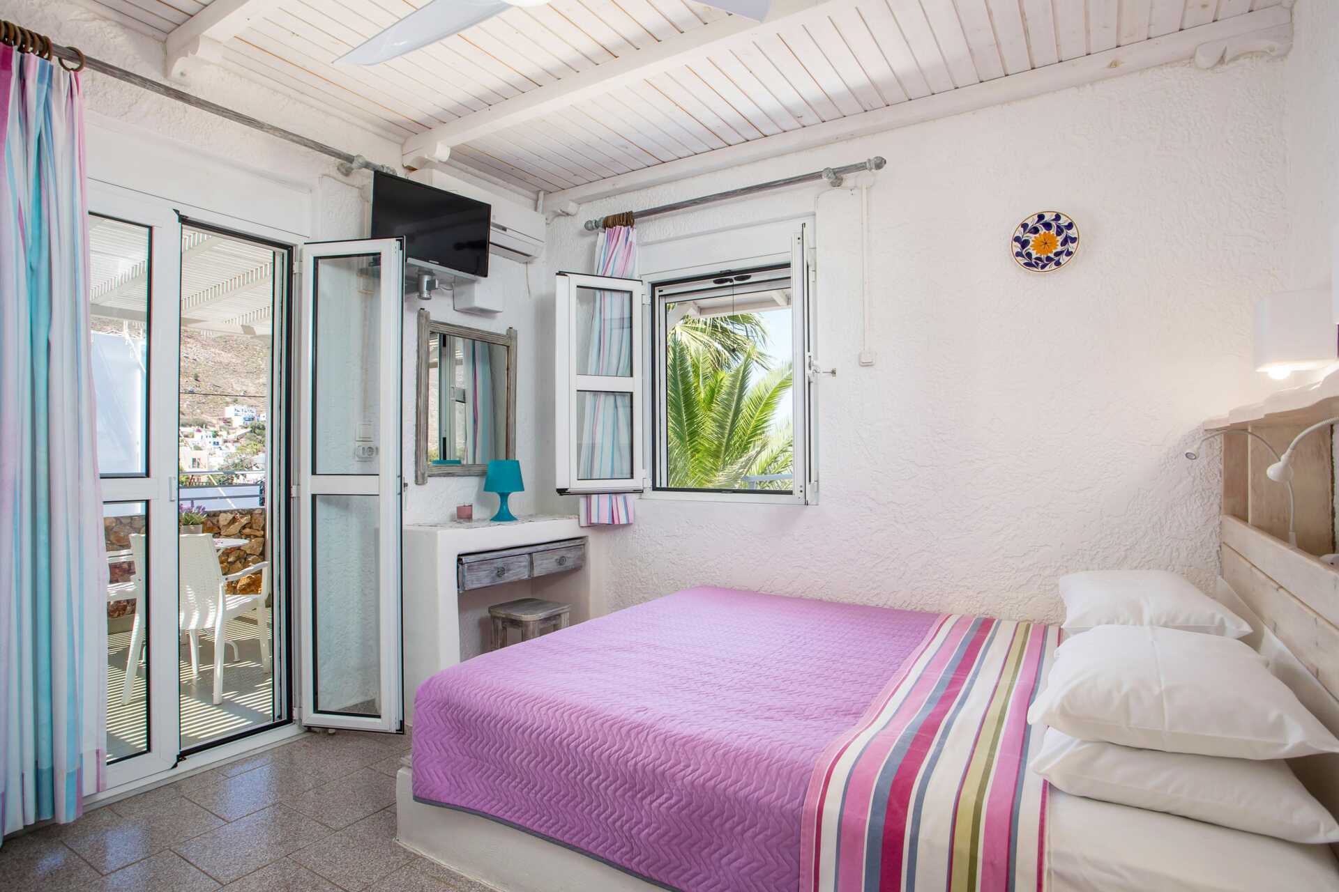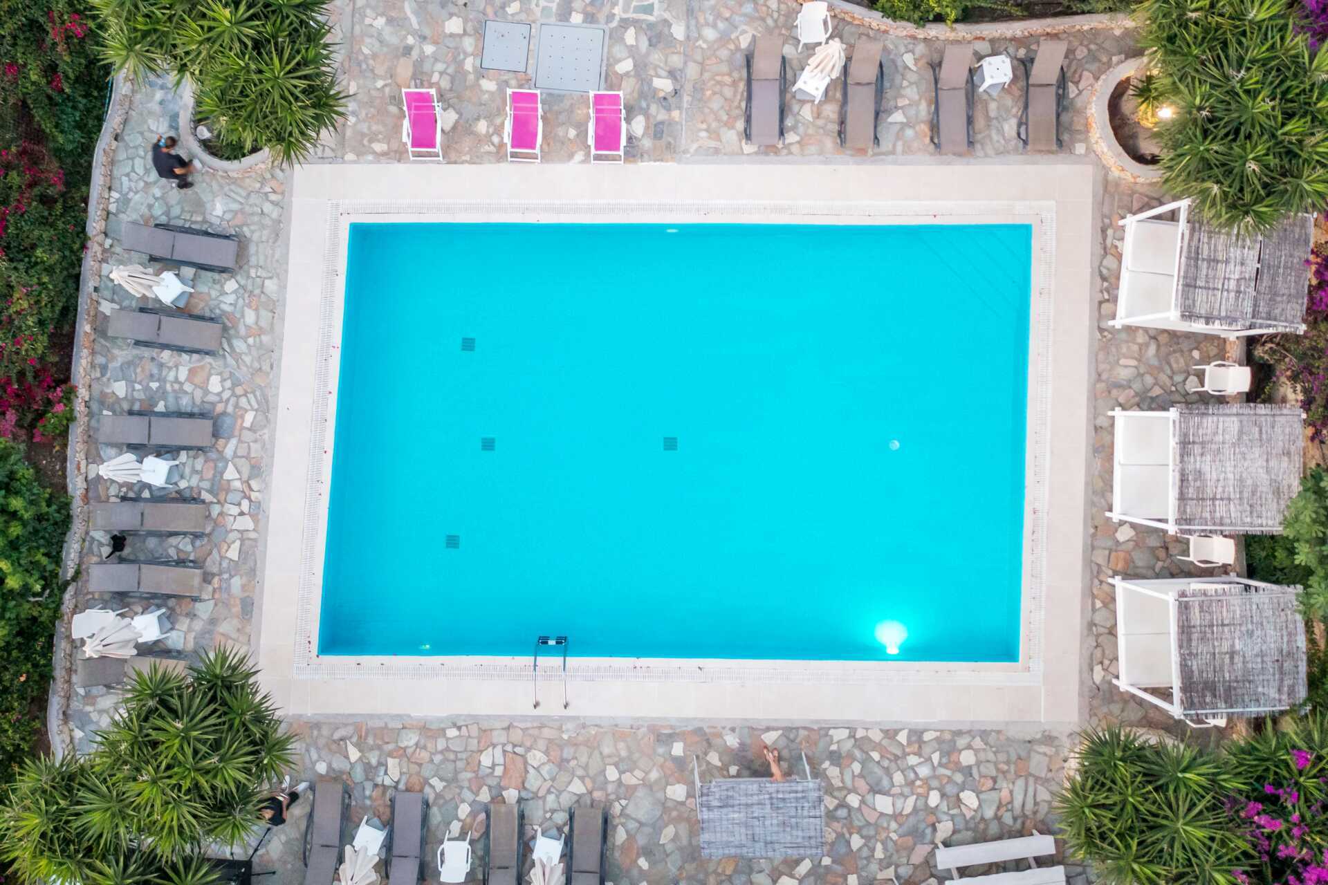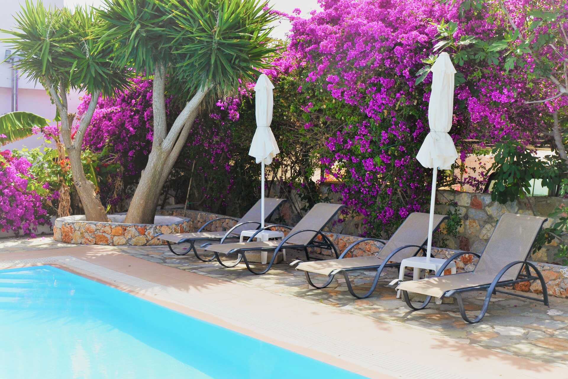 Charmant hotel Irini heeft een klein zwembad in de tuin met ligbedden en parasols om te lenen. Het is een korte wandeling naar het strand. De stranden op Tilos zijn grind- of steenstranden en het water is helder en fijn.