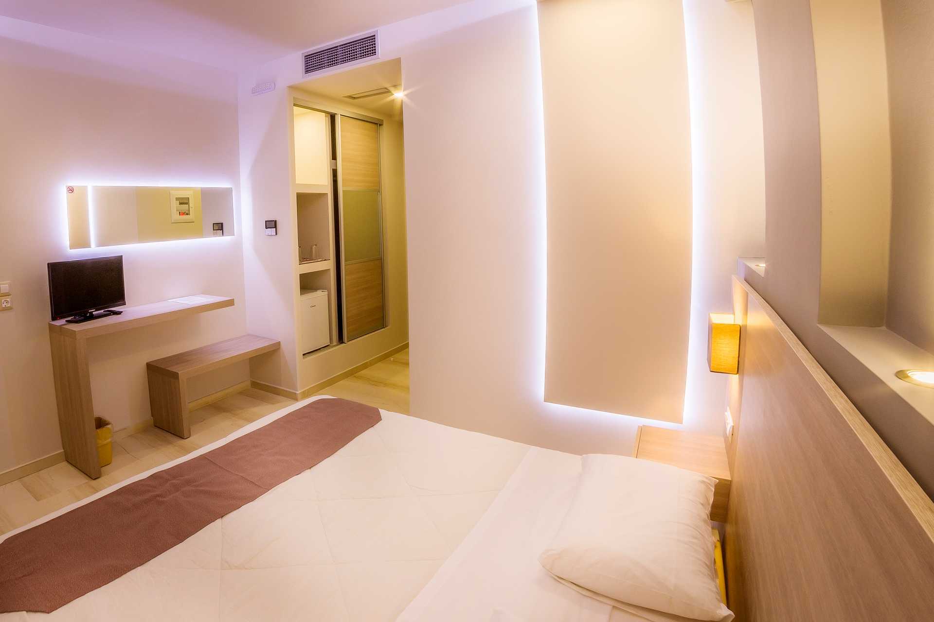 Tweepersoonskamers met balkon of veranda, sommige met uitzicht op het zwembad. Eén tweepersoonsbed of twee eenpersoonsbedden. Mogelijkheid van extra slaapplaats in opklapbed. Koelkast. Waterkoker. Gratis wifi, airconditioning en kluisje. Tv met satellietkanalen. Badkamer met douche en toilet. Schoonmaak 7 keer/week.