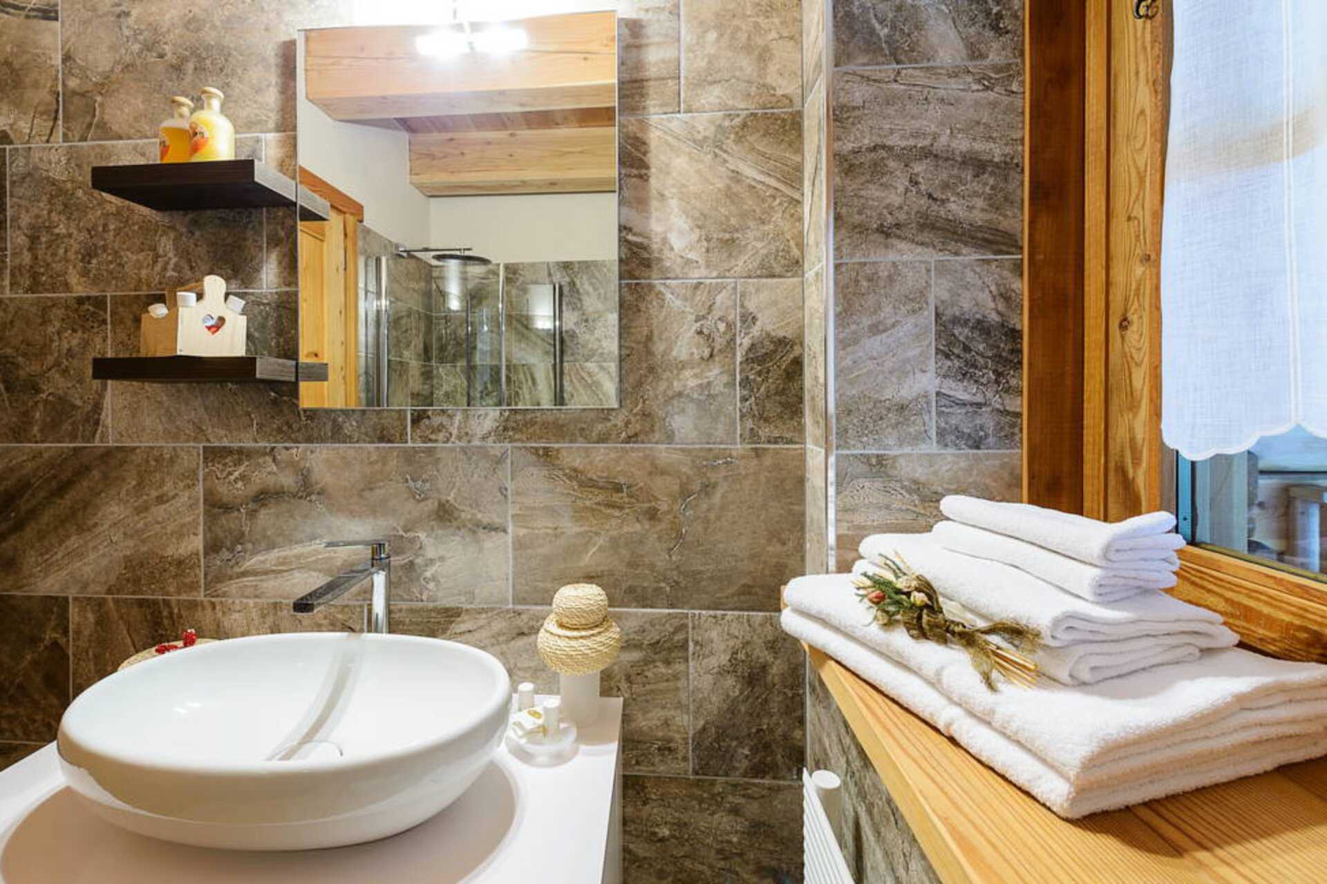 Tweekamerappartement met balkon met uitzicht op de bergen. Slaapkamer en gecombineerde woonkamer met kitchenette. Een tweepersoonsbed. Mogelijkheid tot extra bedden in de vorm van slaapbanken. Kitchenette met fornuis, oven, koelkast, waterkoker en basiskeukengerei. Sommige appartementen beschikken over een gasfornuis. Wifi inbegrepen. Tv met lokale zenders. Föhn. Badkamer met douche en toilet. Schoonmaak 1 keer/week. De appartementen zijn voorzien van schoonmaakspullen en schoonmaakmiddelen.