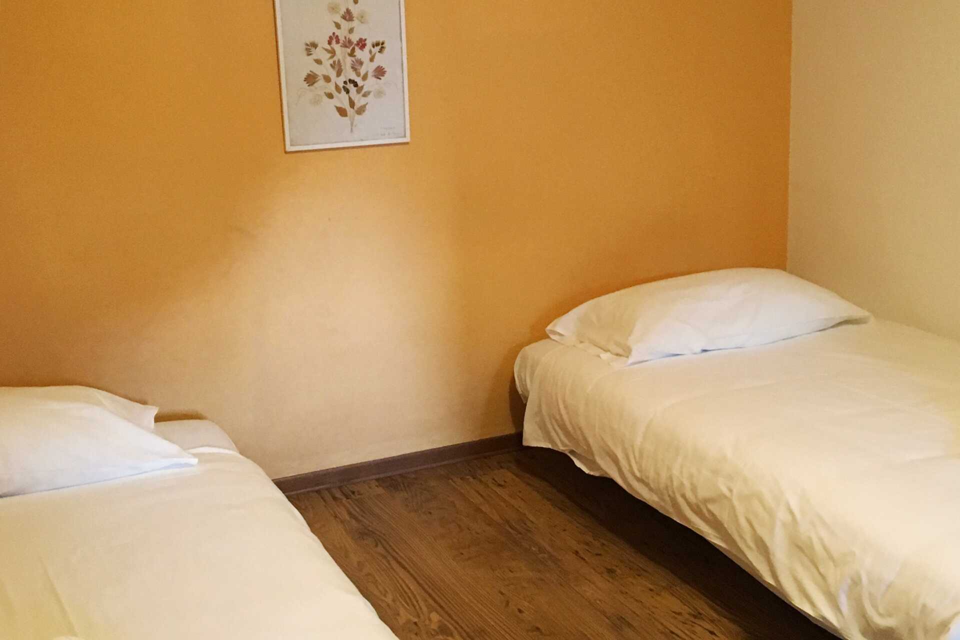 Tweepersoonskamer, zonder terras. Een tweepersoonsbed of twee eenpersoonsbedden. Mogelijkheid voor een extra bed. Wifi inbegrepen. Badkamer met douche en toilet.
