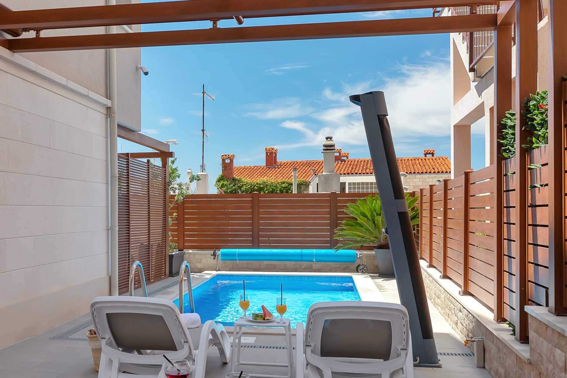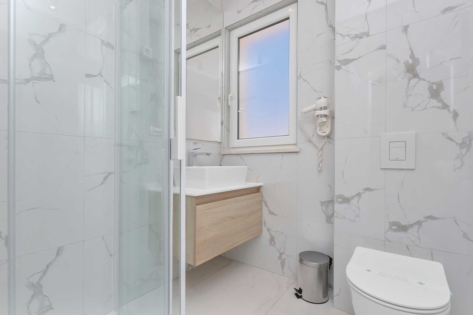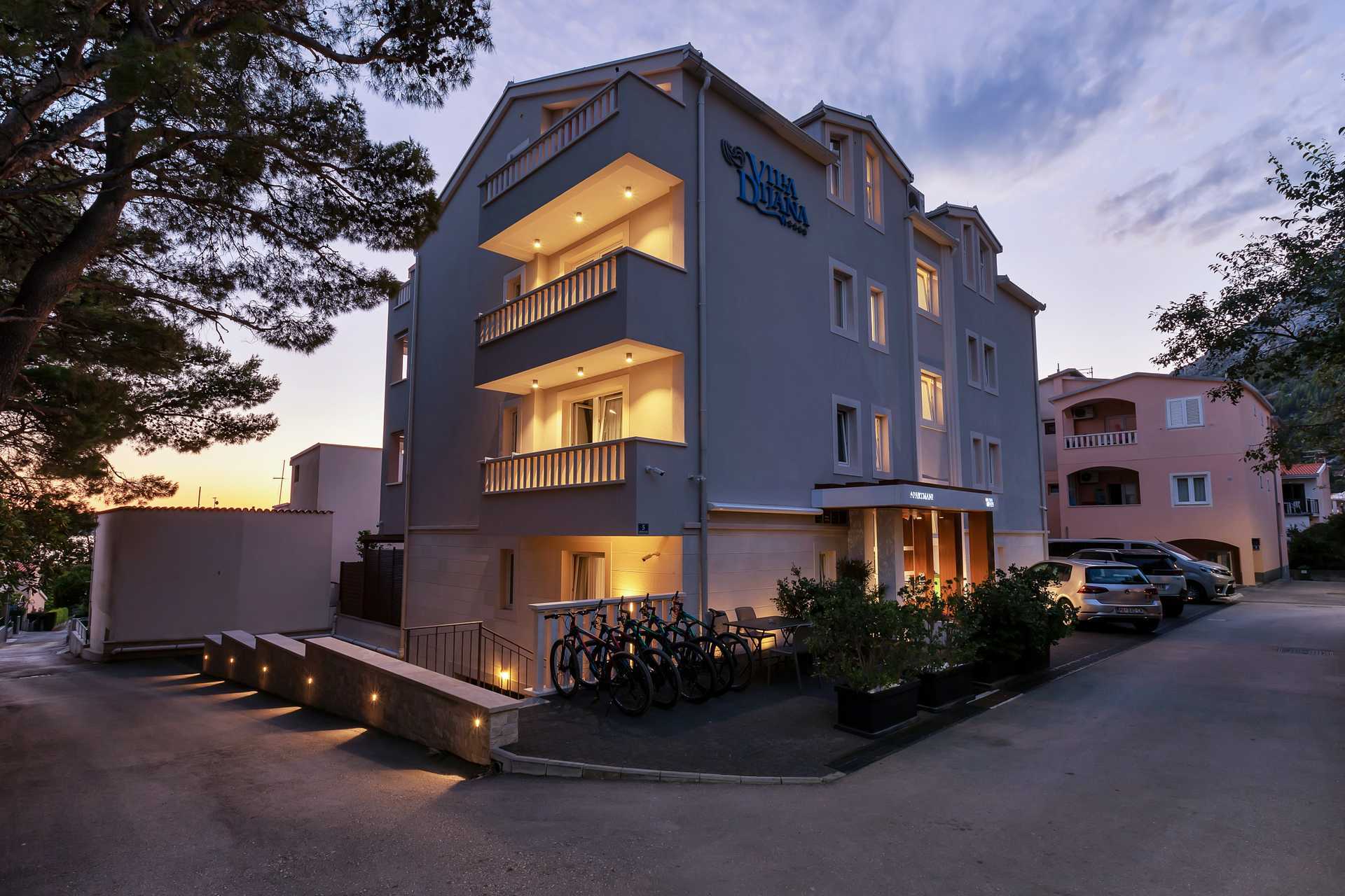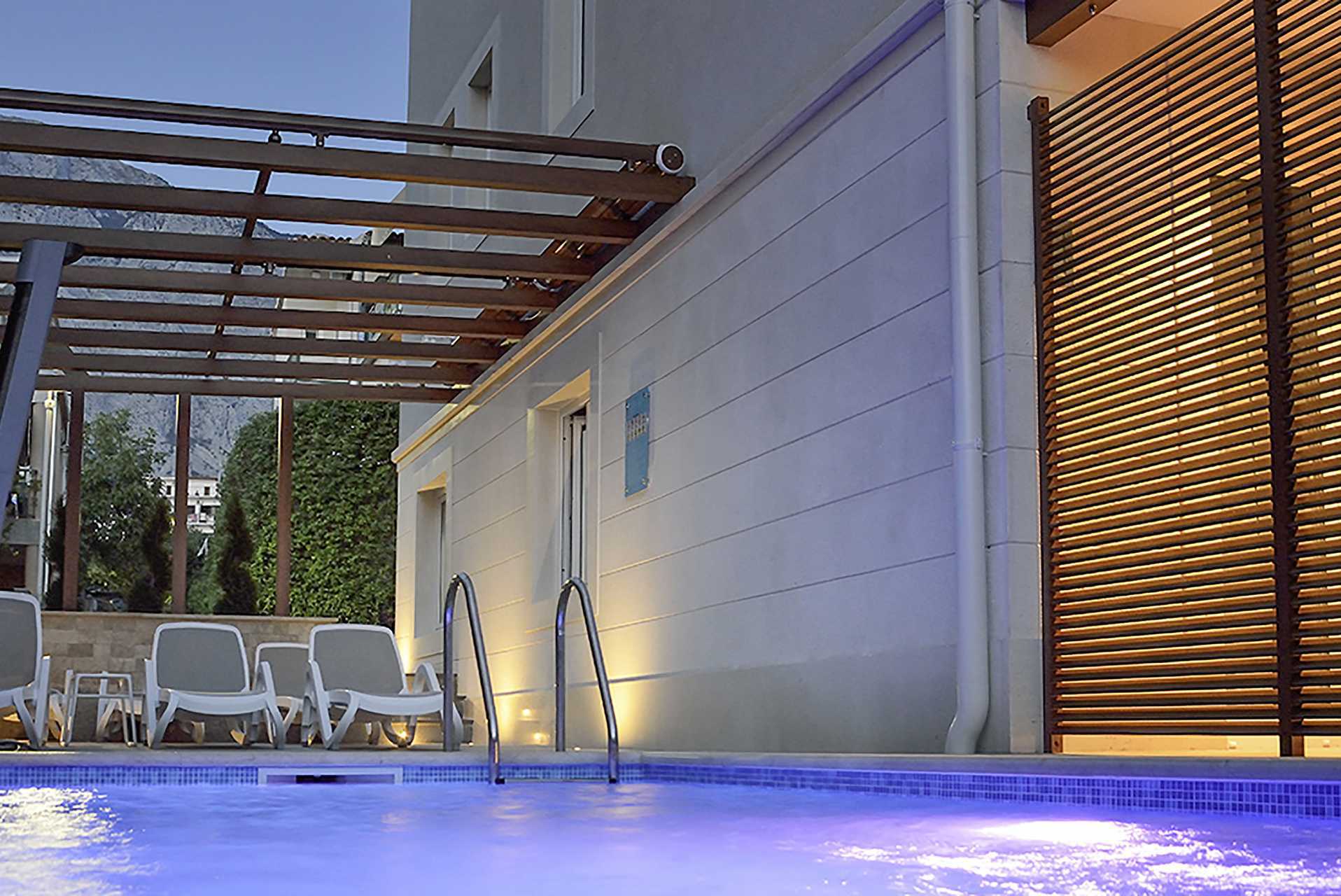 Kleinere tweekamerappartementen met balkon. De bovengelegen appartementen met balkon in het gebouw hebben een iets lagere plafondhoogte. Een slaapkamer en een gecombineerde woonkamer met kitchenette. Een tweepersoonsbed of twee eenpersoonsbedden. Mogelijkheid voor een extra bed op de slaapbank. Minikeuken met kookplaten, koelkast, magnetron en eenvoudige keukenapparatuur. Koffiezetapparaat, inclusief vier capsules. Wifi, airconditioning en kluisje inbegrepen. Tv met internationale zenders. Föhn. Badkamer met douche en toilet. Schoonmaak 7 keer/week.