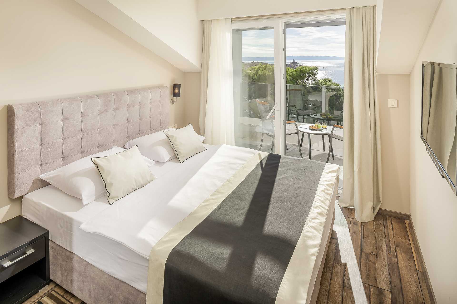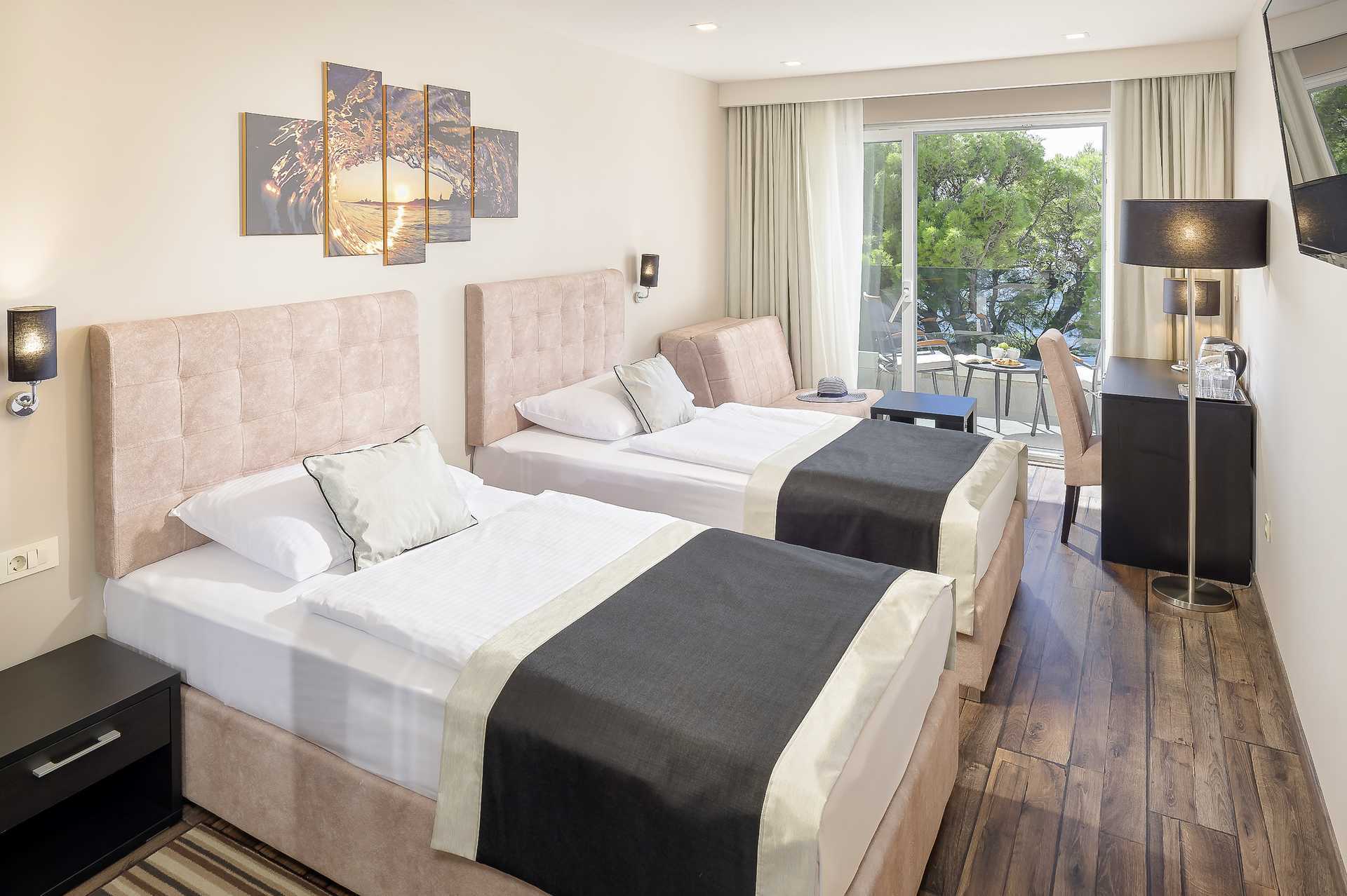 Tweepersoonskamer met balkon en direct uitzicht op zee. Een tweepersoonsbed of twee eenpersoonsbedden. Mogelijkheid voor een extra bed in een bedstoel. Wifi, airconditioning en kluisje inbegrepen. Koelkast. Tv met satellietzenders. Föhn. Badkamer met douche en toilet. Schoonmaak 7 keer/week.