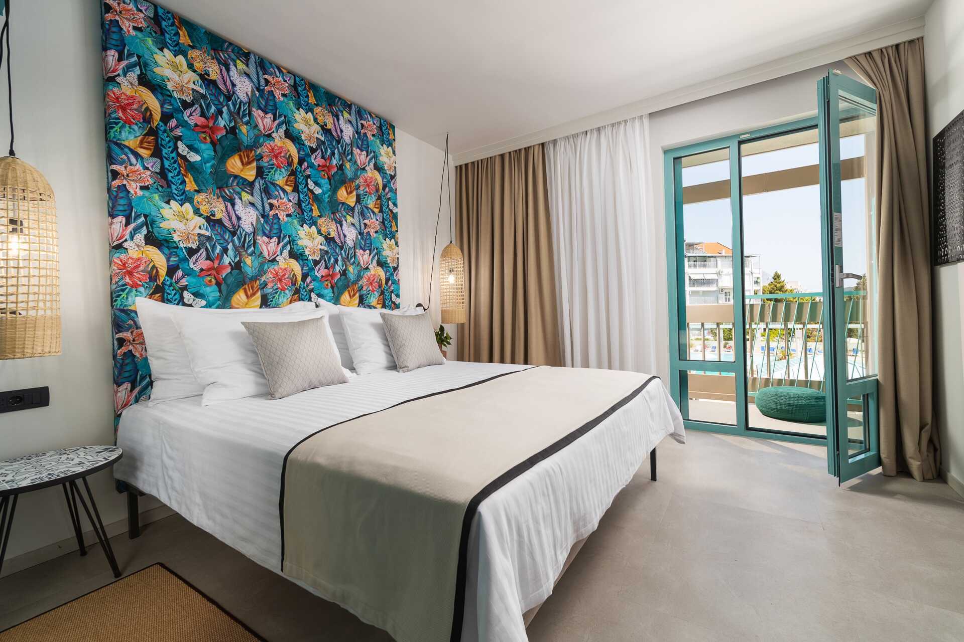 Tweepersoonskamer met balkon en beperkt uitzicht op zee. Een tweepersoonsbed of twee eenpersoonsbedden. Wifi, airconditioning en kluisje inbegrepen. Tv met internationale zenders. Koelkast. Föhn. Badkamer met douche en toilet. Schoonmaak 7 keer/week.