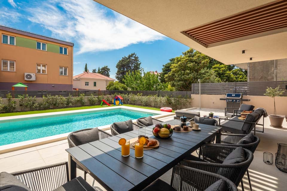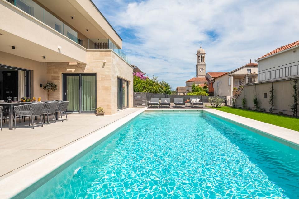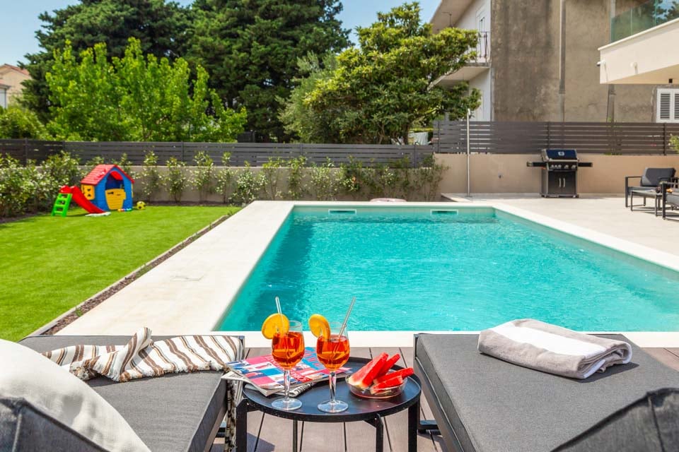 Geniet van uw ruime privézwembad en ontspan in de Kroatische zon. Dankzij de gratis zwembadverwarming kunt u op elk moment van de dag zwemmen. De villa beschikt tevens over een indrukwekkende fitnessruimte en een kinderspeelplaats. De grote tuin biedt volop ruimte om buiten te dineren en is voorzien van een gasbarbecue, ideaal om gasten te ontvangen op warme Kroatische avonden.