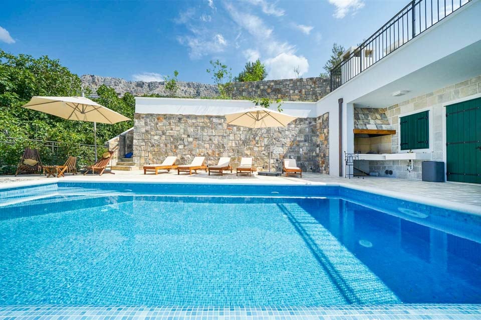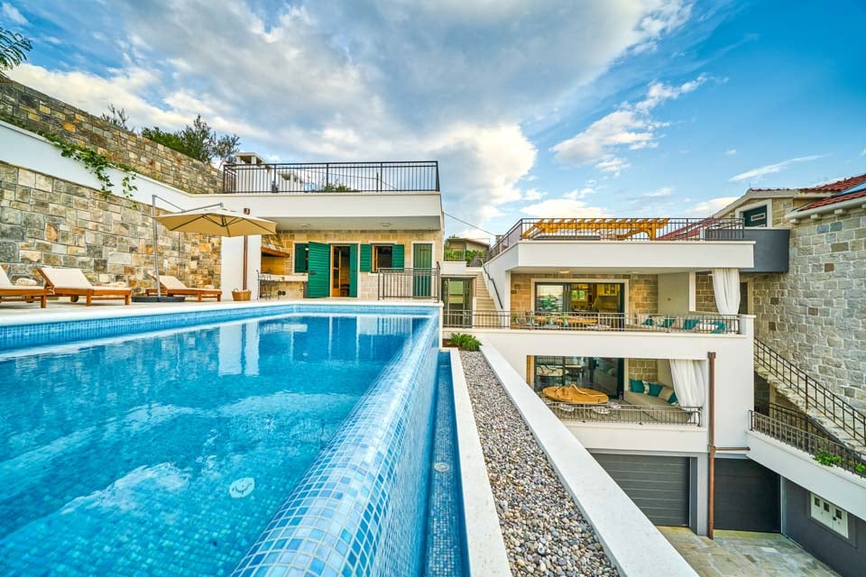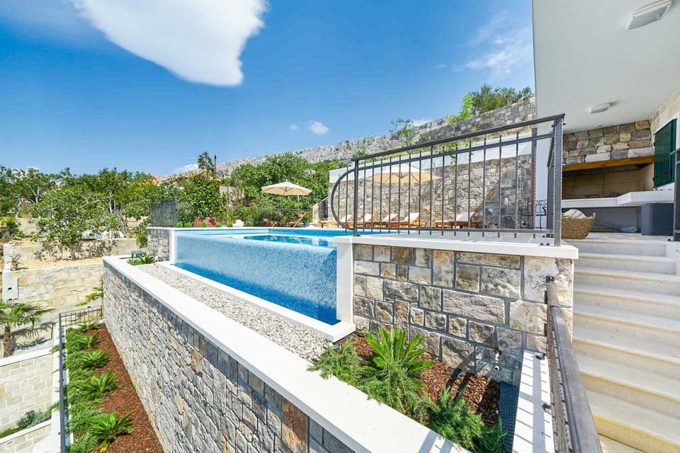 Uw privé, verwarmde overloopzwembad wekt de illusie dat het water zich tot aan de horizon uitstrekt en is daarmee de ideale plek om te ontspannen onder de beroemde Kroatische zon. Ontspan op de ligstoelen bij het zwembad en laat u betoveren door het adembenemende landschap om u heen; het is gemakkelijk om te verdwalen in het prachtige uitzicht op de oceaan. Ontsnap aan de hitte met een ontspannen duik in het helderblauwe water wanneer je maar wilt. De vrijheid om te doen wat je wilt, wanneer je wilt, maakt een villa-vakantie zo bijzonder.