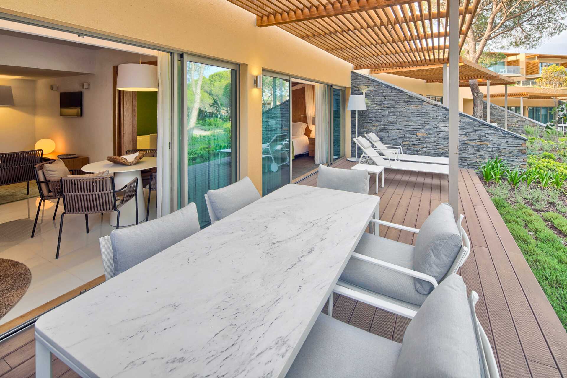 Tweekamersuite met balkon of terras. Een slaapkamer en een woonkamer. De kamers worden gescheiden door een schuifdeur. Twee eenpersoonsbedden of een tweepersoonsbed. Mogelijkheid voor extra bedden in slaapbank. Wifi, airconditioning en kluisje inbegrepen. Minibar. Nespresso-apparaat met capsules. Tv met internationale zenders. Badjassen en hotelslippers. Föhn. Badkamer met bad, aparte douche en toilet. Schoonmaak 7 keer / week. Kinderen jonger dan twee jaar tellen mee voor het maximum aantal personen in de kamer.