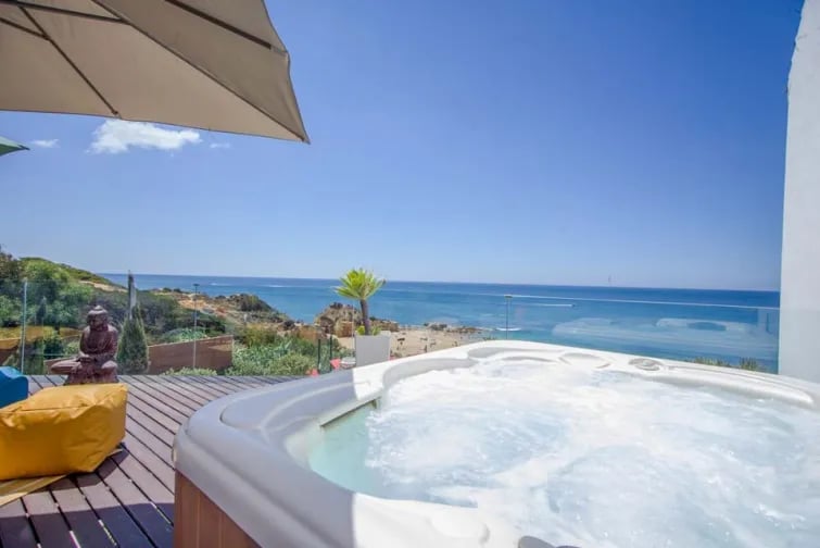 Op de begane grond vindt u een ruime woon- en eetkamer, die naadloos overgaan in een volledig uitgeruste keuken en een handig gelegen toilet. Ga naar de eerste verdieping, waar u in twee aparte slaapkamers kunt ontspannen. De ene beschikt over een vorstelijk kingsize bed, de andere over twee eenpersoonsbedden. Beide kamers hebben een eigen badkamer. Een balkon is een heerlijke plek om buiten te eten, compleet met comfortabele stoelen en een ontspannende hot tub. Ondertussen geniet u van een adembenemend uitzicht op zee.