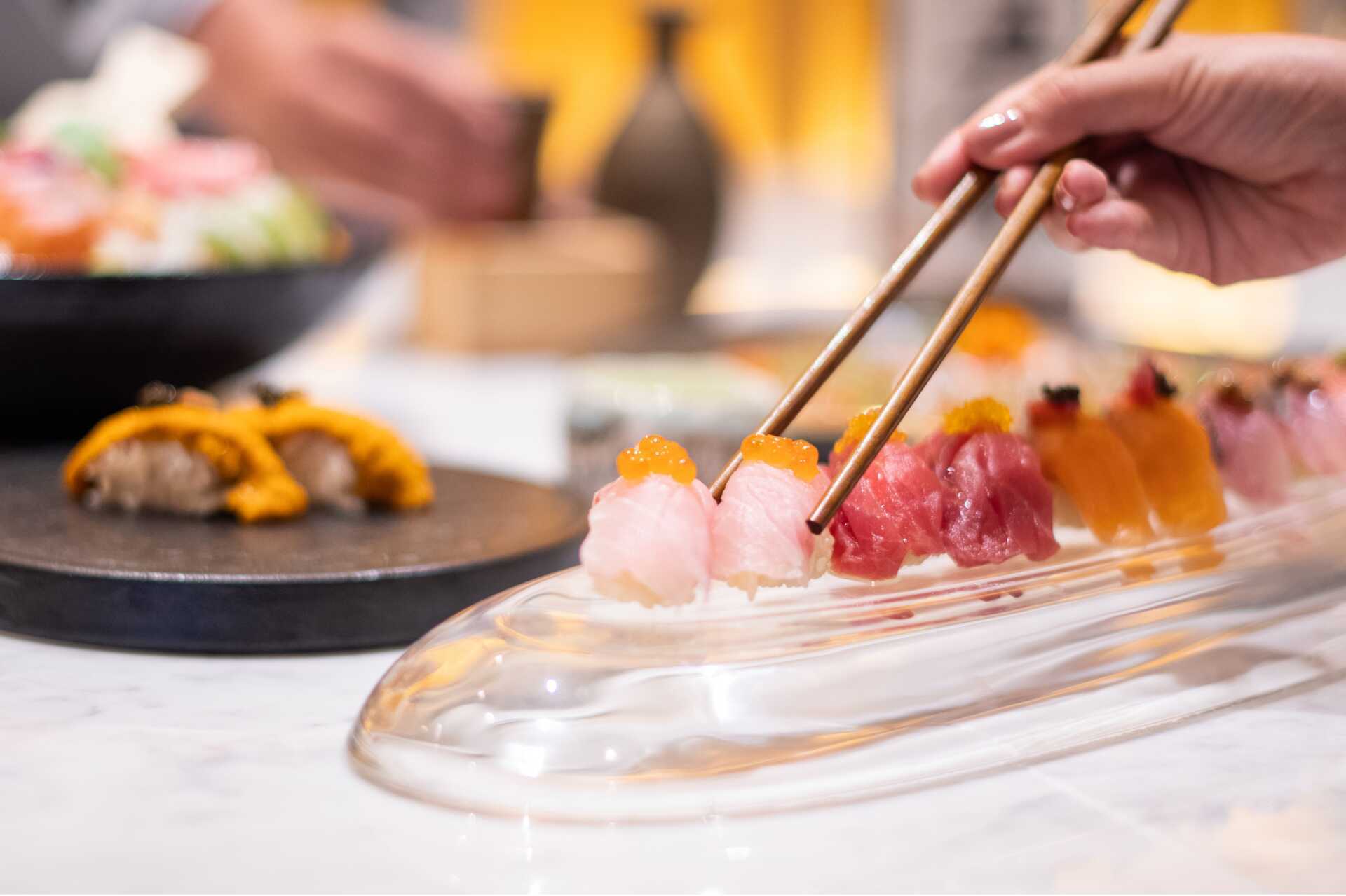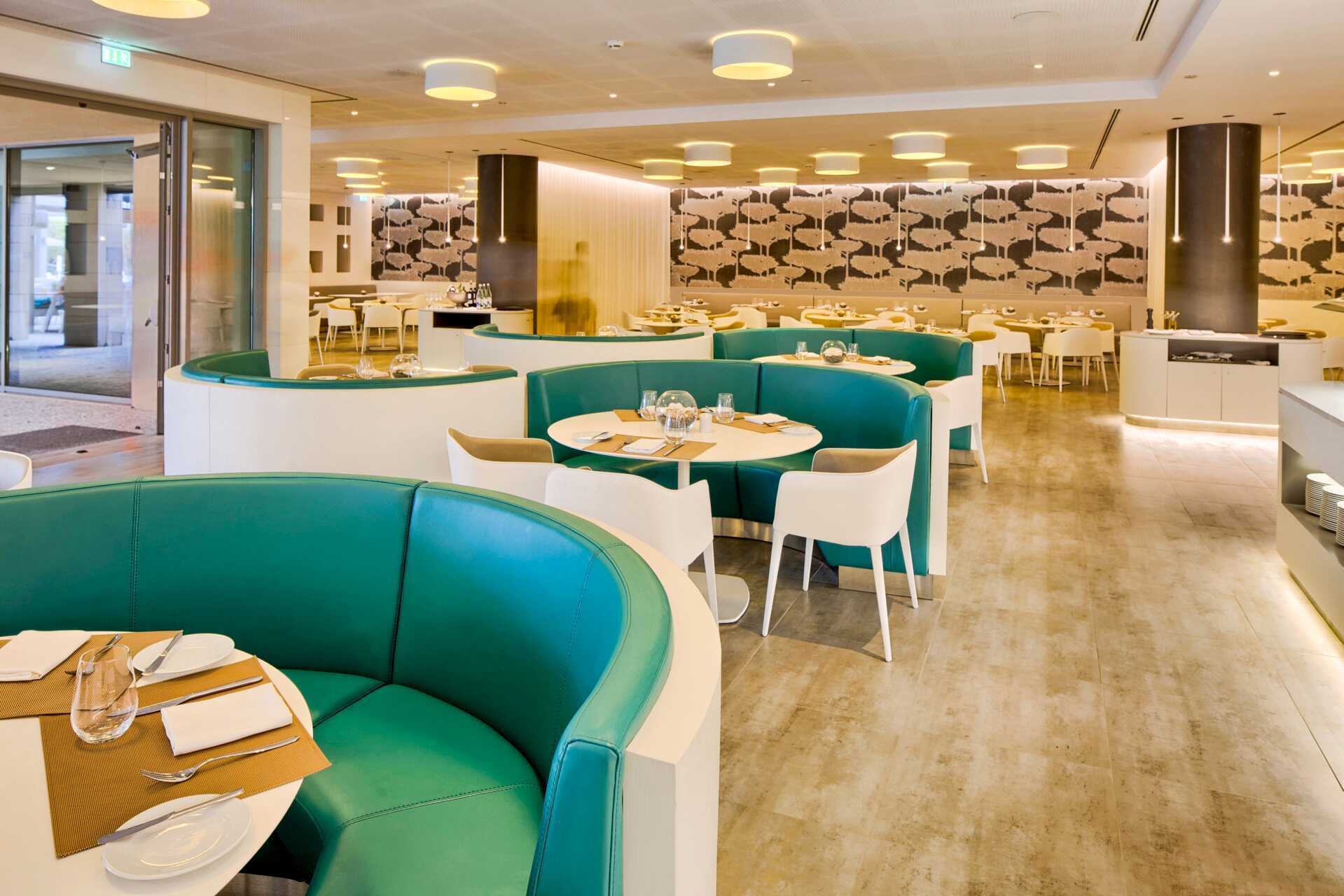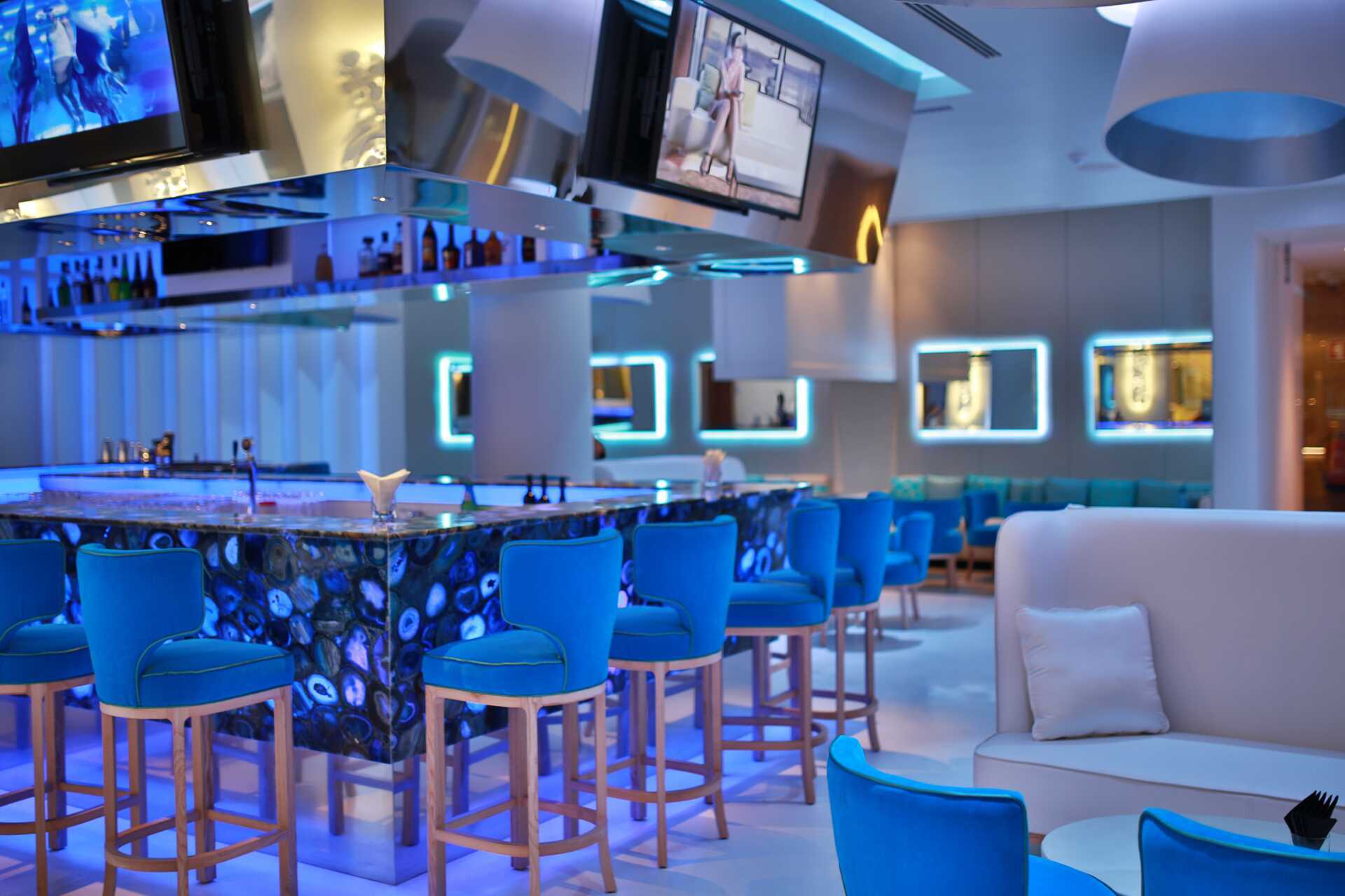 Abyad buffetrestaurant biedt een heerlijk buffet voor ontbijt en diner. Open Deck serveert lichte maaltijden zoals salades, broodjes, hamburgers en gegrilde gerechten. Bluum Bar is 's avonds geopend en biedt drankjes en lichte maaltijden. Al Quimia is een elegant à la carte restaurant geïnspireerd op de lokale keuken en heeft een uitgebreide wijnkelder. Uddo is een Japans à la carte restaurant. Het à la carte restaurant Lima biedt het beste van de Italiaanse keuken. De à la carte restaurants vereisen tafelreserveringen en de dresscode is een lange broek voor mannen.