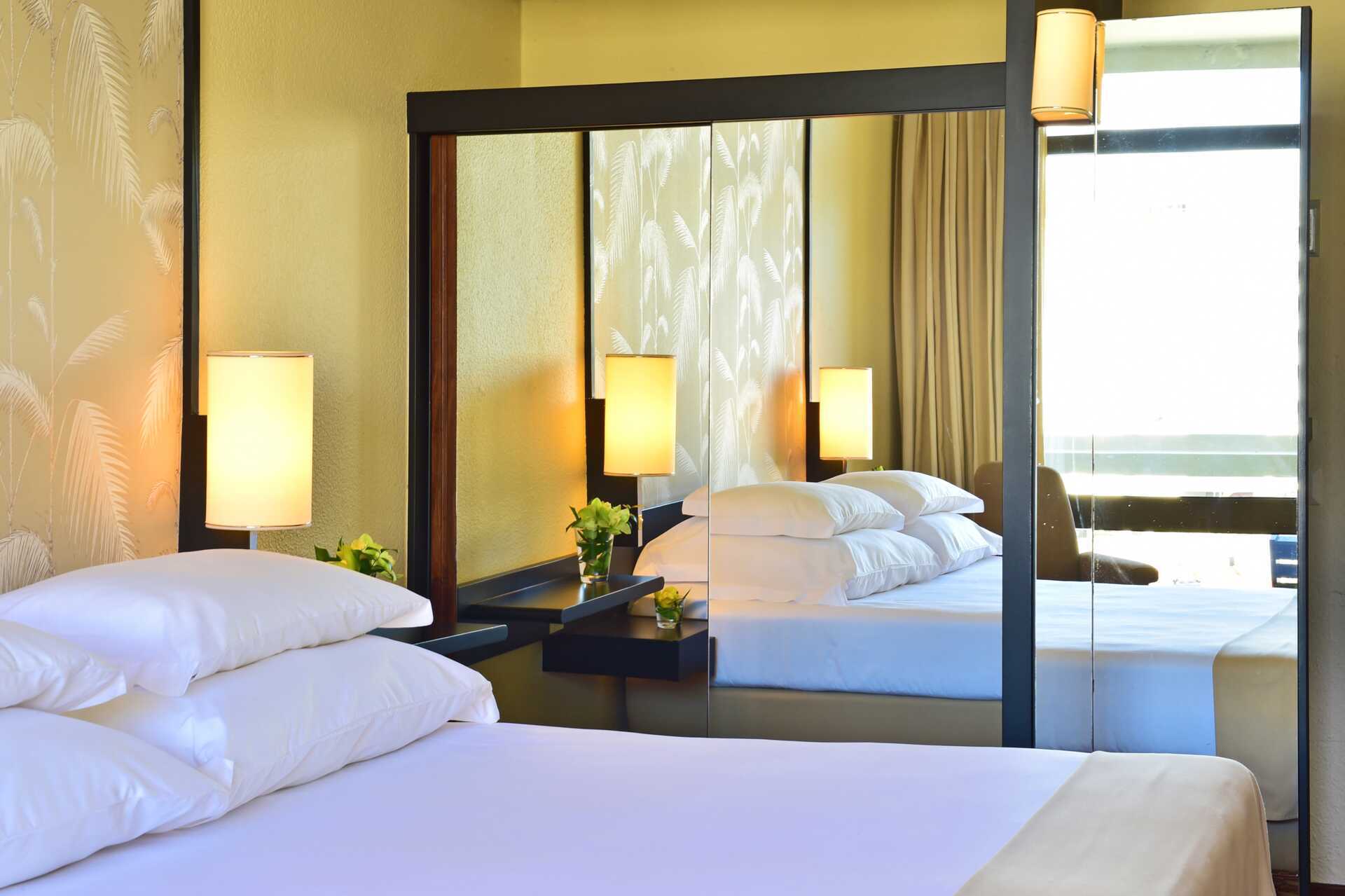 Tweepersoonskamers met balkon, sommige met beperkt zeezicht en sommige met uitzicht (op de tuin). Een tweepersoonsbed of twee eenpersoonsbedden. Mogelijkheid voor extra bed op slaapbank met uitschuifbaar bed. Kinderen tot en met 3 jaar slapen in babybedjes. Wifi, airconditioning en kluis inbegrepen. Vloerbedekking. Minibar. TV met internationale zenders. Föhn. Badkamer met bad of douche en wc. Schoonmaak 7 keer/week.