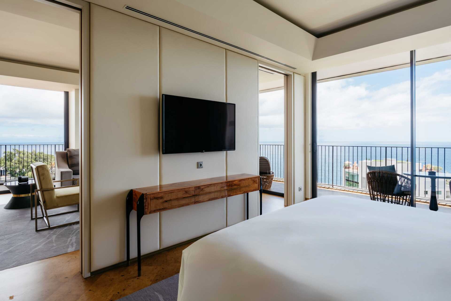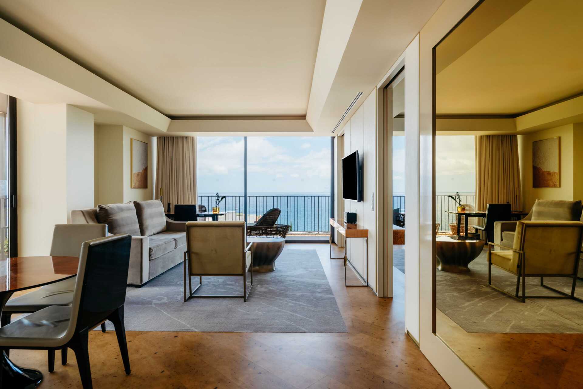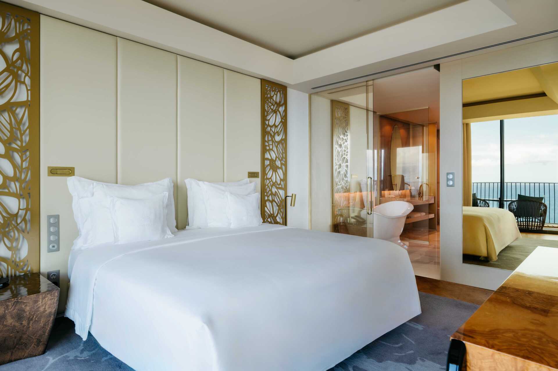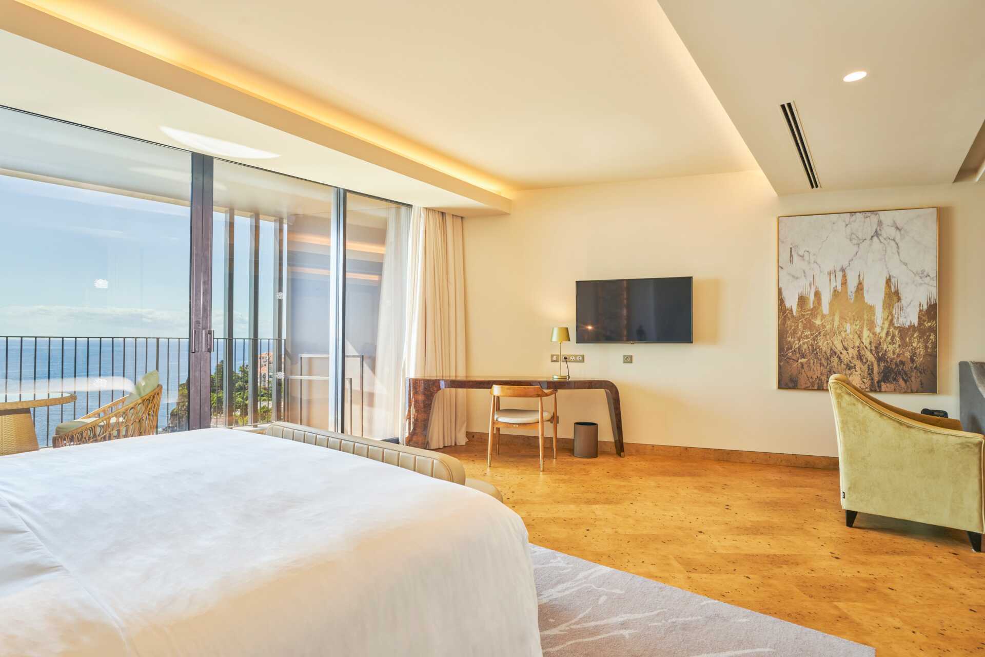 Suite met balkon en beperkt uitzicht op zee. De suite bestaat uit een slaapkamer en een woonkamer met schuifdeuren, een bank en een eethoek. Een tweepersoonsbed of twee eenpersoonsbedden. Mogelijkheid voor een extra bed op de slaapbank. Kussenmenu. Wifi, airconditioning en kluisje inbegrepen. Minibar. Waterkoker en koffie en thee. Nespresso-apparaat, capsules inbegrepen en elke dag bijgevuld. Tv met internationale zenders. Strijkijzer en strijkplank. Badjassen en hotelslippers. Föhn. De badkamer bestaat uit een gedeelte met een ligbad en douche, een gedeelte met twee wastafels en een gedeelte met een aparte douche en apart toilet. Schoonmaak 7 keer/week.