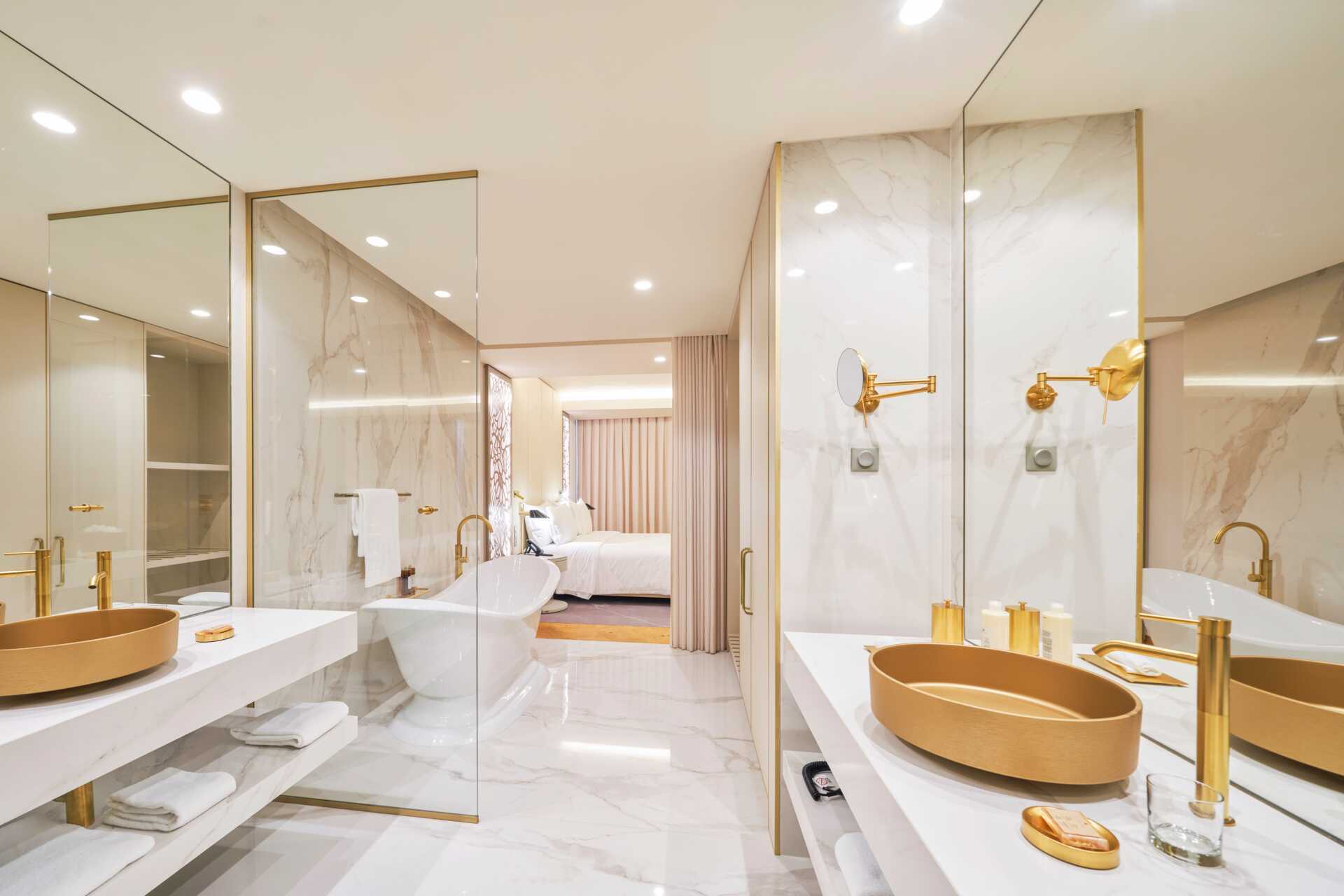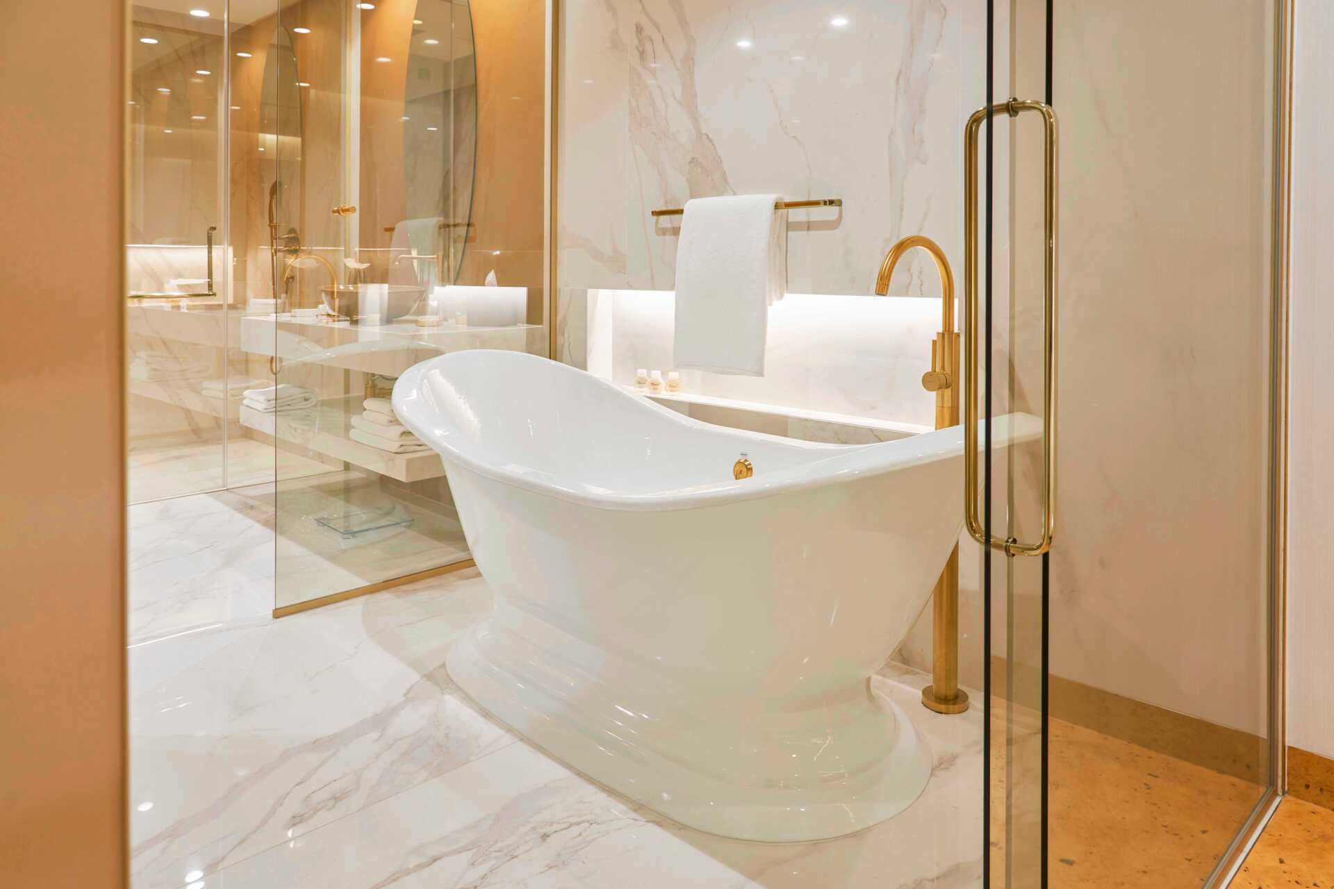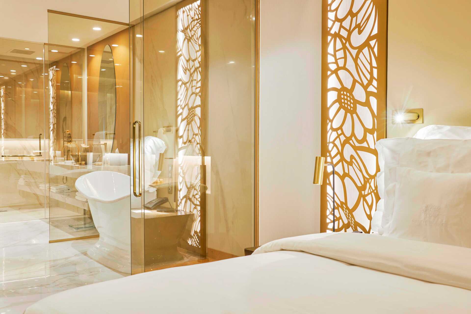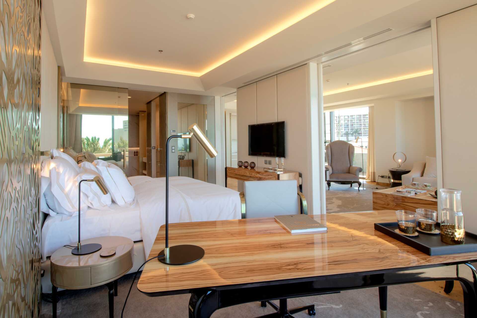 Suite met balkon en beperkt uitzicht op zee. De suite bestaat uit een slaapkamer en een woonkamer met schuifdeuren, een bank en een eethoek. Een tweepersoonsbed of twee eenpersoonsbedden. Mogelijkheid voor een extra bed op de slaapbank. Kussenmenu. Wifi, airconditioning en kluisje inbegrepen. Minibar. Waterkoker en koffie en thee. Nespresso-apparaat, capsules inbegrepen en elke dag bijgevuld. Tv met internationale zenders. Strijkijzer en strijkplank. Badjassen en hotelslippers. Föhn. De badkamer bestaat uit een gedeelte met een ligbad en douche, een gedeelte met twee wastafels en een gedeelte met een aparte douche en apart toilet. Schoonmaak 7 keer/week.