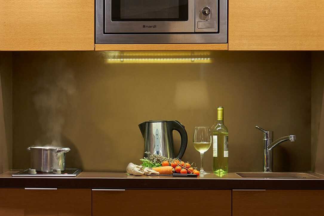 Superior studio met balkon en uitzicht op zee. Gecombineerde slaapkamer met kitchenette. Twee eenpersoonsbedden. Mogelijkheid voor een extra bed in een eenpersoonsbed. Wifi, kluisje en airconditioning inbegrepen. Minikeuken met kookplaten, koelkast, waterkoker, koffiezetapparaat en eenvoudige keukenapparatuur. Tv met internationale zenders. Vloerbedekking. Badjassen en hotelslippers. Föhn. Badkamer met douche en toilet. Schoonmaak 7 keer/week. Kinderen jonger dan twee jaar zijn inbegrepen in het maximale aantal personen in het appartement.