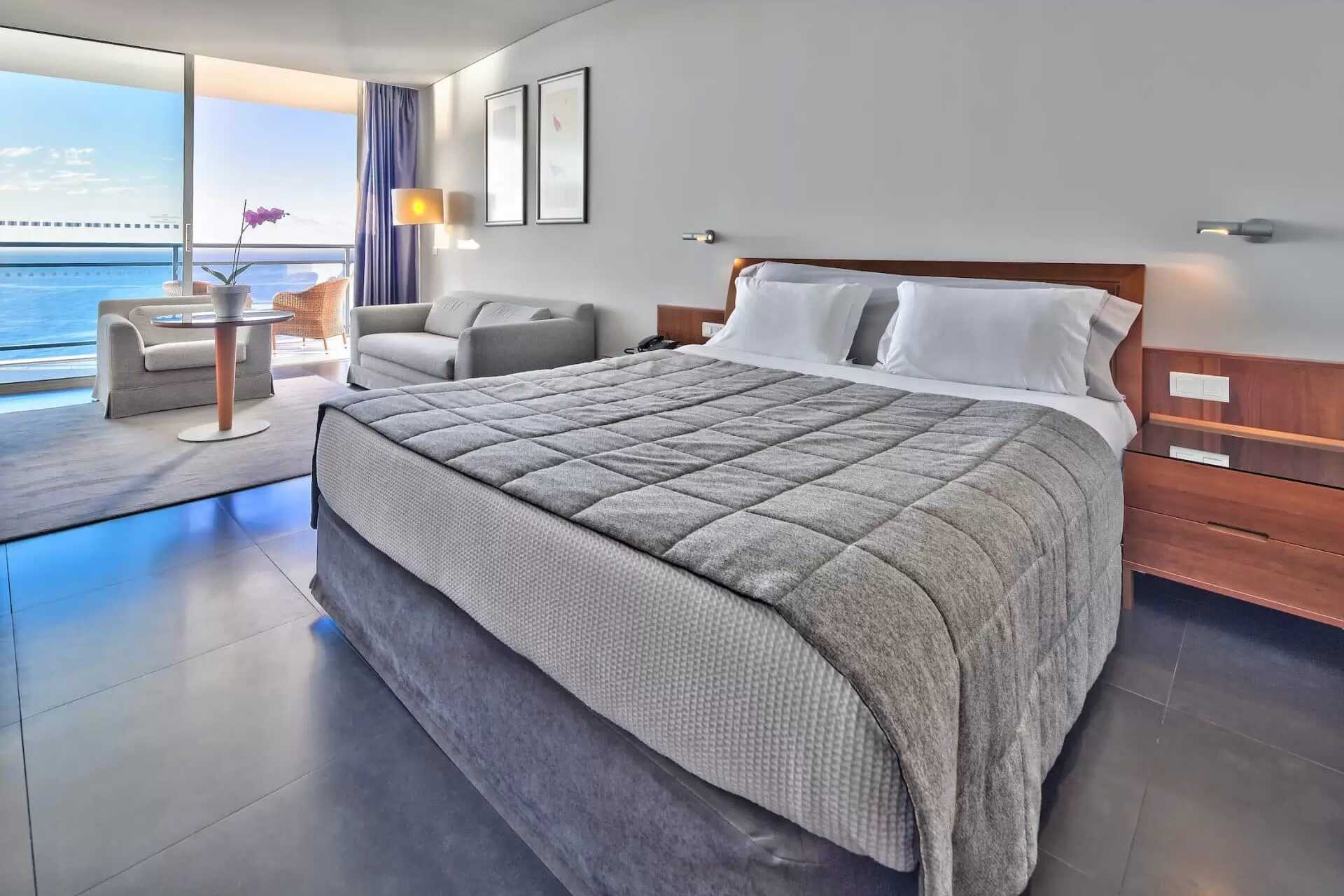 Superior kamer met balkon en zeezicht. Gelegen op de verdiepingen 3 tot 8. Een tweepersoonsbed of twee eenpersoonsbedden. Mogelijkheid voor een extra bed in een opklapbed of slaapbank. Als er vier personen in de kamer zijn, krijg je een superior kamer met twee brede bedden waar het kind de bestaande bedden deelt. Wifi (connectiviteit varieert afhankelijk van de locatie van de kamer binnen het hotel), airconditioning en kluisje inbegrepen. Koelkast. Elektrische waterkoker en koffie en thee. TV met internationale zenders. Badjassen en hotelslippers. Föhn. Badkamer met bad en toilet. Schoonmaak 7 keer/week. Kinderen jonger dan twee jaar zijn inbegrepen in het maximum aantal personen op de kamer. Roken is niet toegestaan op de patio.