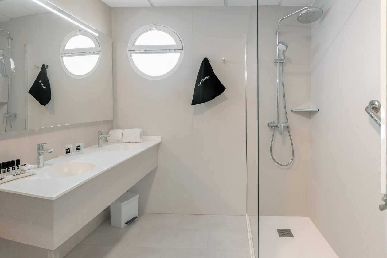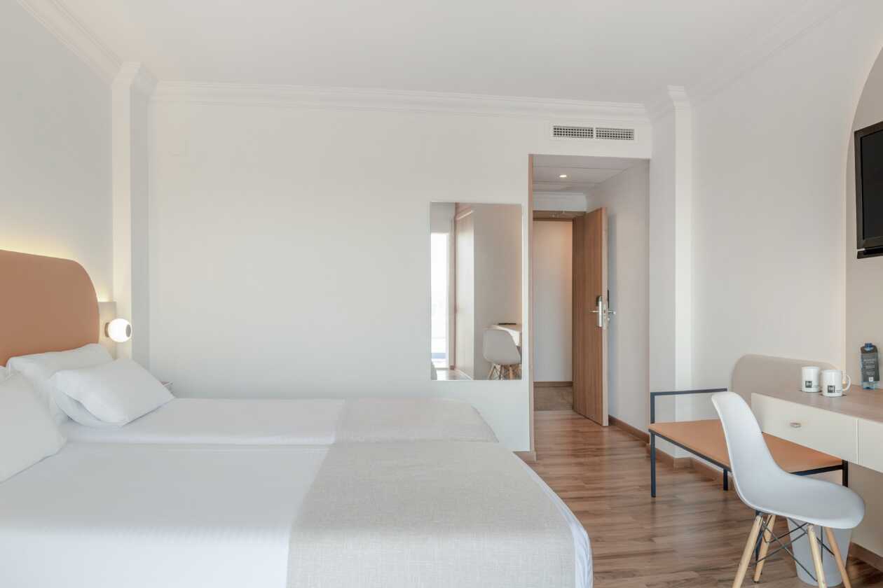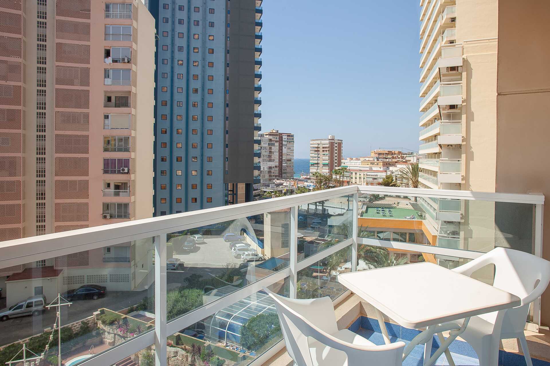 Tweepersoonskamer met balkon en uitzicht op zee. Twee eenpersoonsbedden. Mogelijkheid voor een extra bed op de slaapbank. Wifi, airconditioning en kluisje inbegrepen. Koelkast. Waterkoker en koffie en thee. Tv met internationale zenders. Föhn. Badkamer met bad of douche en toilet. 5 keer schoonmaken.