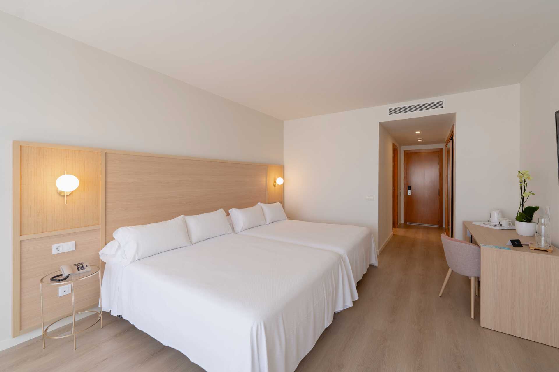 Tweepersoonskamer met balkon Een tweepersoonsbed of twee eenpersoonsbedden. Mogelijkheid voor een extra bed op de slaapbank. Wifi en kluisje inbegrepen. Koelkast. Tv met internationale zenders. Föhn. Badkamer met bad of douche en toilet. Schoonmaak 5 keer/week.