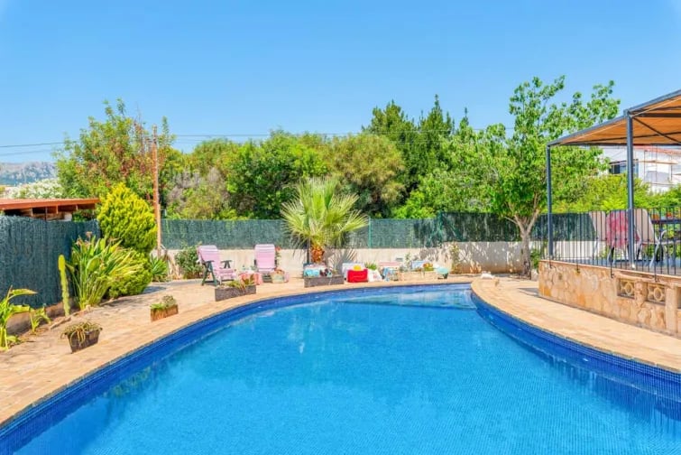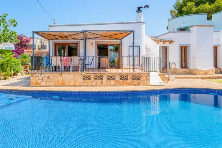 Stap buiten het grote niervormige zwembad van 12x6m in, ideaal om in te zwemmen of te ontspannen in de zon. Het zwembad is voorzien van ligstoelen, waar u heerlijk kunt genieten van de mediterrane zon. Deze villa biedt de ideale setting voor een ontspannend en onvergetelijk verblijf in Calpe.