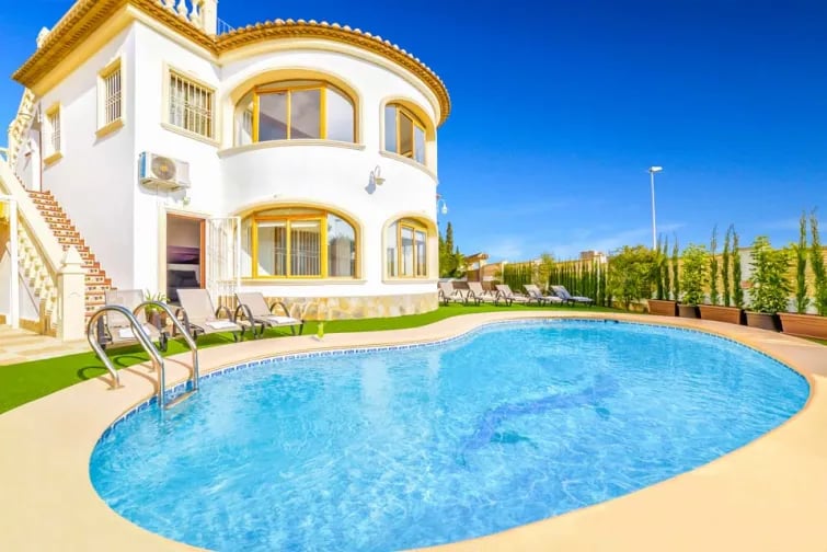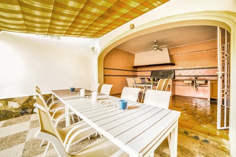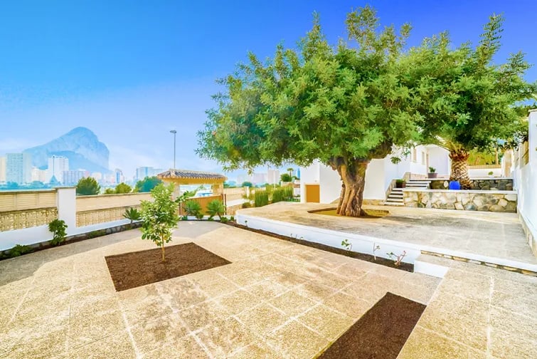 Op de begane grond vindt u een ruime woon-/eetkamer met uitzicht op de Ifach-rots en een volledig uitgeruste keuken voor al uw zelfvoorzienende behoeften. Verder vindt u op deze verdieping een slaapkamer met tweepersoonsbed en een slaapkamer met twee eenpersoonsbedden, evenals een badkamer en een aparte doucheruimte. Op de tweede verdieping bevinden zich nog een woon-/eetkamer, een volledig uitgeruste keuken met vaatwasser en vier slaapkamers. U vindt er één slaapkamer met tweepersoonsbed en drie slaapkamers met twee eenpersoonsbedden, die twee onafhankelijke badkamers delen. De villa beschikt over airconditioning in alle kamers.