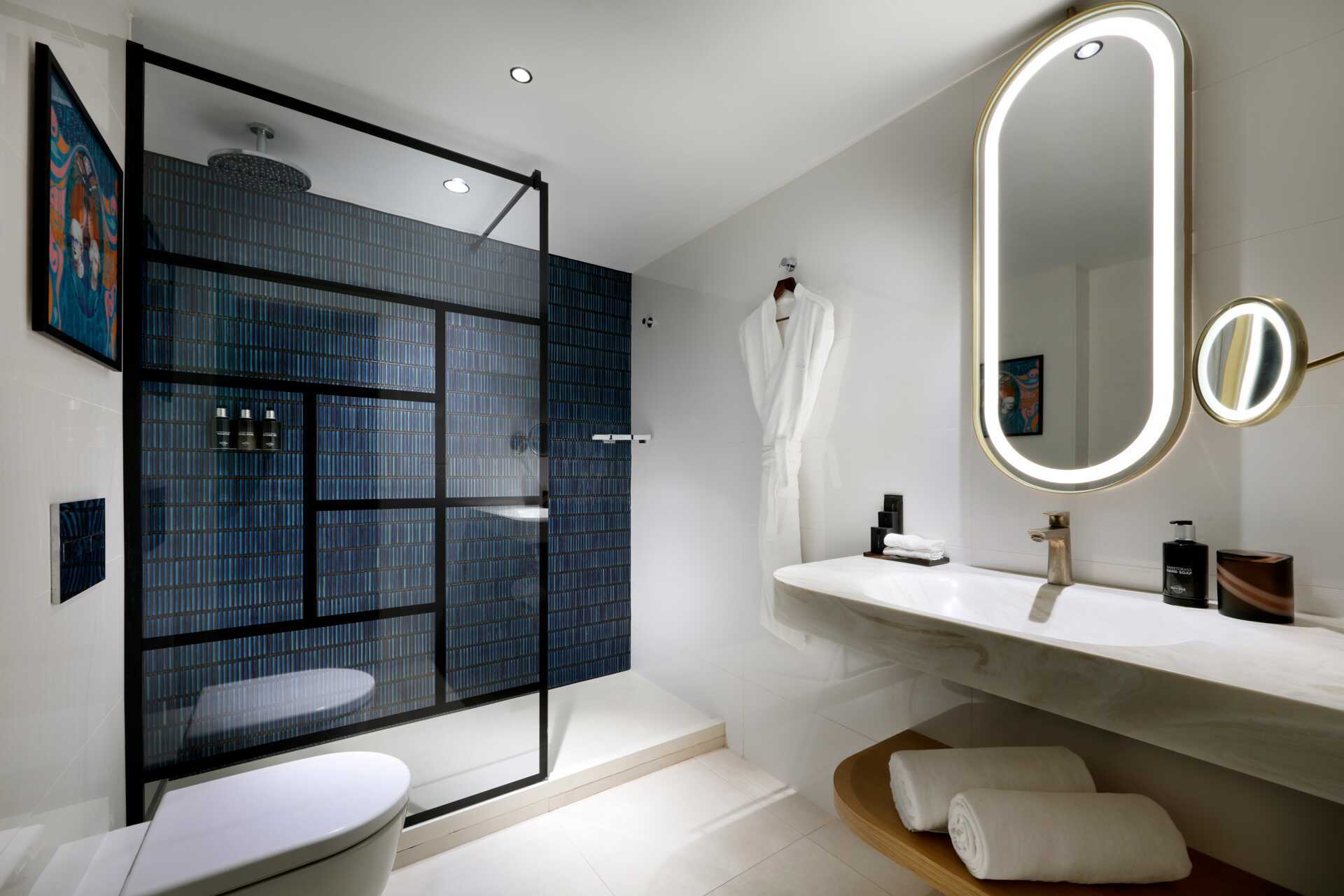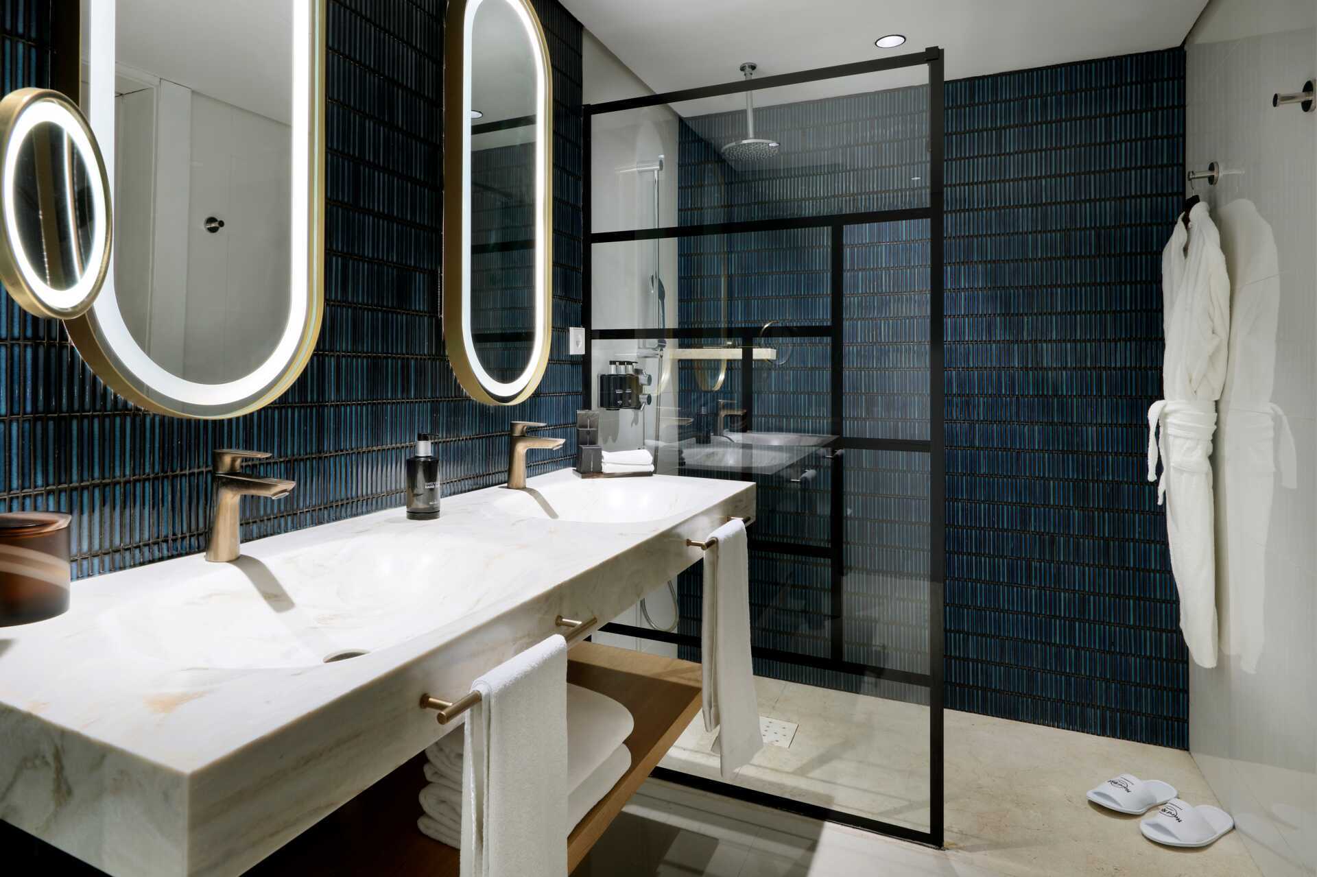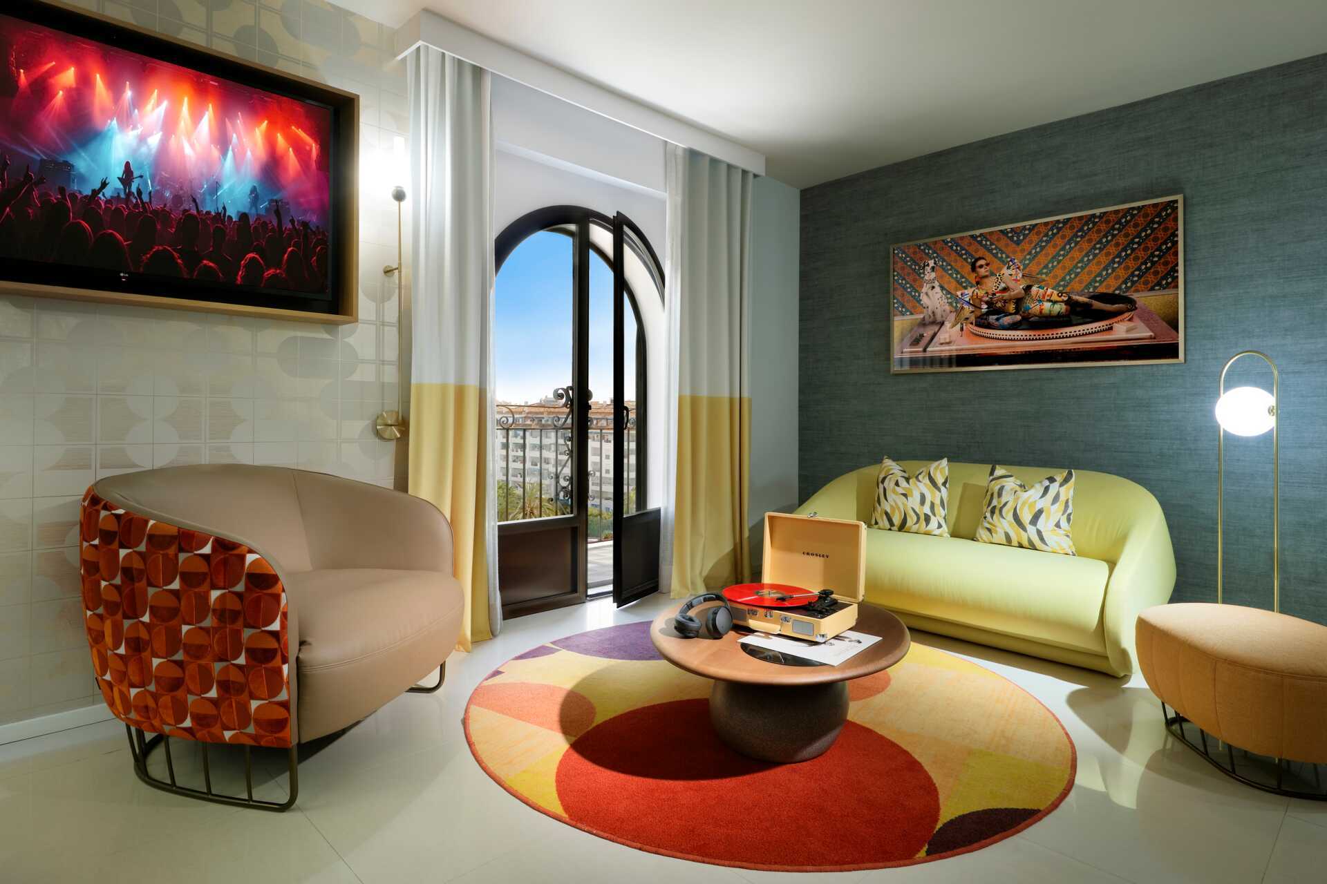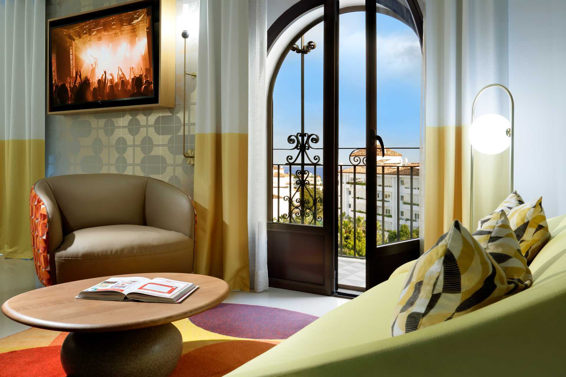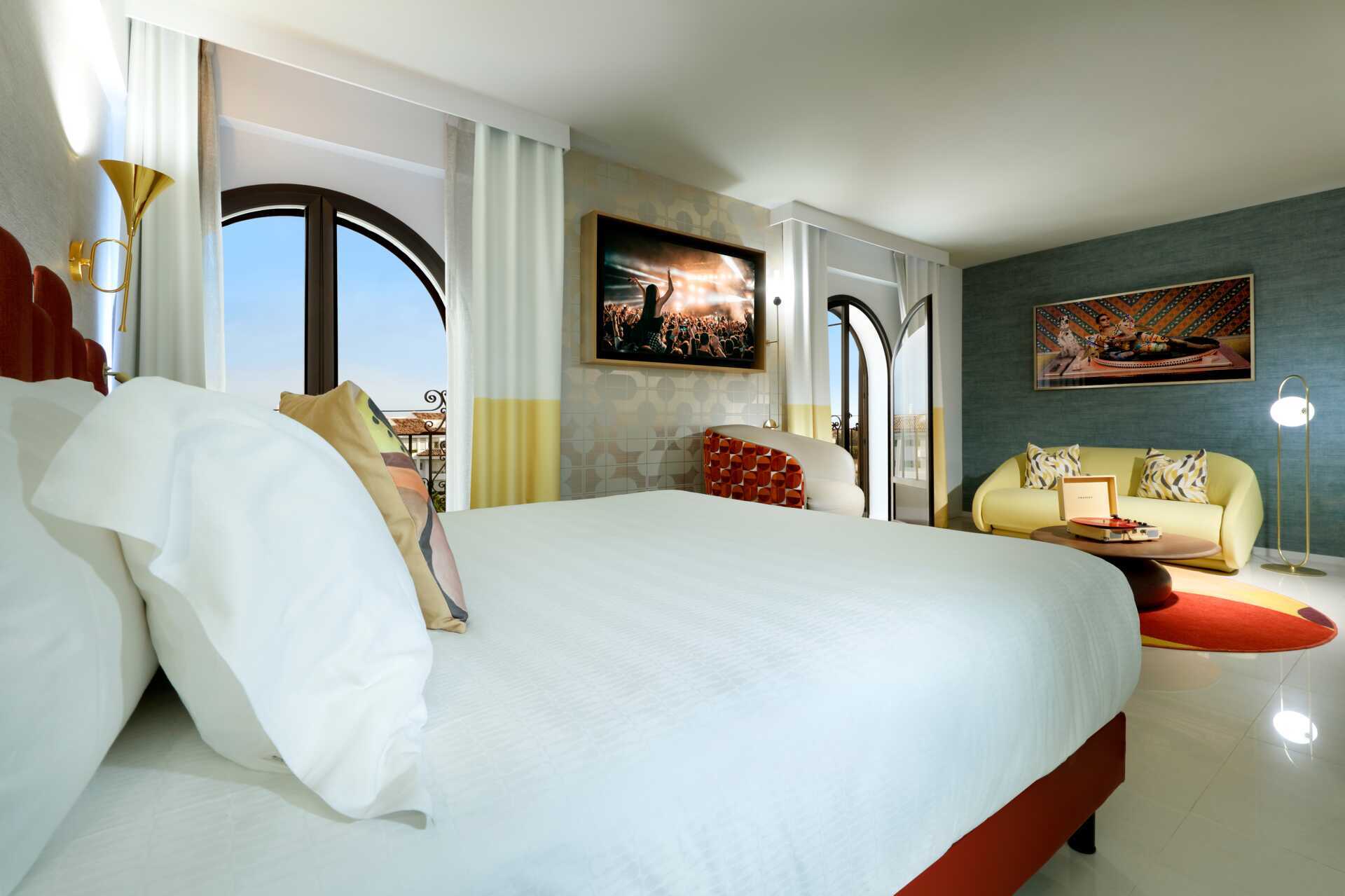 Suite met balkon. De suite bestaat uit een slaapkamer en een woonkamer met fauteuils en een bank. Een tweepersoonsbed of twee eenpersoonsbedden. Mogelijkheid voor een extra bed in een slaapbank. Sleep-Like-A-Rock® beddengoed. Wifi, airconditioning en kluisje inbegrepen. Minibar. Waterkoker en koffie- en theefaciliteiten. Nespresso koffiezetapparaat. TV met internationale zenders. Badjassen en slippers. Haardroger. Rock Spa® badkamervoorzieningen. Open plan met wastafel, aparte douche met glazen deuren en aparte WC. 7 keer per week schoonmaak.
