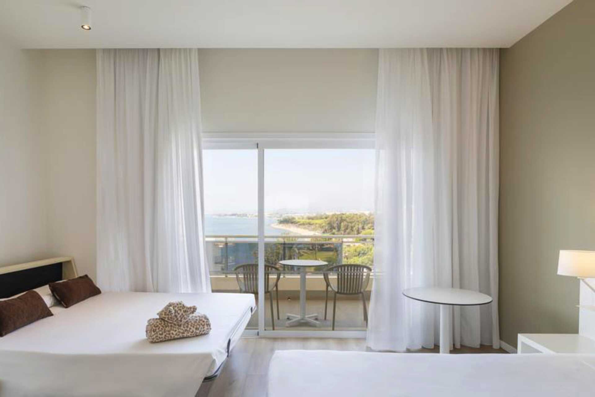 Tweepersoonskamers met balkon, sommige met zeezicht en sommige met beperkt zeezicht. Een tweepersoonsbed of twee eenpersoonsbedden. Mogelijk extra bed door slaapbank. Wifi, airconditioning en kluisje. Koelkast. TV met satellietkanalen. Föhn. Badkamer met douche of alleen douche en wc. Schoonmaak 7 keer/week.