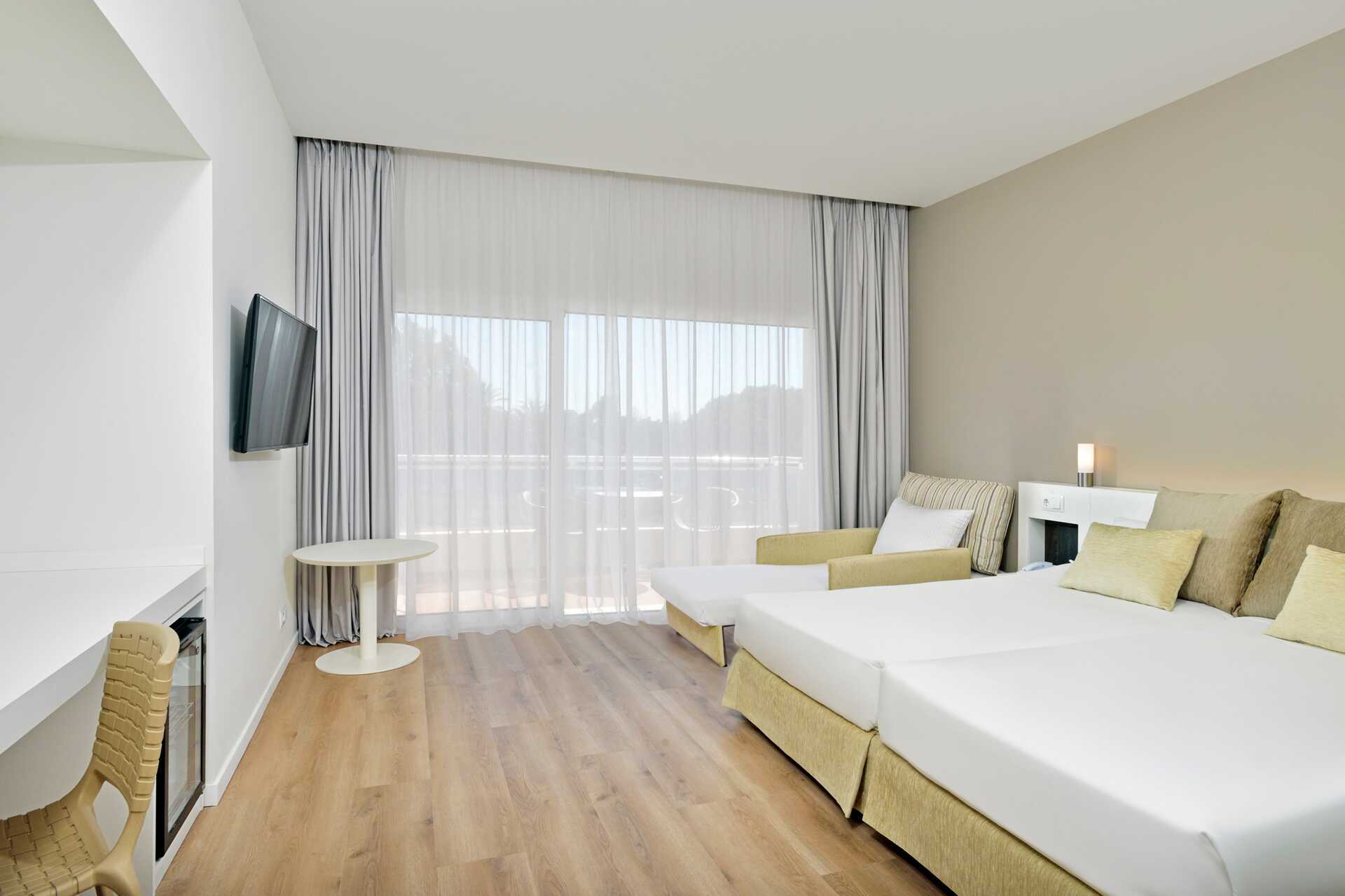 Familiekamers met balkon, sommige met zeezicht. Een tweepersoonsbed of twee eenpersoonsbedden. Eventuele extra bedden via een opklapbed of met een slaapbank voor twee personen. Wifi, airconditioning en kluisje inbegrepen. Koelkast. Tv met satellietkanalen. Föhn. Badkamer met bad of douche en toilet. Schoonmaak 7 keer / week.