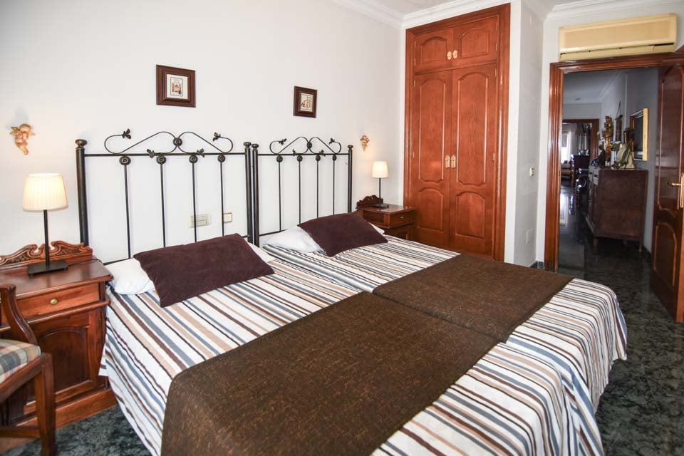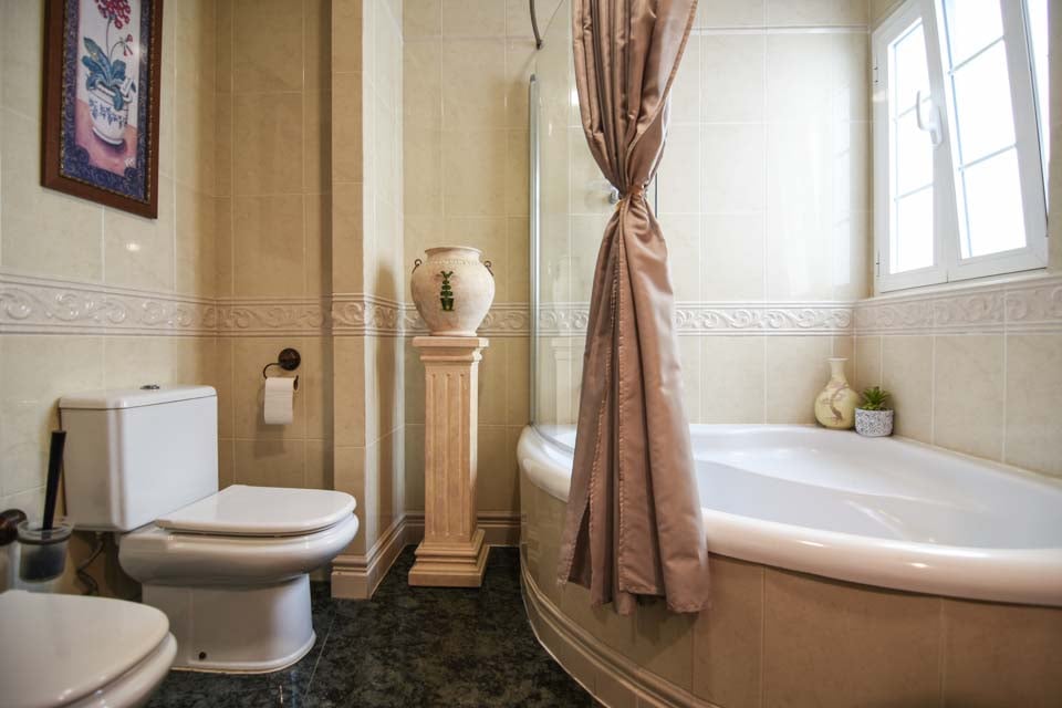 Achter de traditionele Spaanse gevel van een herenhuis vindt u ruime accommodatie. Via de voordeur komt u in een klassieke woon-/eetkamer en een ontspannend terras met een stenen barbecue en een eethoek in de buitenlucht met uitzicht op het privézwembad. De bovenste verdieping biedt een dakterras waar u kunt zonnebaden en ontspannen. Op de begane grond vindt u een comfortabele zithoek met een flatscreen-tv met satellietzenders en een volledig uitgeruste keuken met moderne apparatuur. Via de openslaande deuren komt u op een klein verhoogd terras met toegang tot het privézwembad. Op deze verdieping bevindt zich ook een doucheruimte. De slaapkamers bevinden zich op de eerste verdieping. Eén van de hoofdslaapkamers beschikt over een eigen badkamer en een zithoek met uitzicht op het zwembad. Daarnaast zijn er twee slaapkamers met twee eenpersoonsbedden die een ruime badkamer met hoekbad delen.